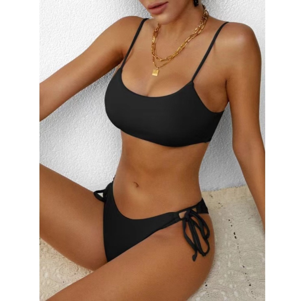 새로운 솔리드 컬러 슬링 스플릿 수영복 운동복 비키니 하이 엔드 헤더 백리스 아마존 수영복 크로스 국경스토어 가기