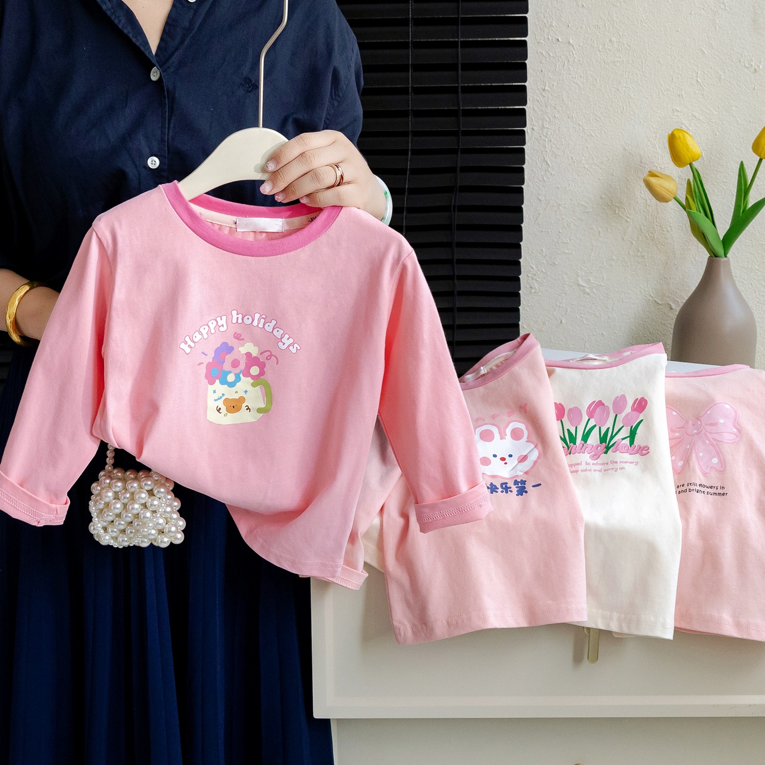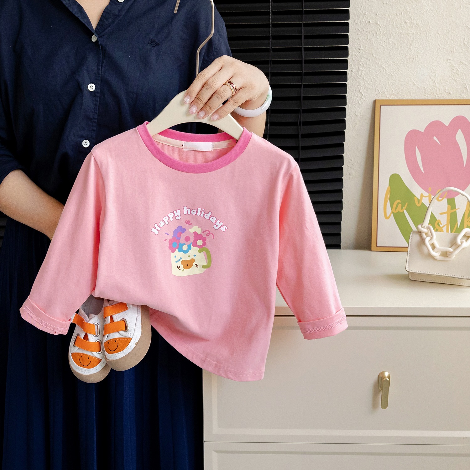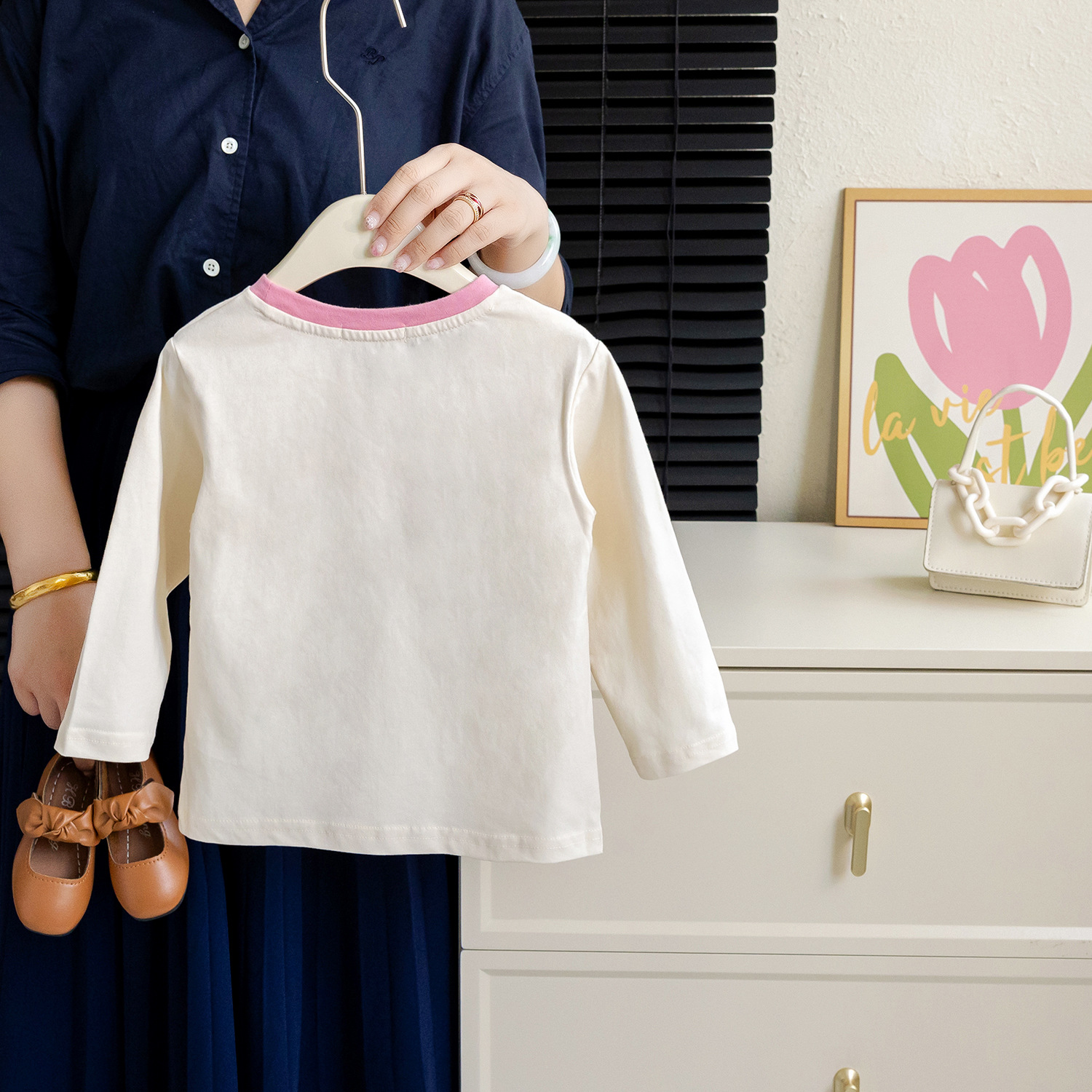 어린이 의류 소녀 가을 새로운 긴 소매 티셔츠베이스 셔츠 2024 봄과 가을 패션 만화 인쇄 올 매치 탑