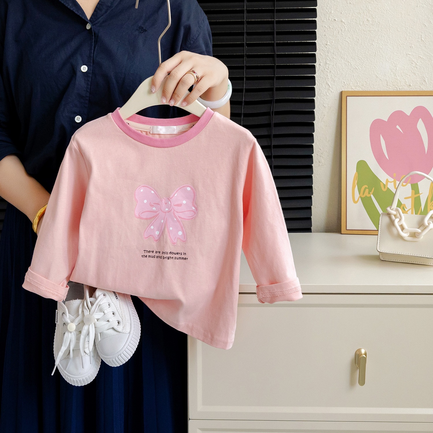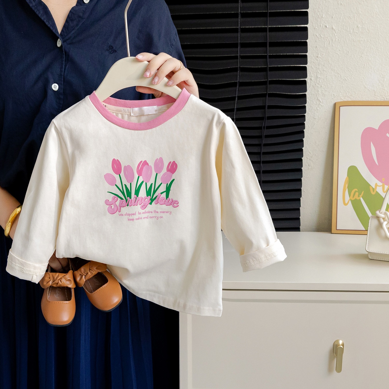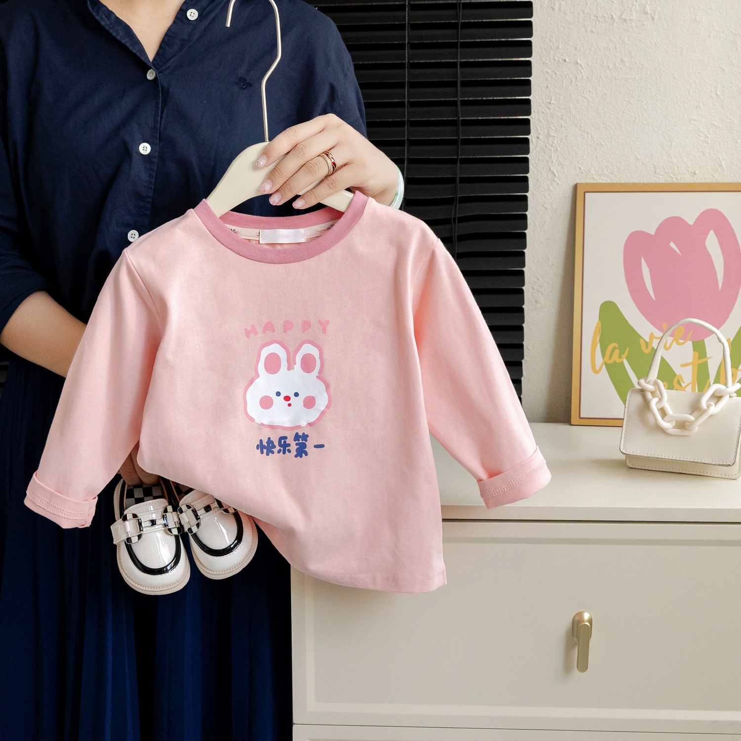어린이 의류 소녀 가을 새로운 긴 소매 티셔츠베이스 셔츠 2024 봄과 가을 패션 만화 인쇄 올 매치 탑