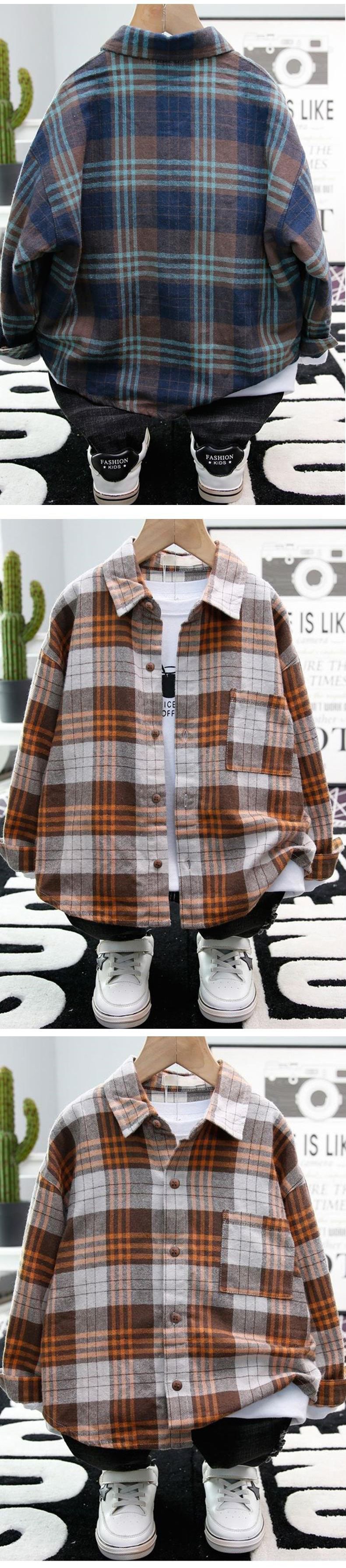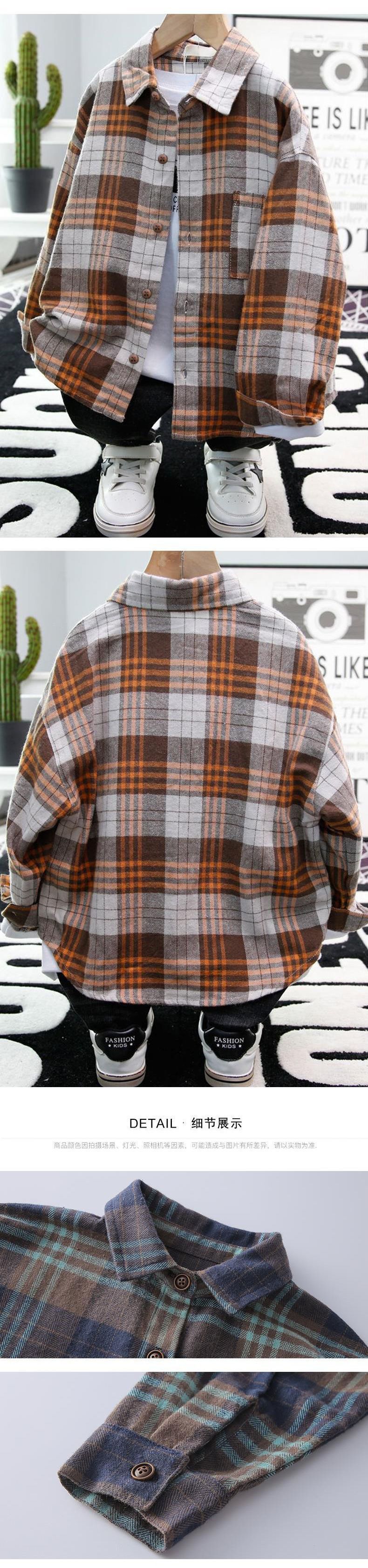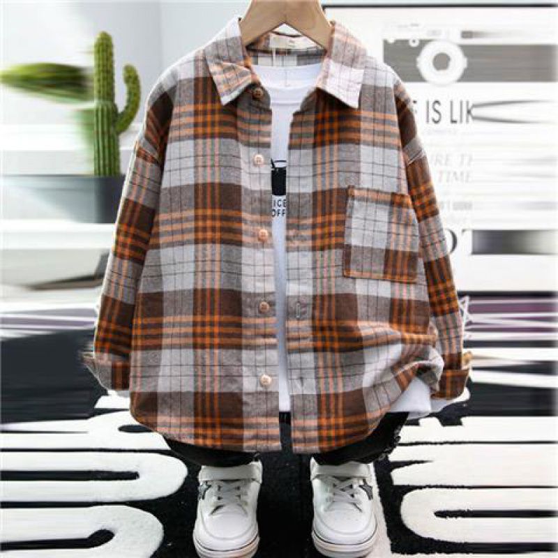 남학생 긴팔 셔츠 2024 봄 · 가을 새 어린이 한국 스타일 외국식 셔츠 아기 격자 무늬 재킷 트렌디스토어 가기