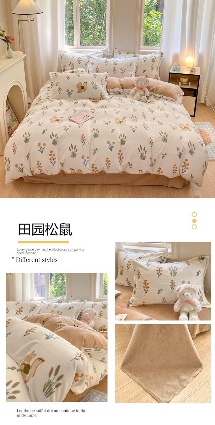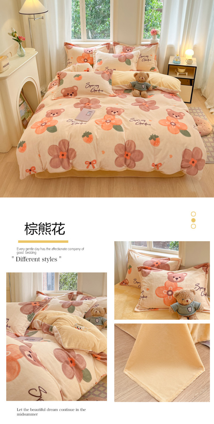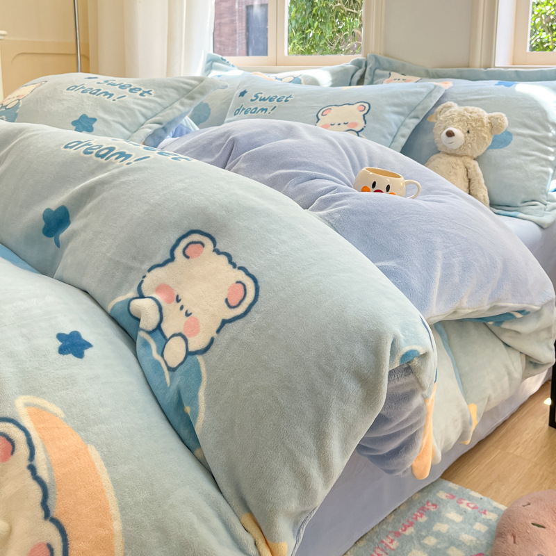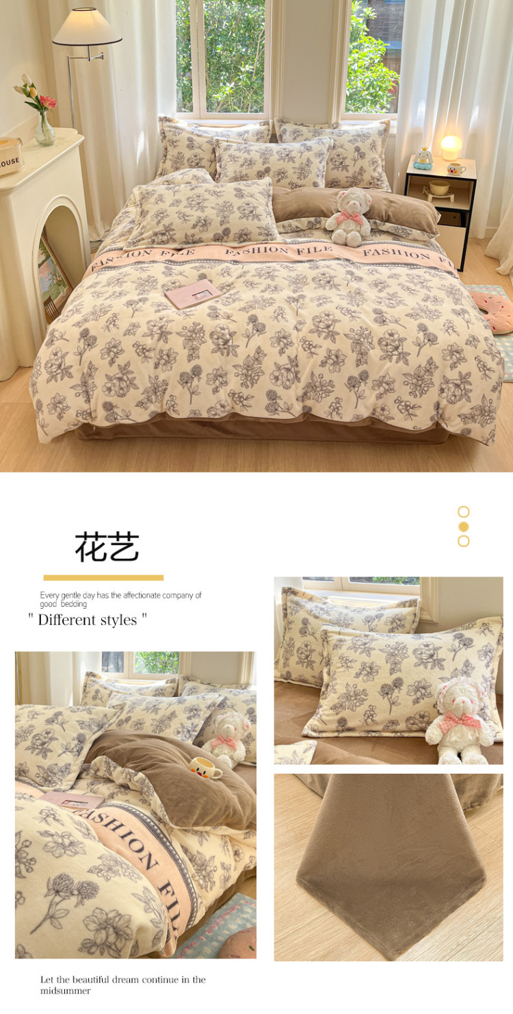 작은 신선한 우유 벨벳 4 피스 세트 플란넬 기숙사 3 피스 세트 두꺼운 크리스탈 벨벳 코랄 벨벳 침구스토어 가기