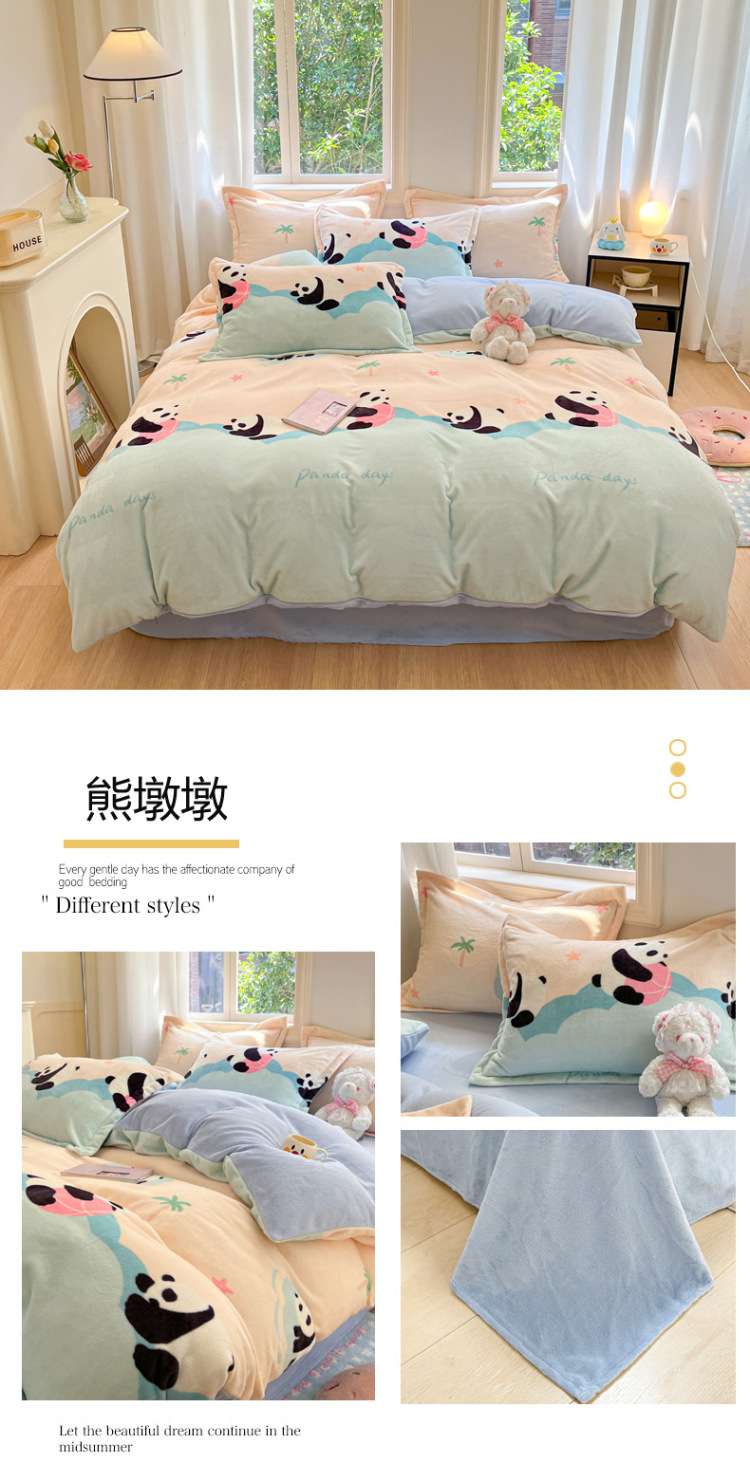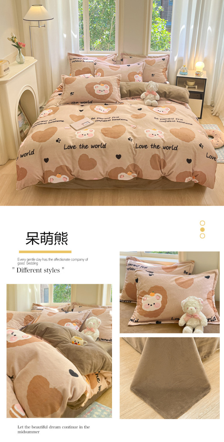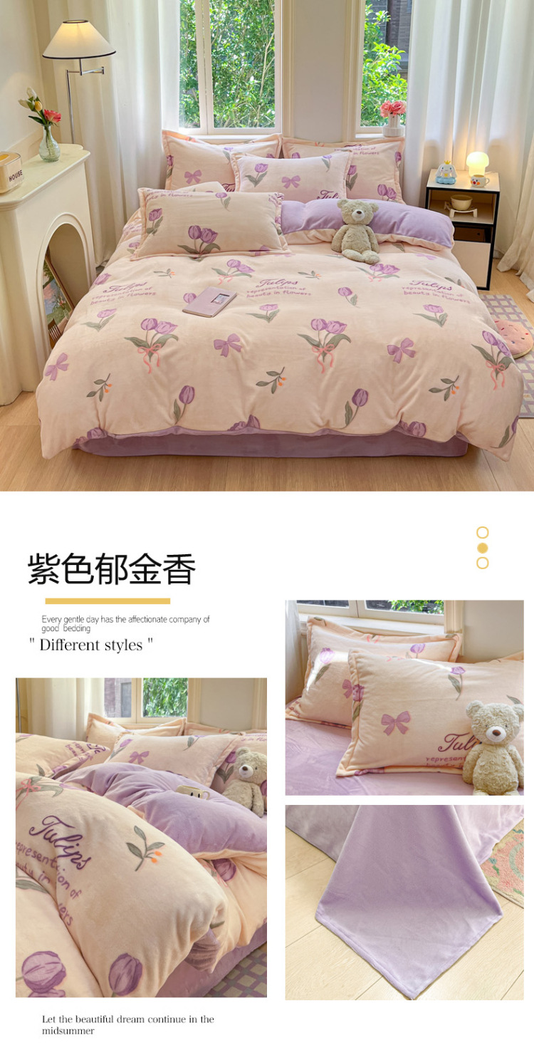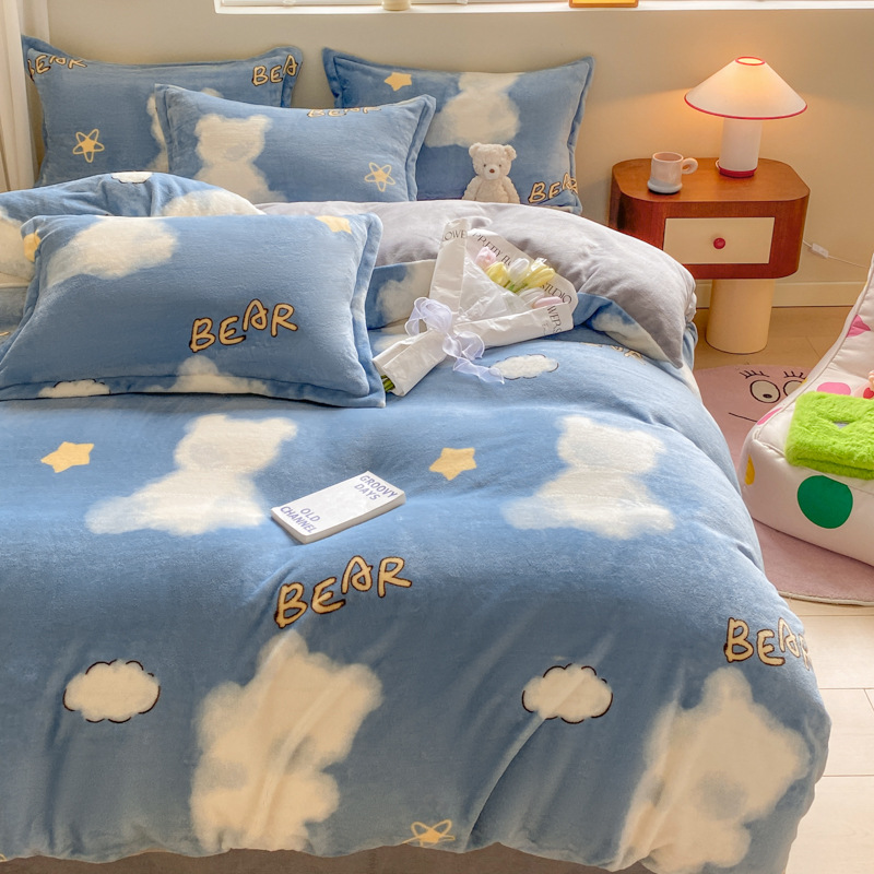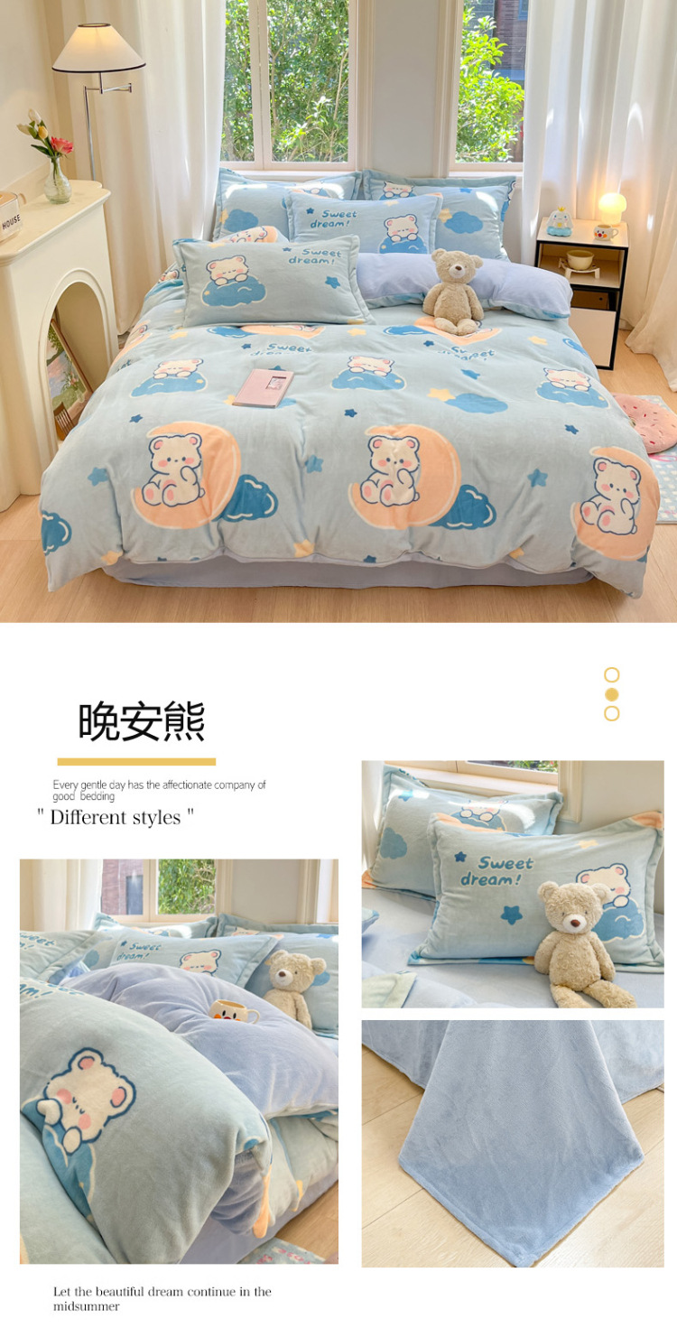 작은 신선한 우유 벨벳 4 피스 세트 플란넬 기숙사 3 피스 세트 두꺼운 크리스탈 벨벳 코랄 벨벳 침구스토어 가기