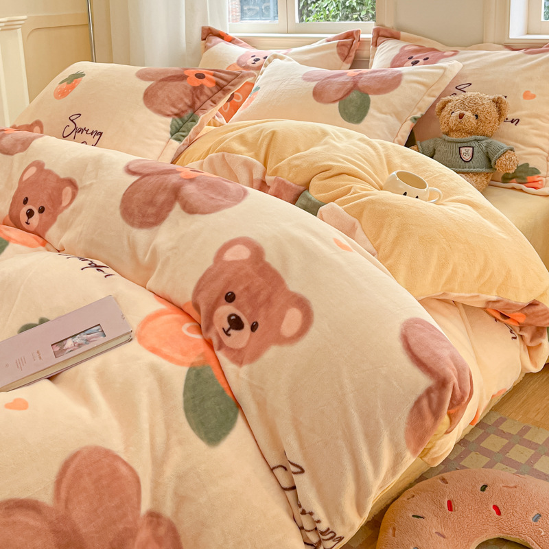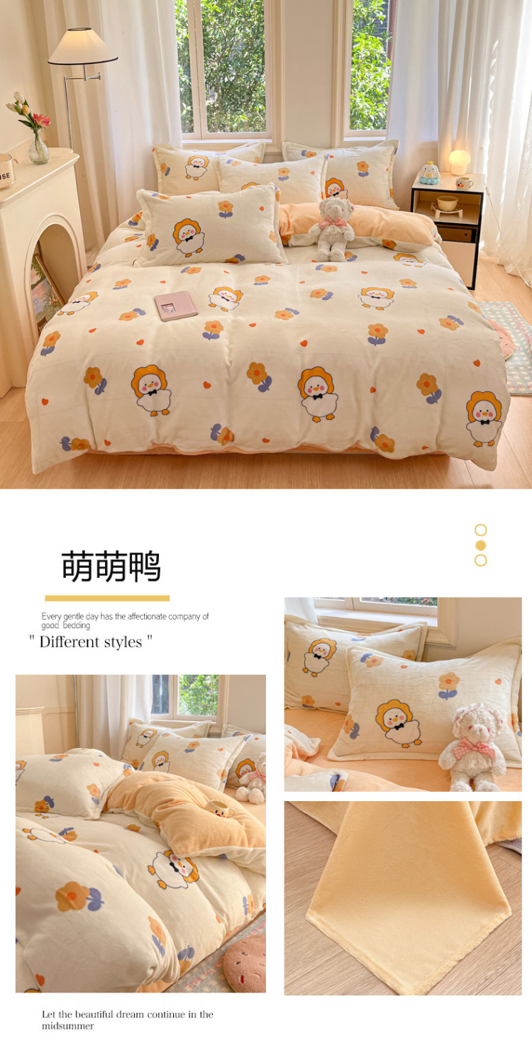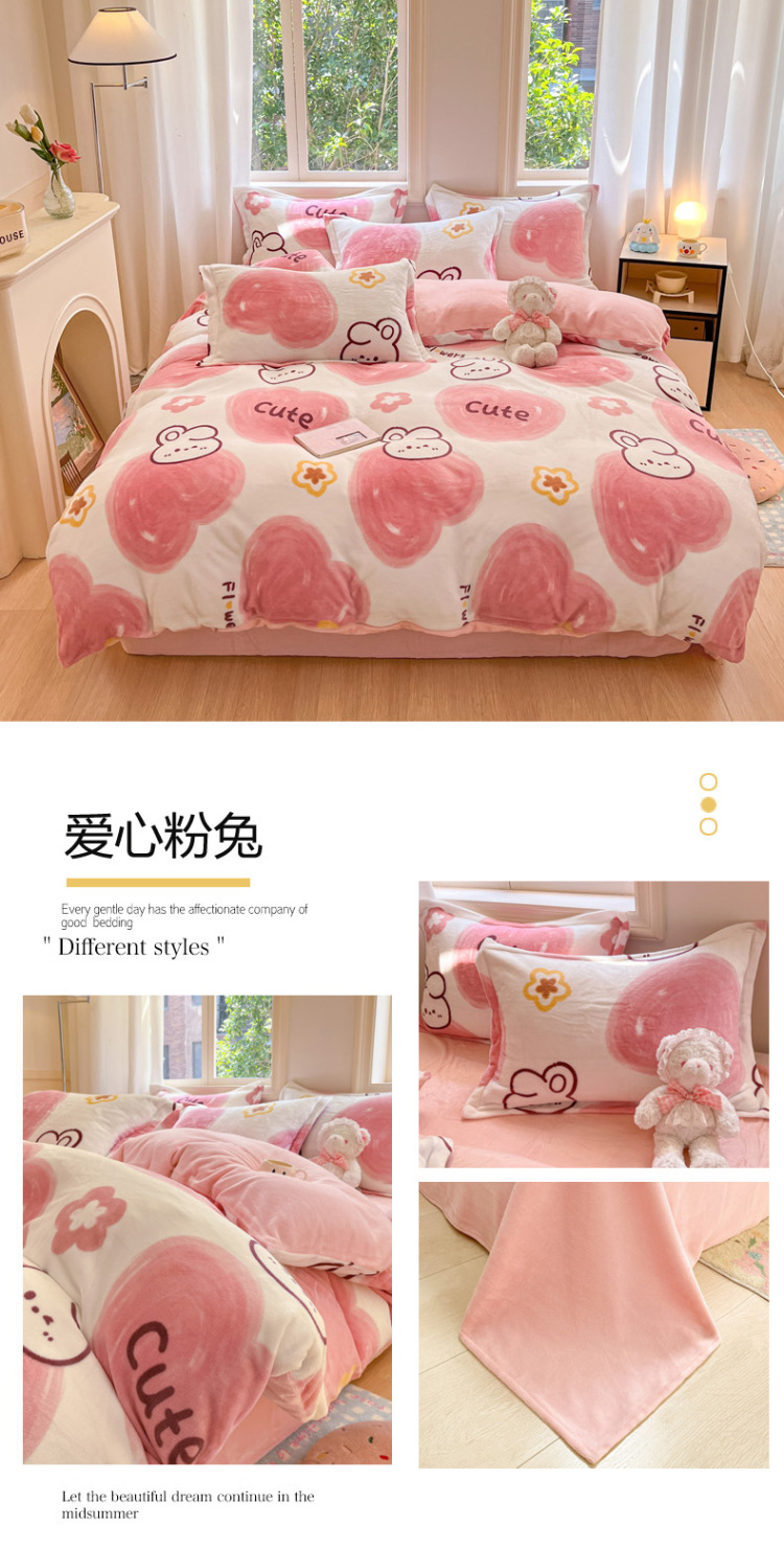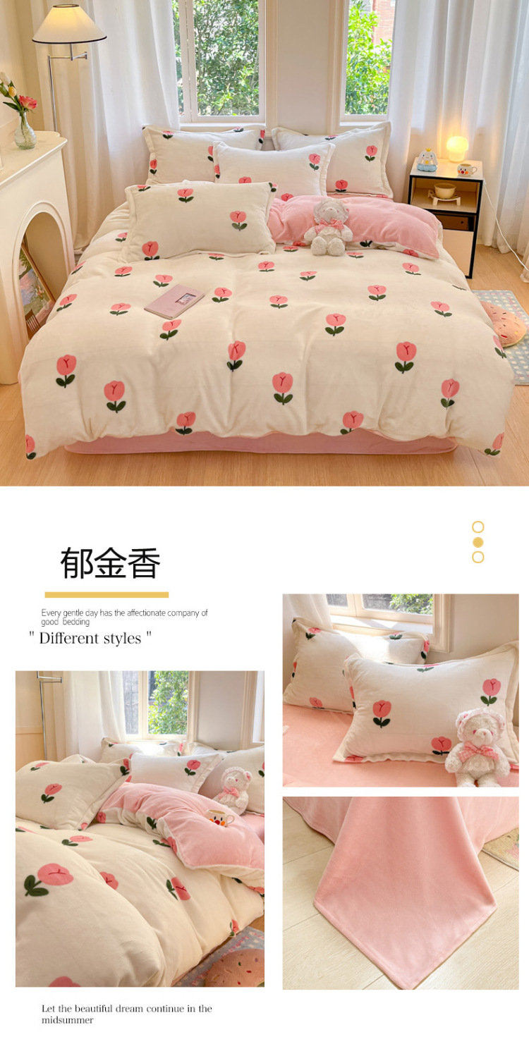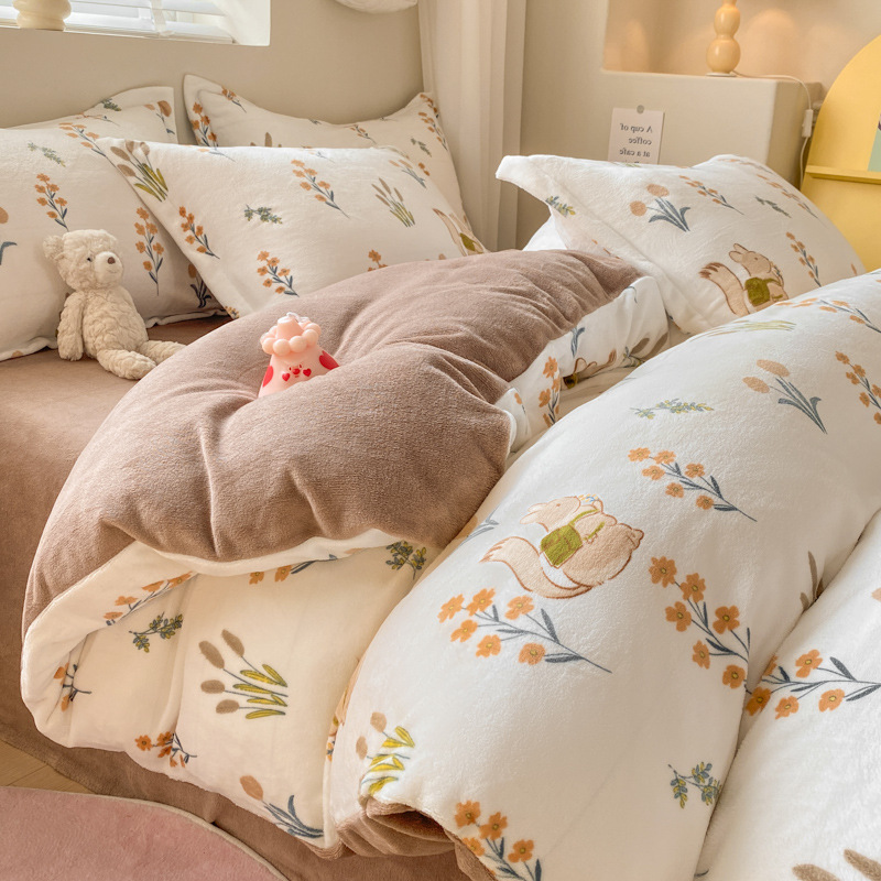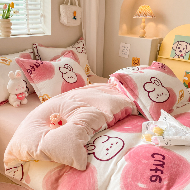작은 신선한 우유 벨벳 4 피스 세트 플란넬 기숙사 3 피스 세트 두꺼운 크리스탈 벨벳 코랄 벨벳 침구