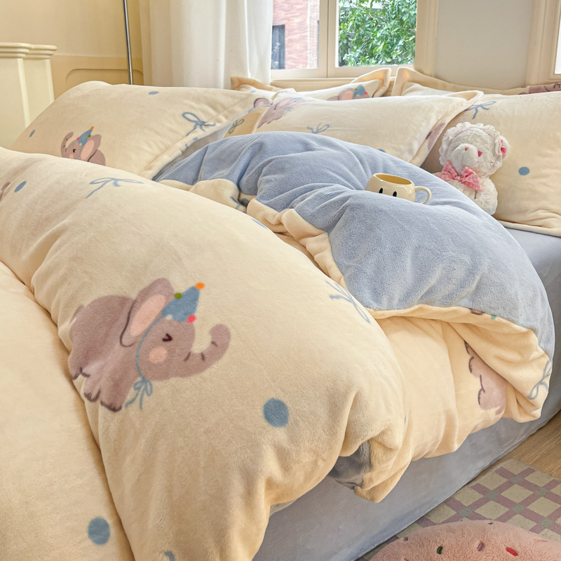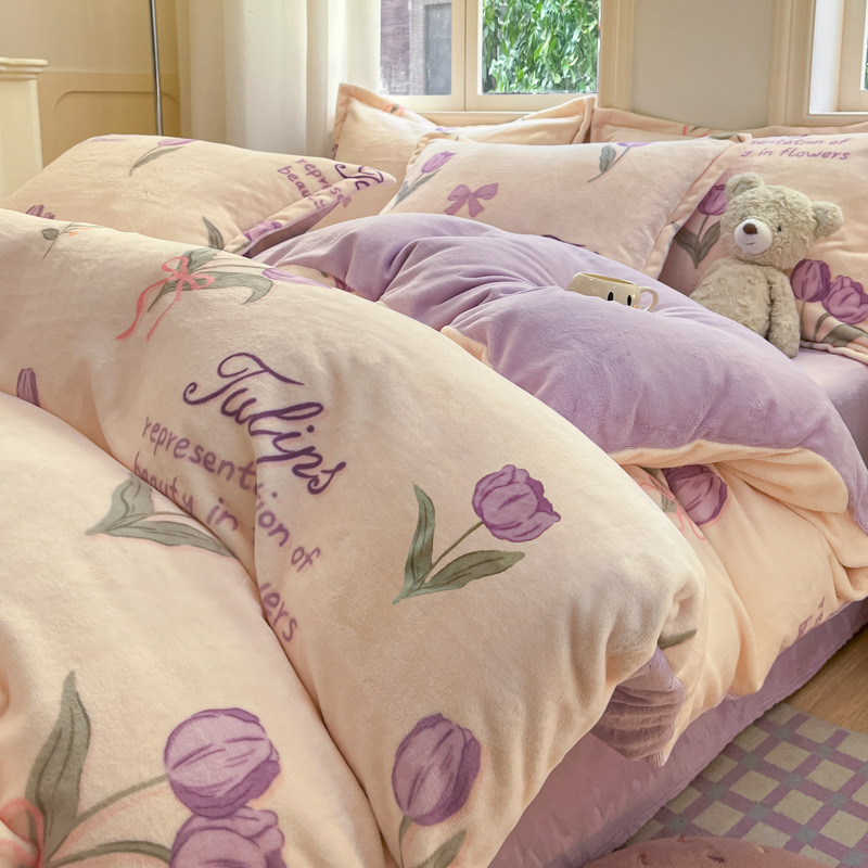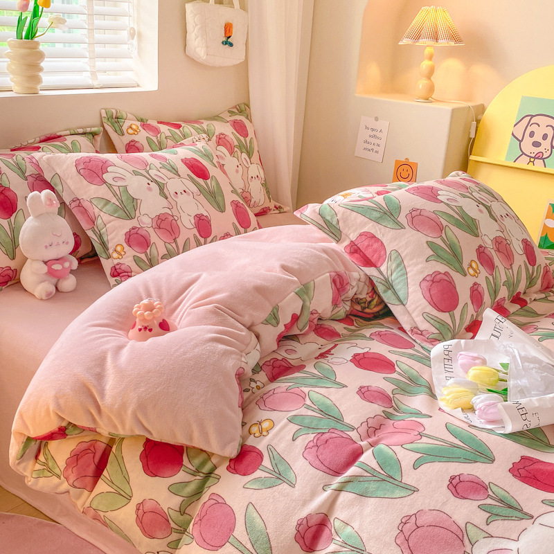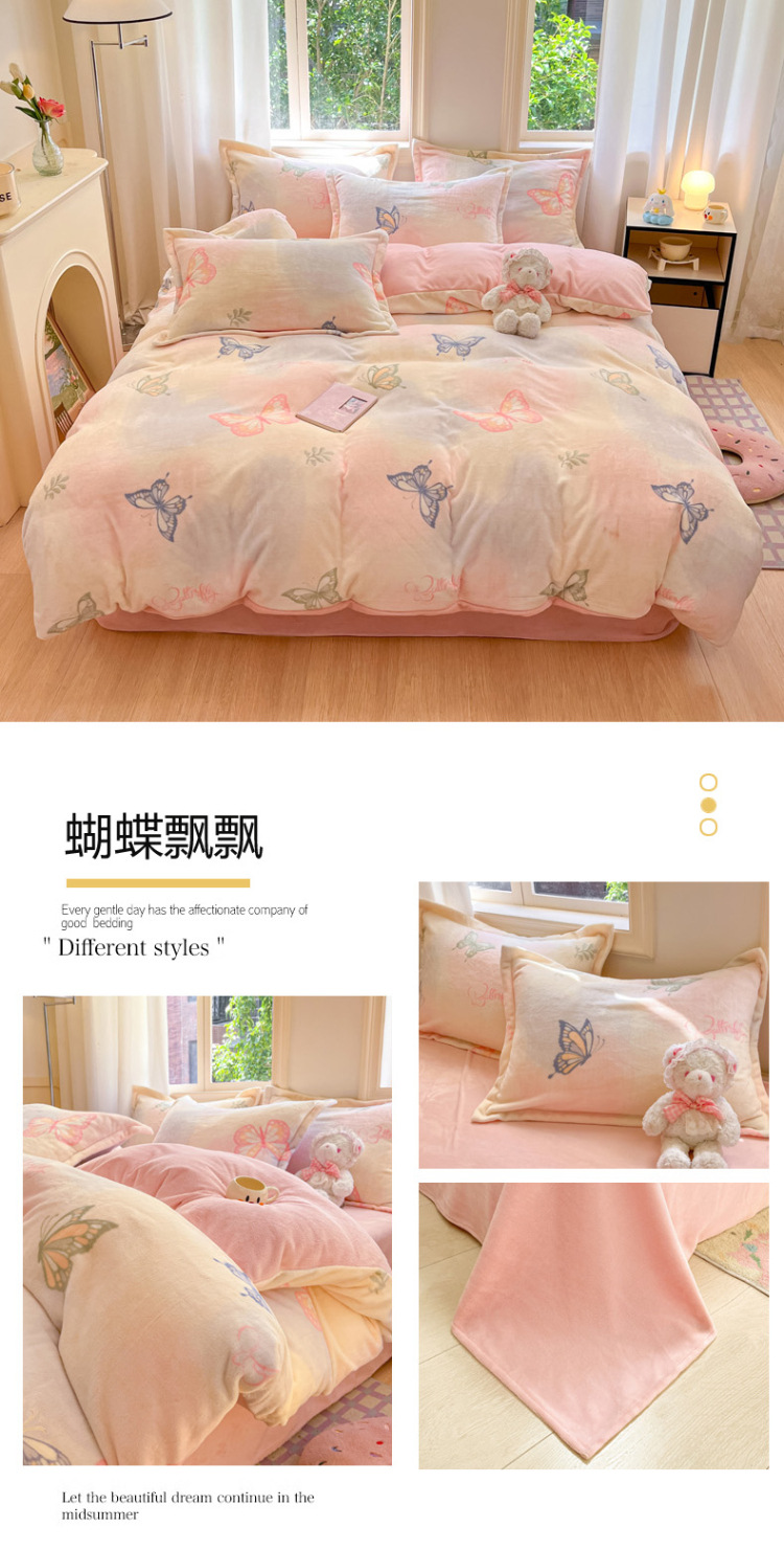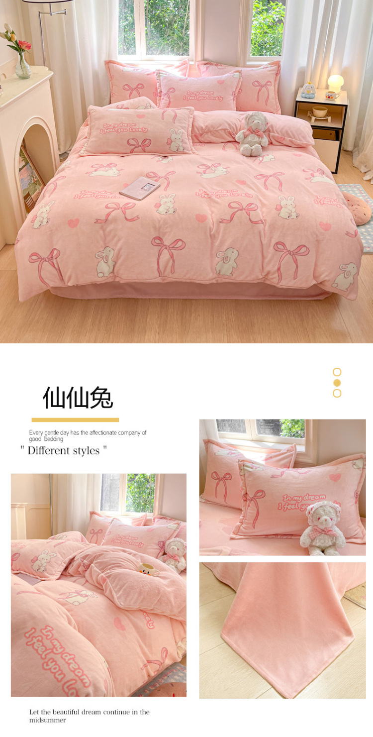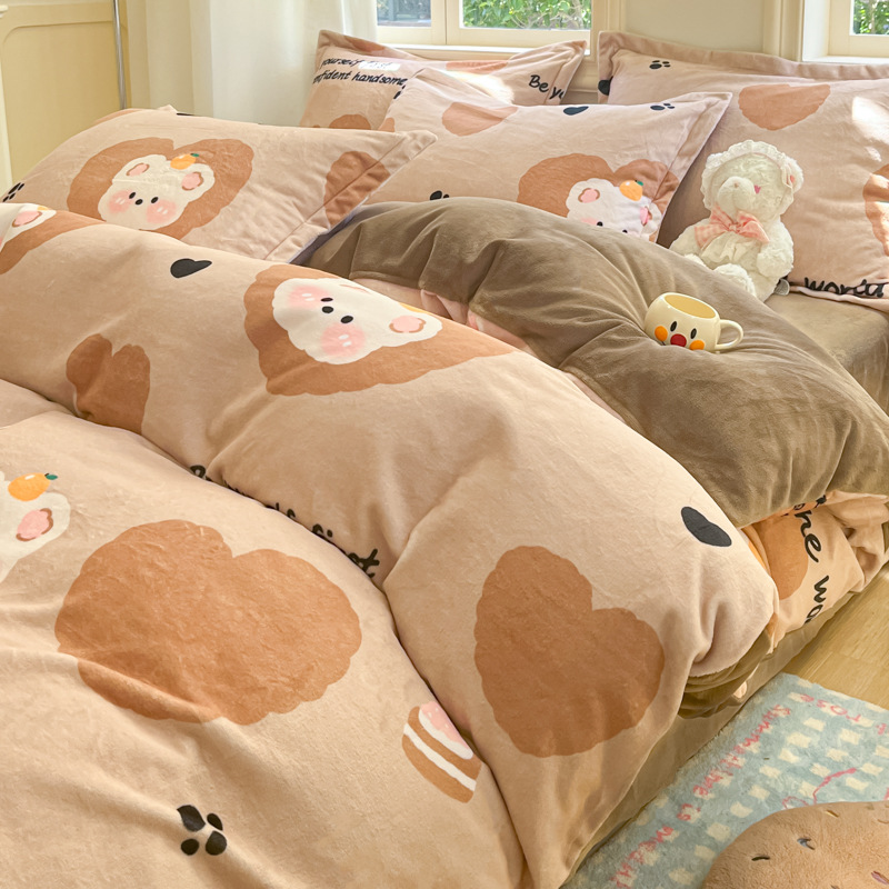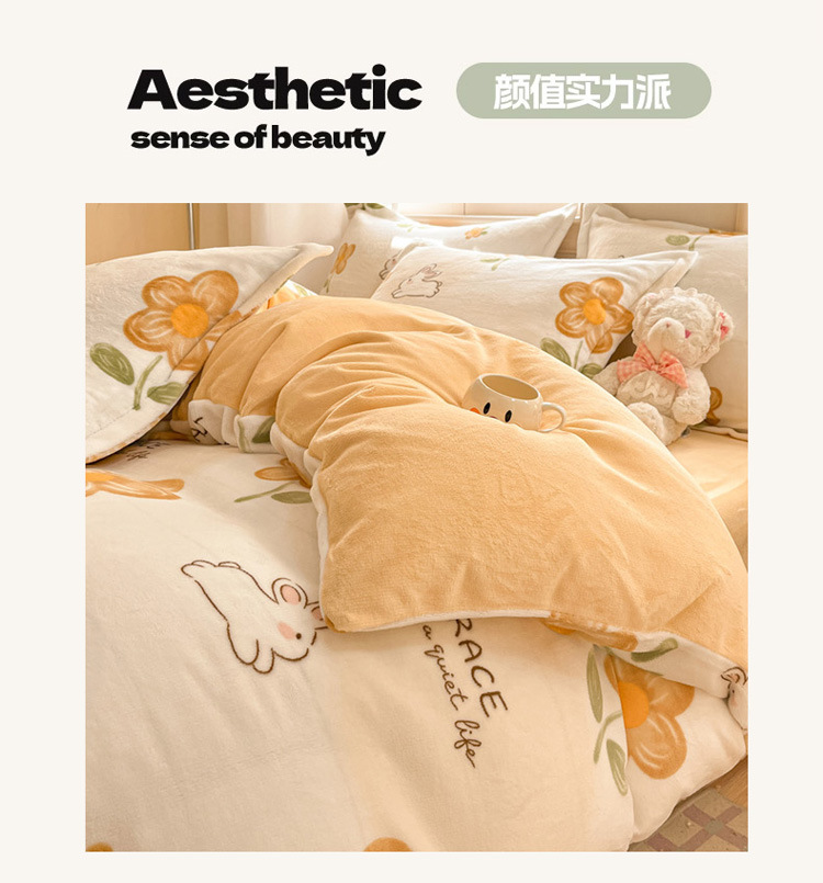 작은 신선한 우유 벨벳 4 피스 세트 플란넬 기숙사 3 피스 세트 두꺼운 크리스탈 벨벳 코랄 벨벳 침구