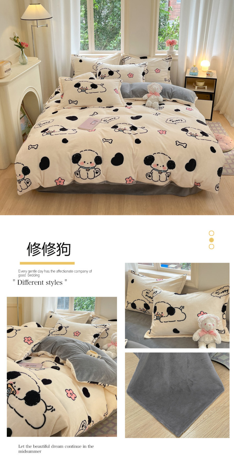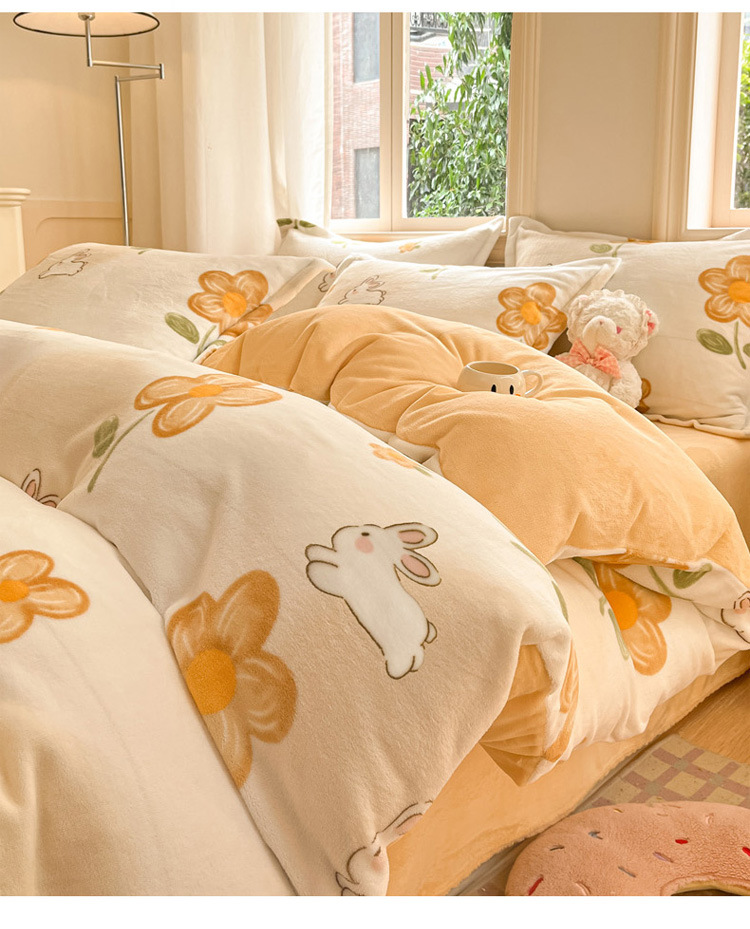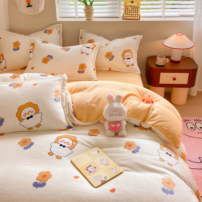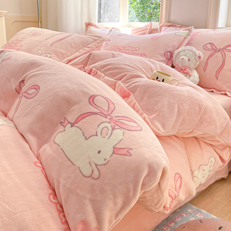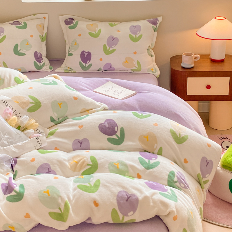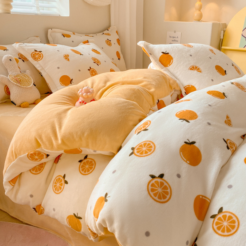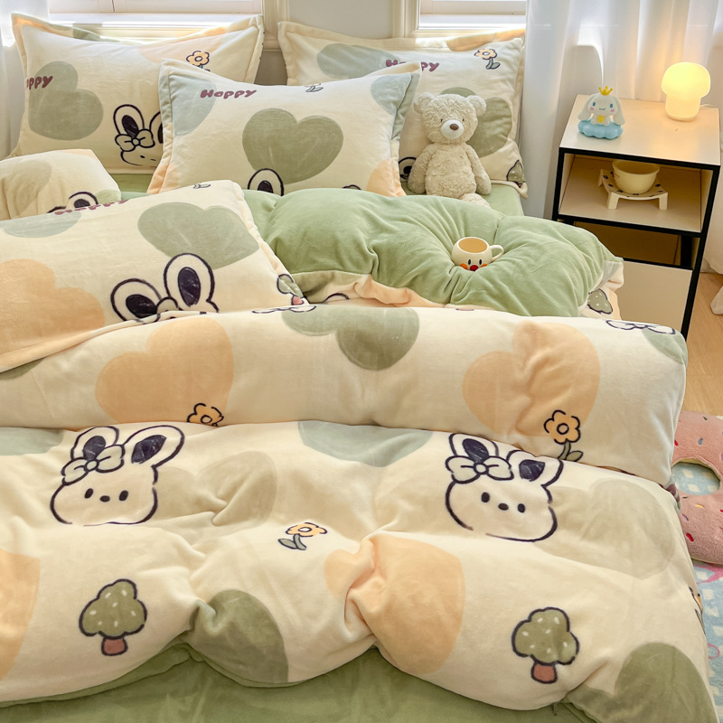 작은 신선한 우유 벨벳 4 피스 세트 플란넬 기숙사 3 피스 세트 두꺼운 크리스탈 벨벳 코랄 벨벳 침구