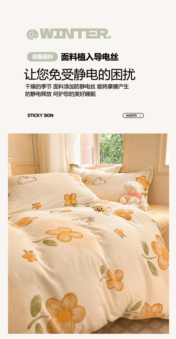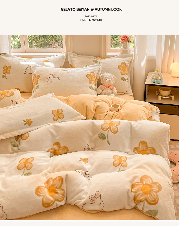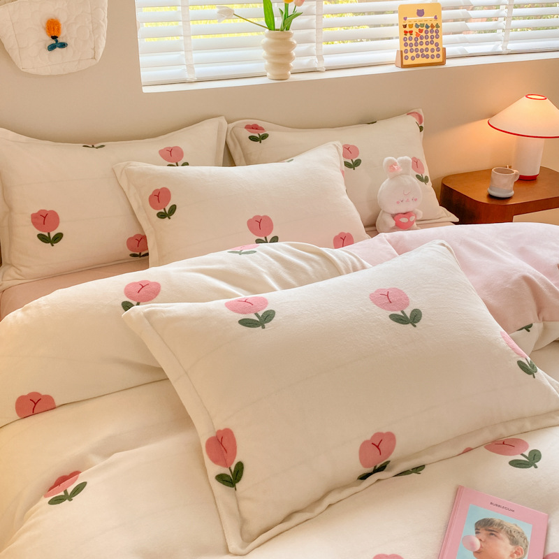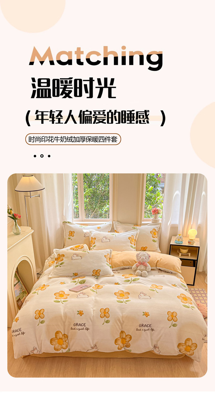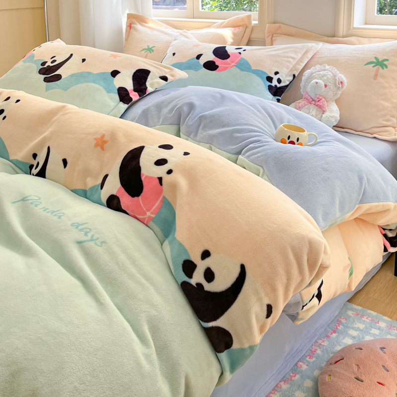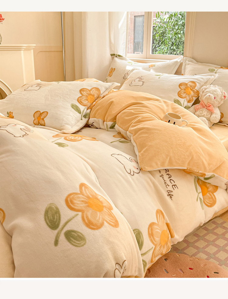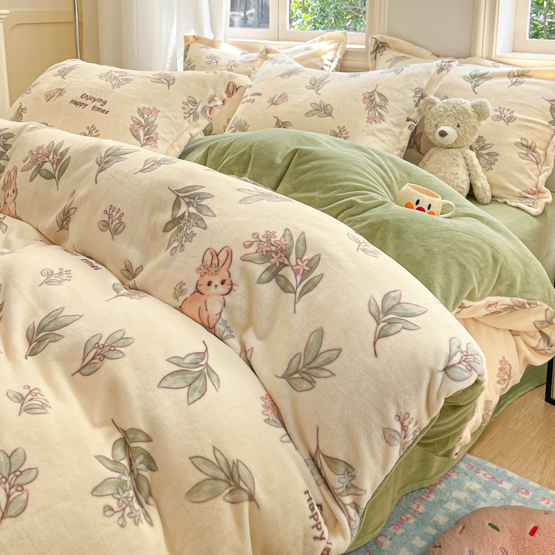 작은 신선한 우유 벨벳 4 피스 세트 플란넬 기숙사 3 피스 세트 두꺼운 크리스탈 벨벳 코랄 벨벳 침구