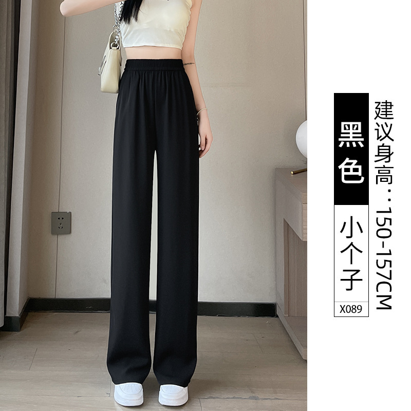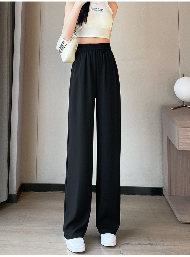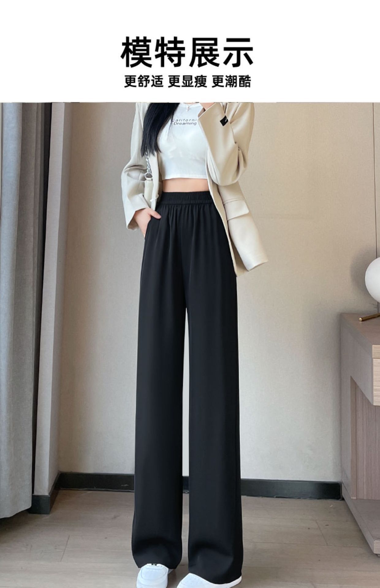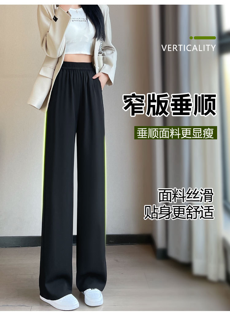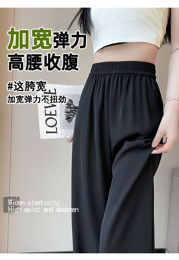 아이스 실크 와이드 레그 바지 여성용 여름 얇은 2024 새로운 캐주얼 투약 좁은 판 스트레이트 블랙 세트 바지 태양 보호