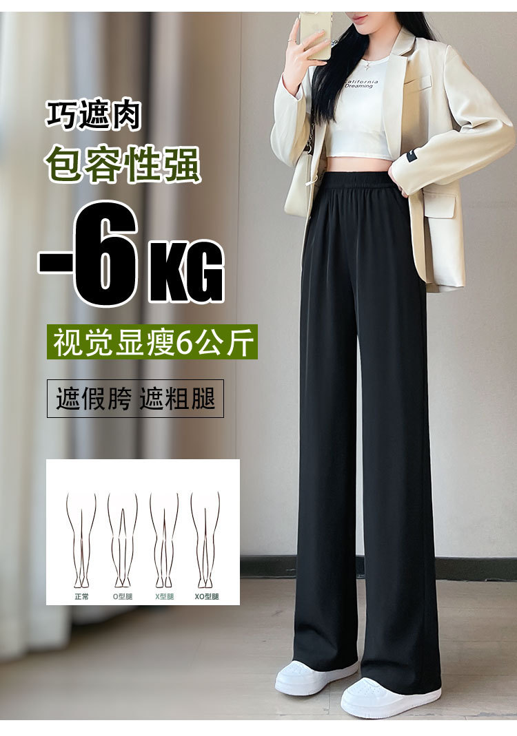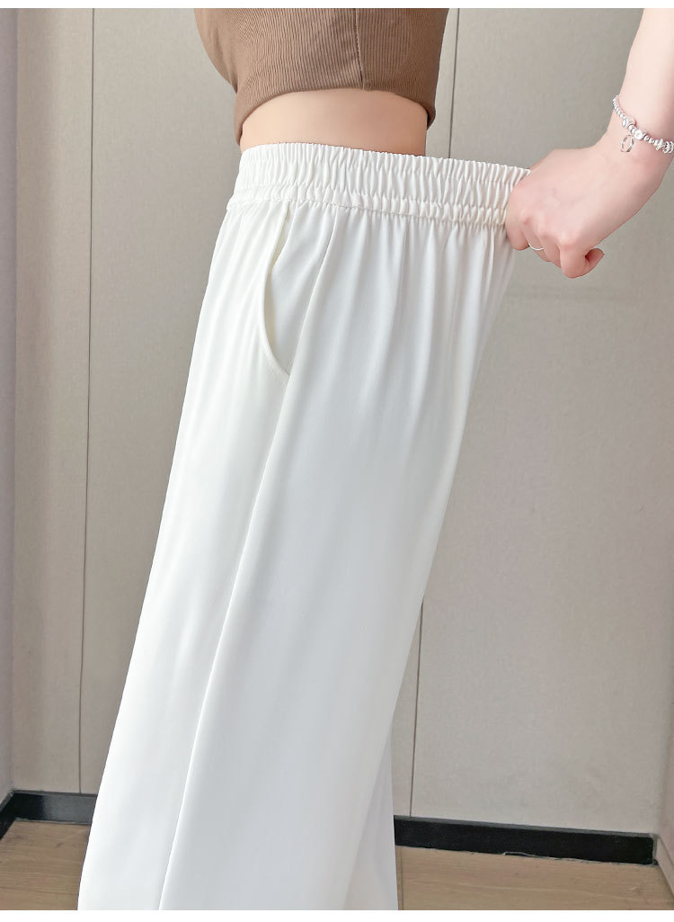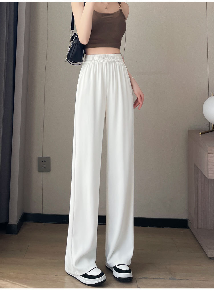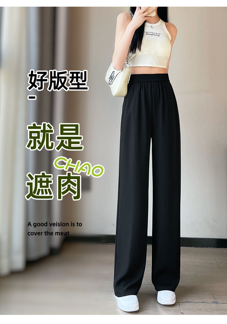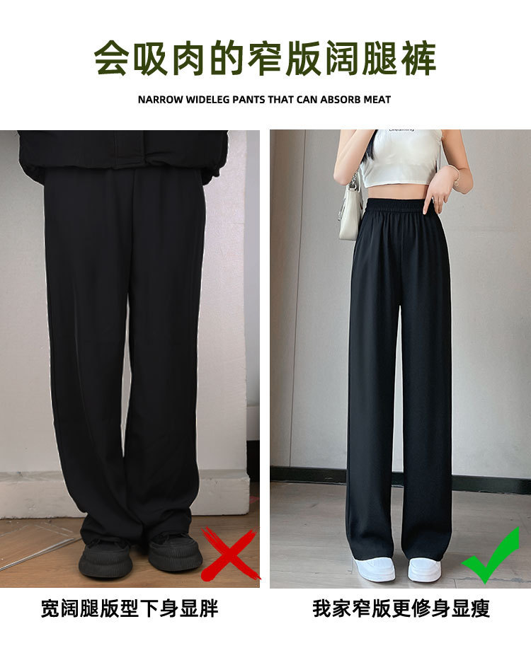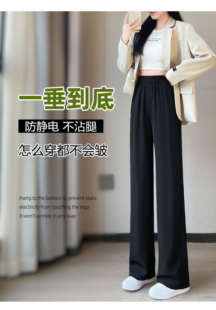 아이스 실크 와이드 레그 바지 여성용 여름 얇은 2024 새로운 캐주얼 투약 좁은 판 스트레이트 블랙 세트 바지 태양 보호