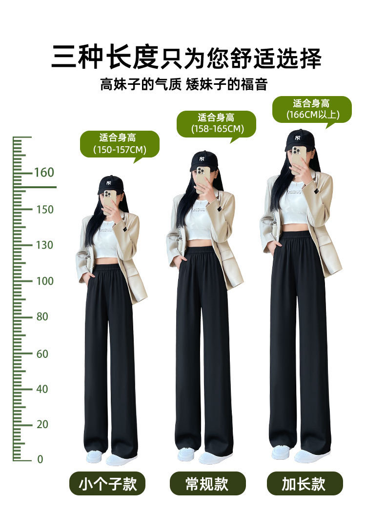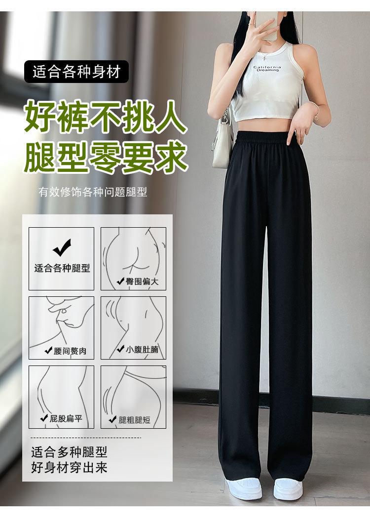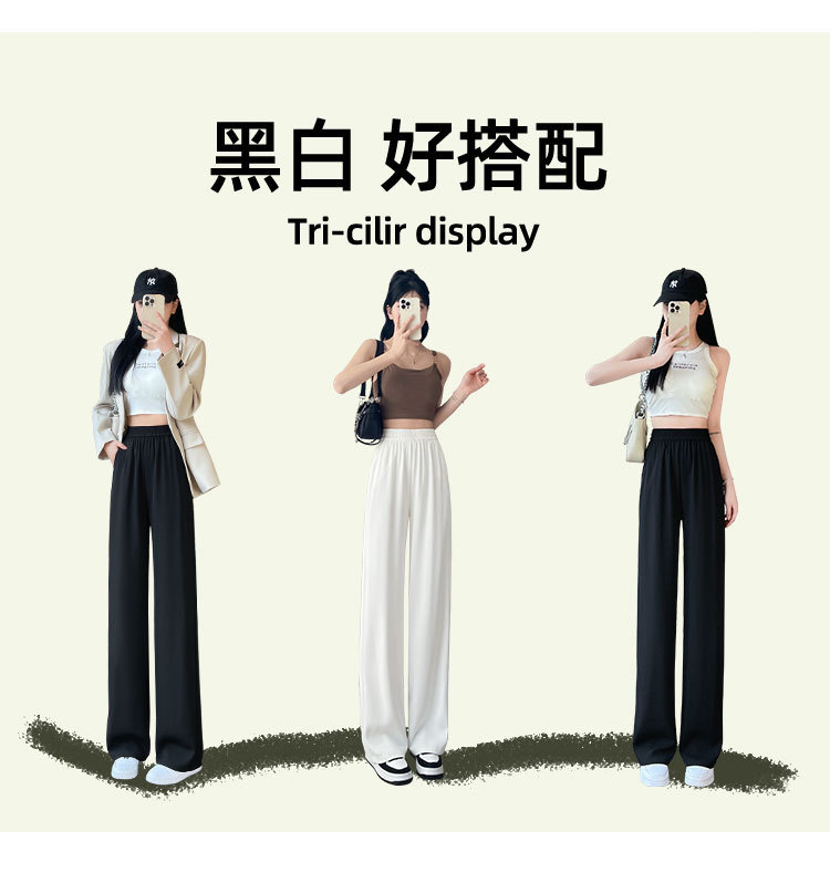 아이스 실크 와이드 레그 바지 여성용 여름 얇은 2024 새로운 캐주얼 투약 좁은 판 스트레이트 블랙 세트 바지 태양 보호스토어 가기