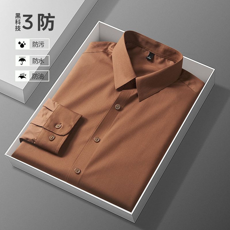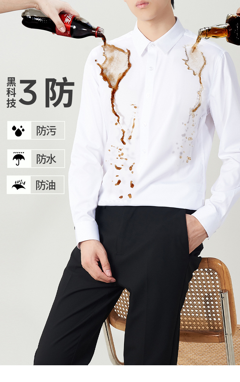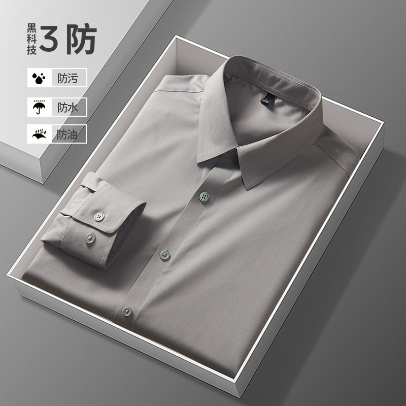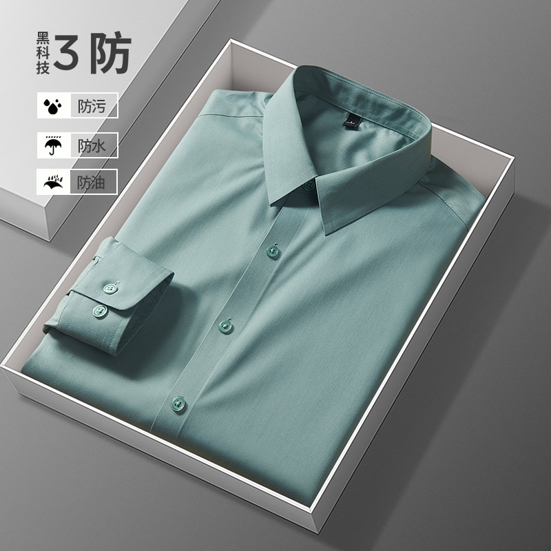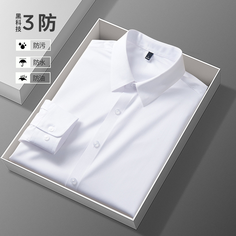 男士长袖衬衫高级感三防秋冬季防油污打底内搭西装衬衣工作服定制