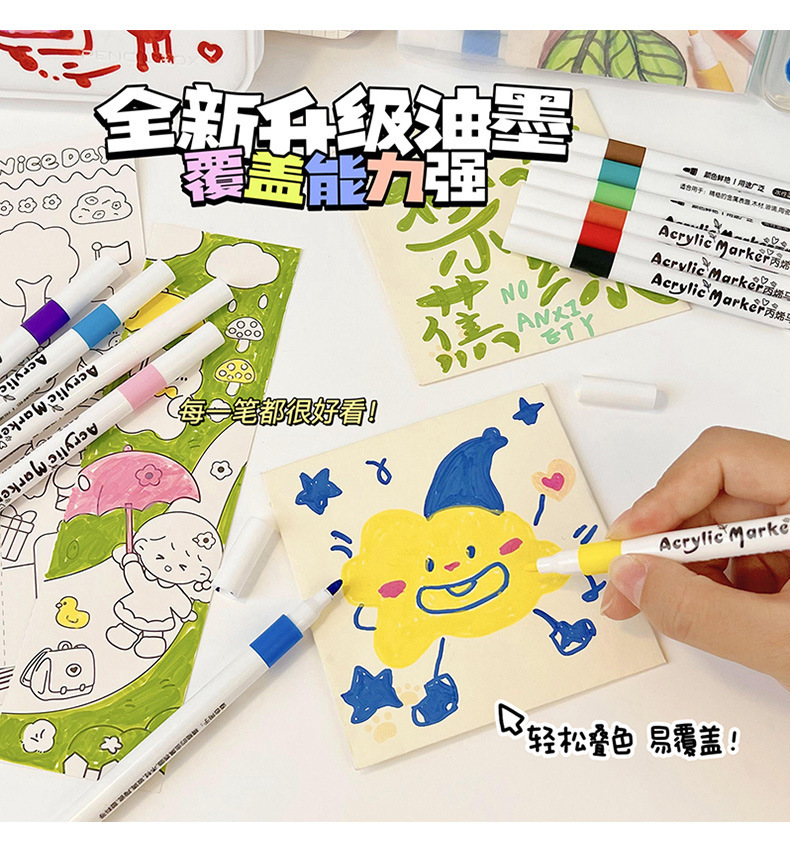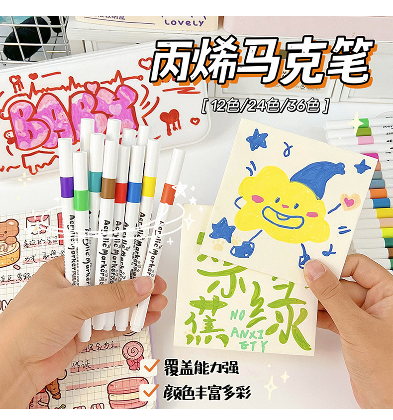 어린이 아크릴 마커 펜 불투명 수채화 펜 학생 예술 손으로 그린 브러시 방수 DIY 페인트 펜