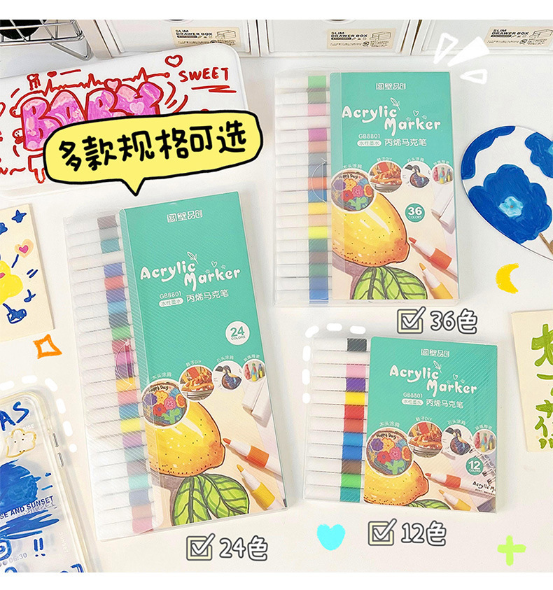어린이 아크릴 마커 펜 불투명 수채화 펜 학생 예술 손으로 그린 브러시 방수 DIY 페인트 펜스토어 가기