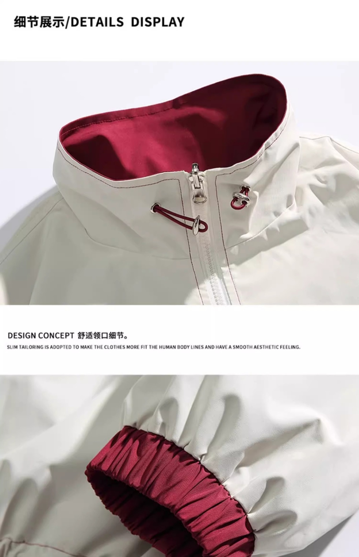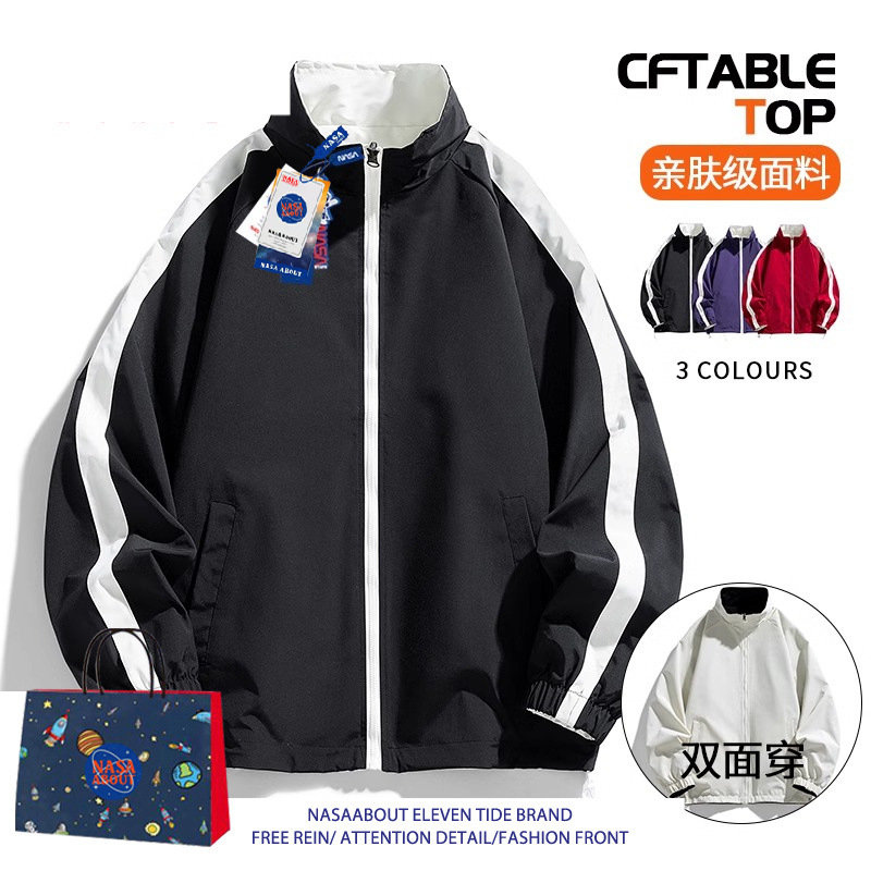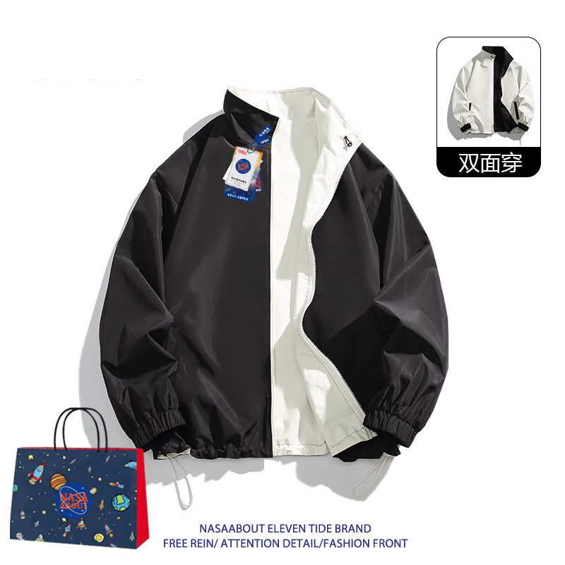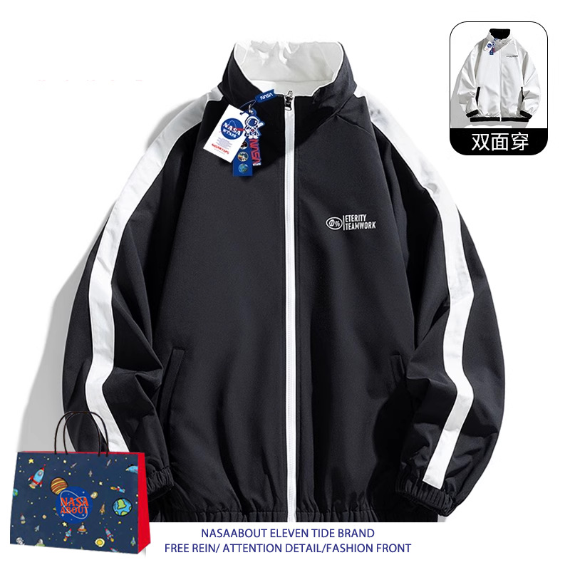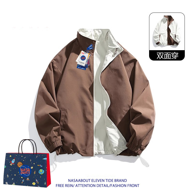 NASA 봄과 가을 버건디 재킷 남성과 여성의 양면 유행 브랜드 커플의 스탠드 칼라 태양 보호 재킷 캐주얼 아우터