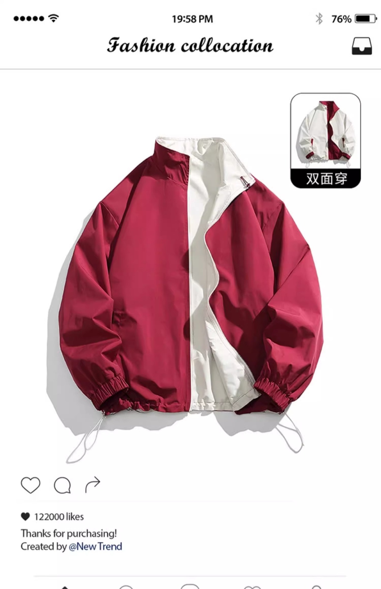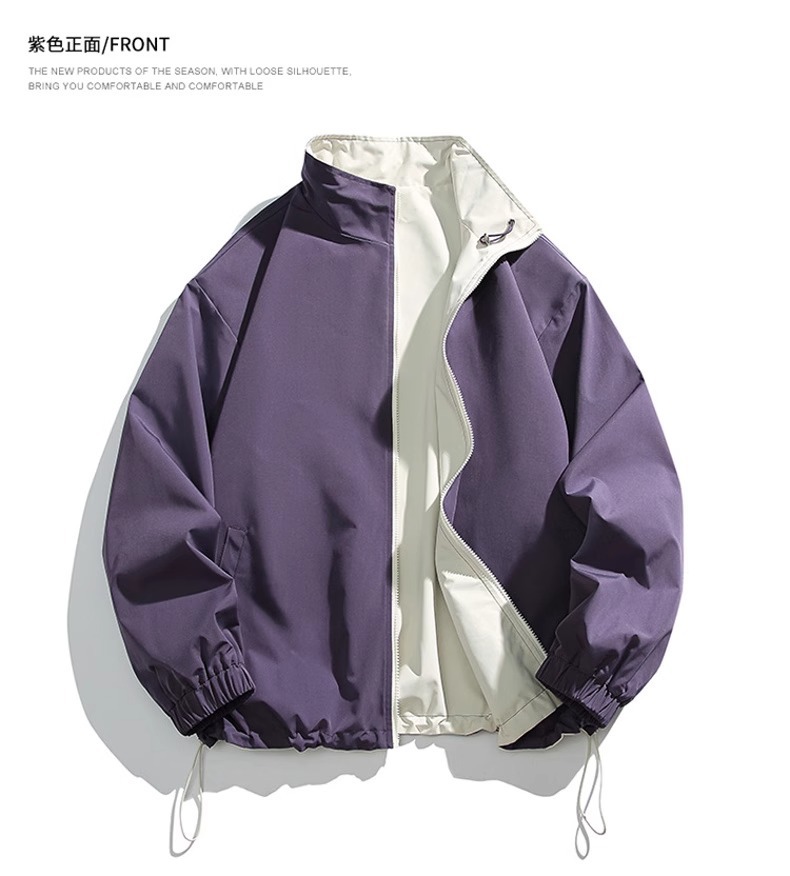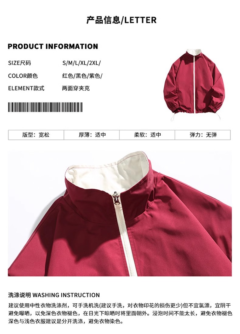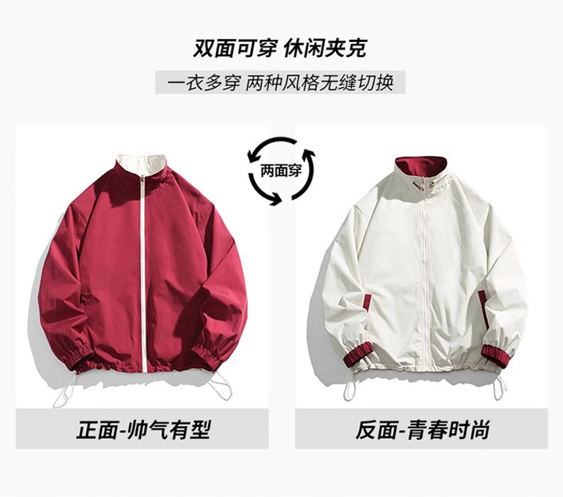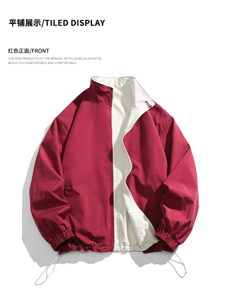 NASA 봄과 가을 버건디 재킷 남성과 여성의 양면 유행 브랜드 커플의 스탠드 칼라 태양 보호 재킷 캐주얼 아우터