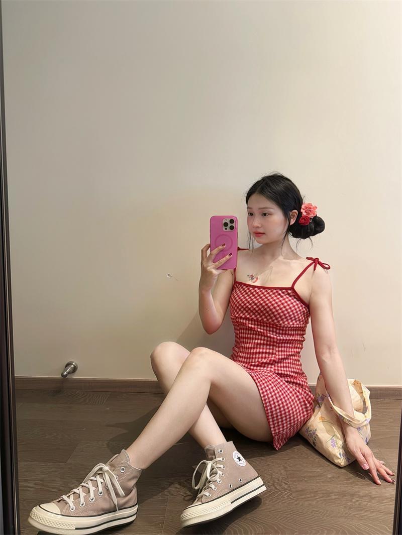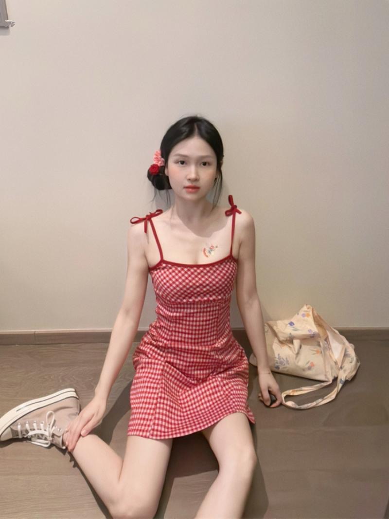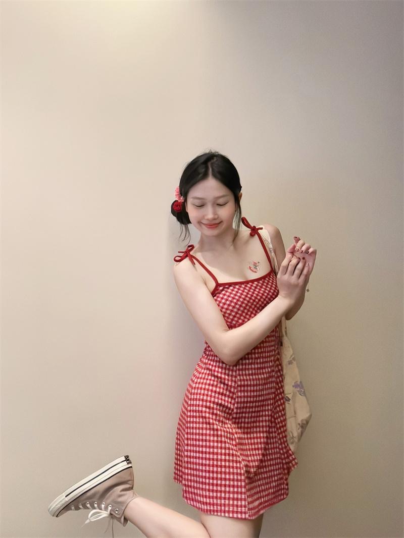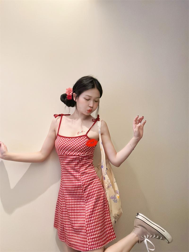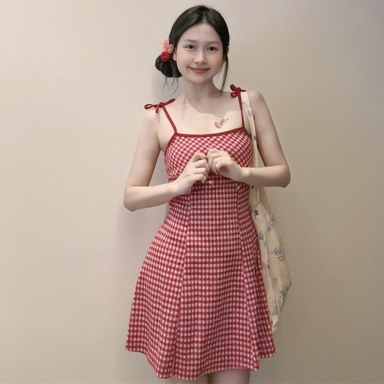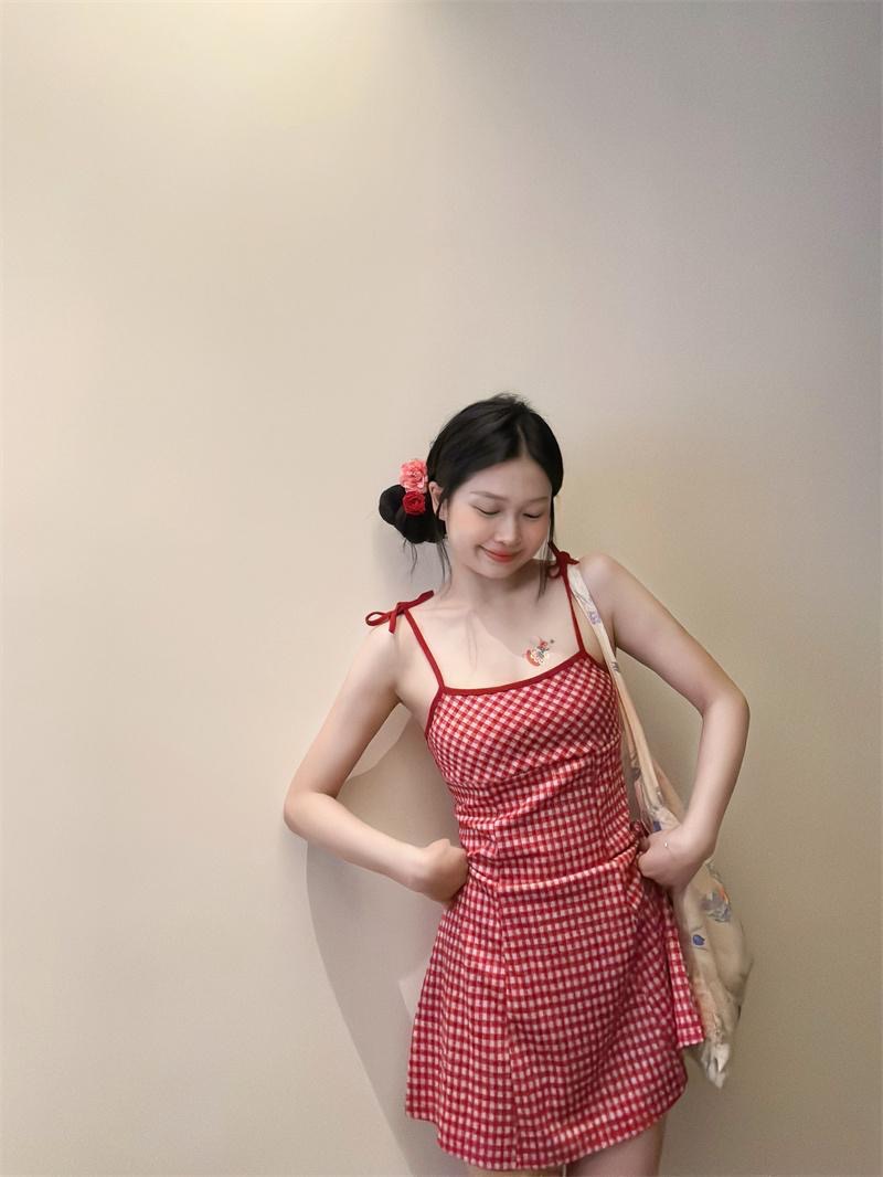 휴가 스타일 빨간 격자 무늬 원피스 여성 여름 작은 여성용 슬립 스커트 나이 감소 슬림 핏 A 라인 스커트스토어 가기