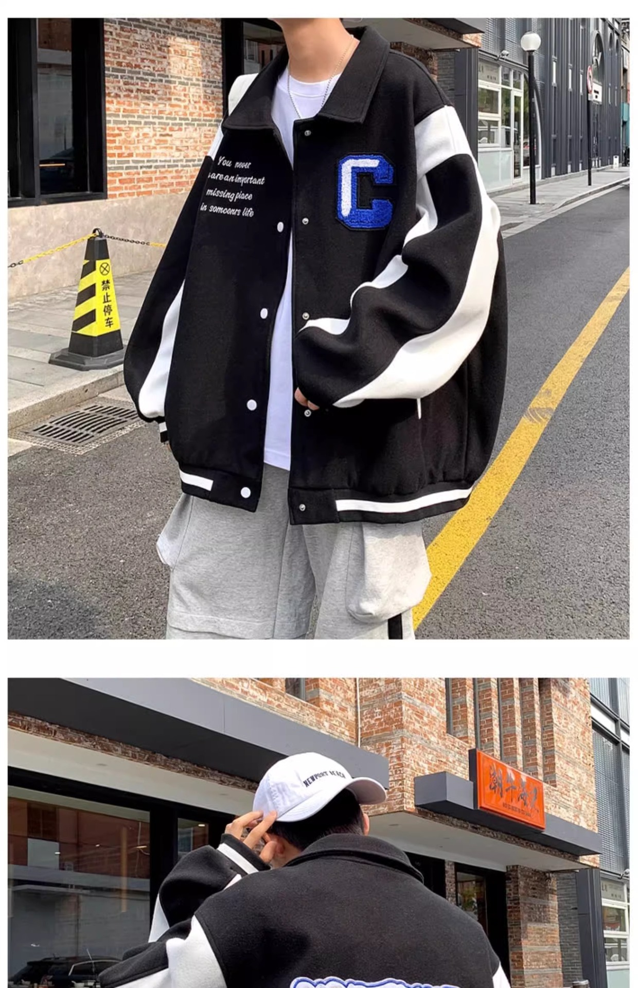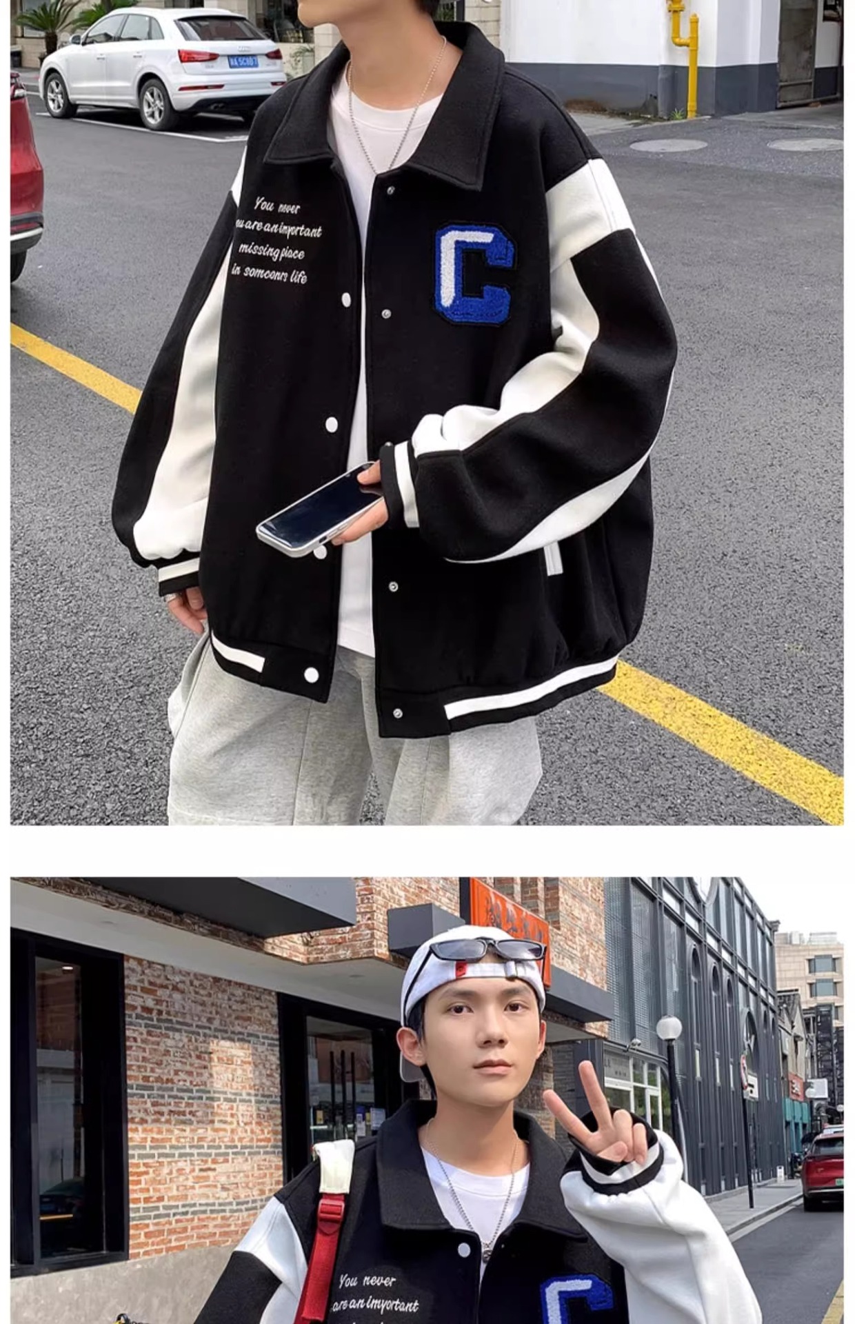 NASA 미국 빈티지 야구 세트 남자 봄과 가을 코트 느슨한 플러스 사이즈 소년 재킷 옷깃 캐주얼
