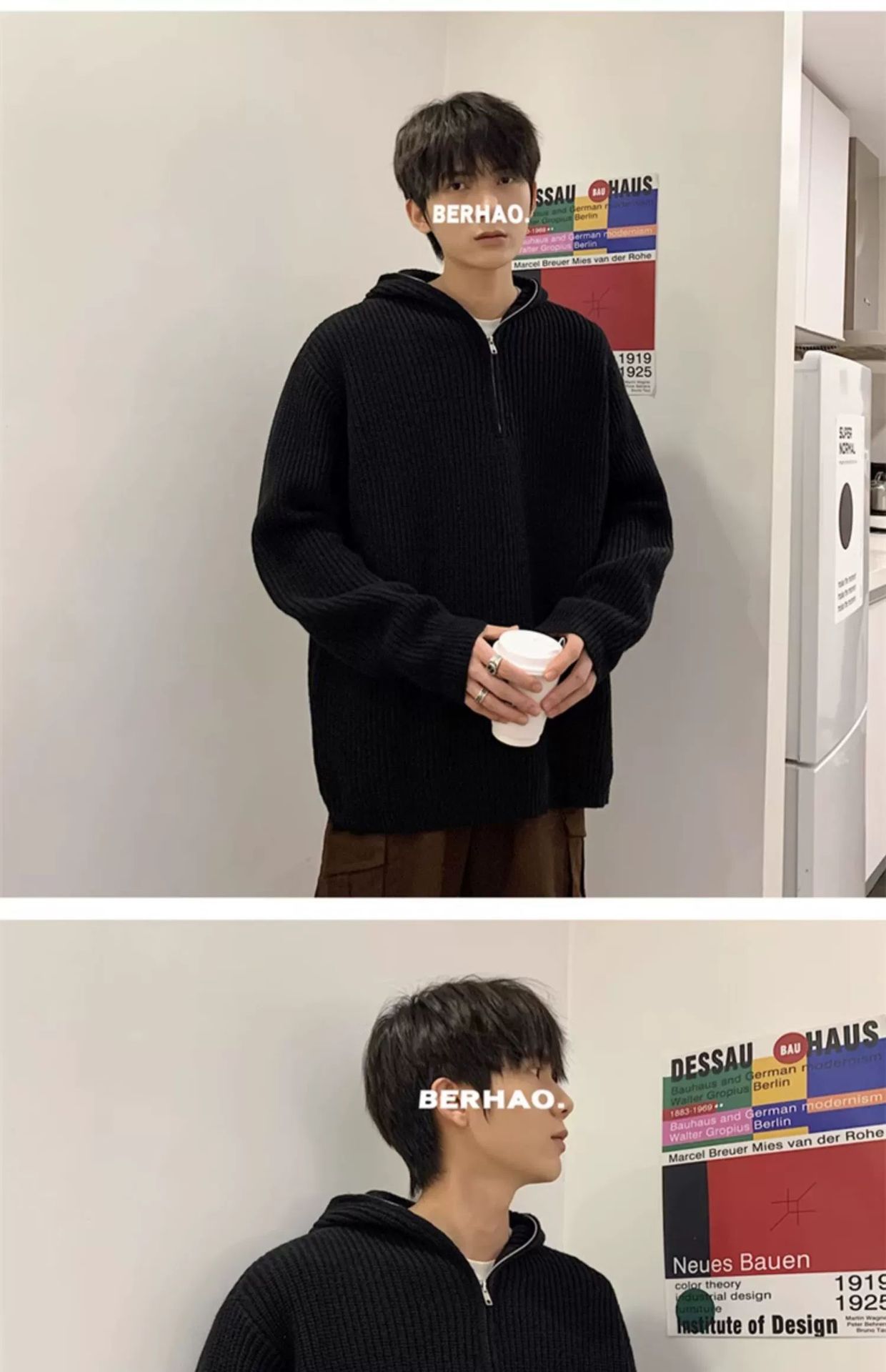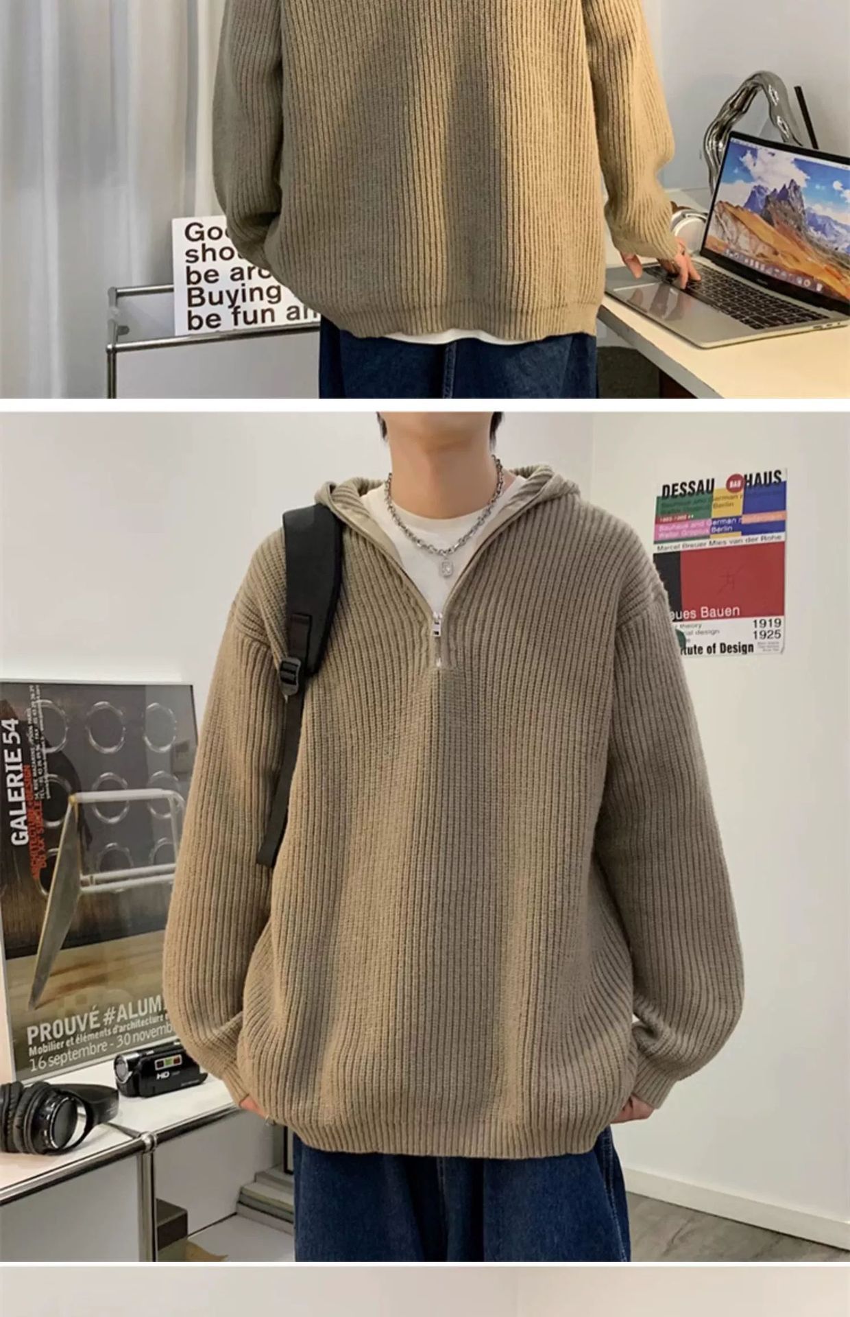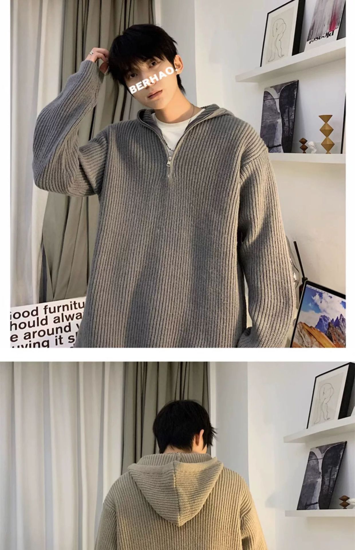 그레이 클렌핏 하프 Zip 후드 스웨터 남자 게으른 스타일 더피 핸섬 미국 스웨터 재킷