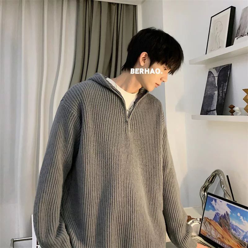 그레이 클렌핏 하프 Zip 후드 스웨터 남자 게으른 스타일 더피 핸섬 미국 스웨터 재킷스토어 가기
