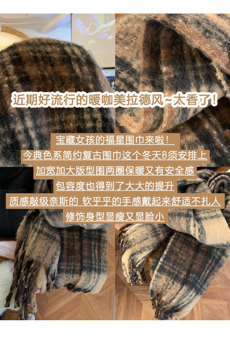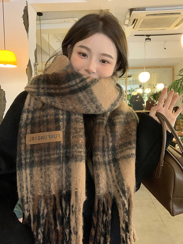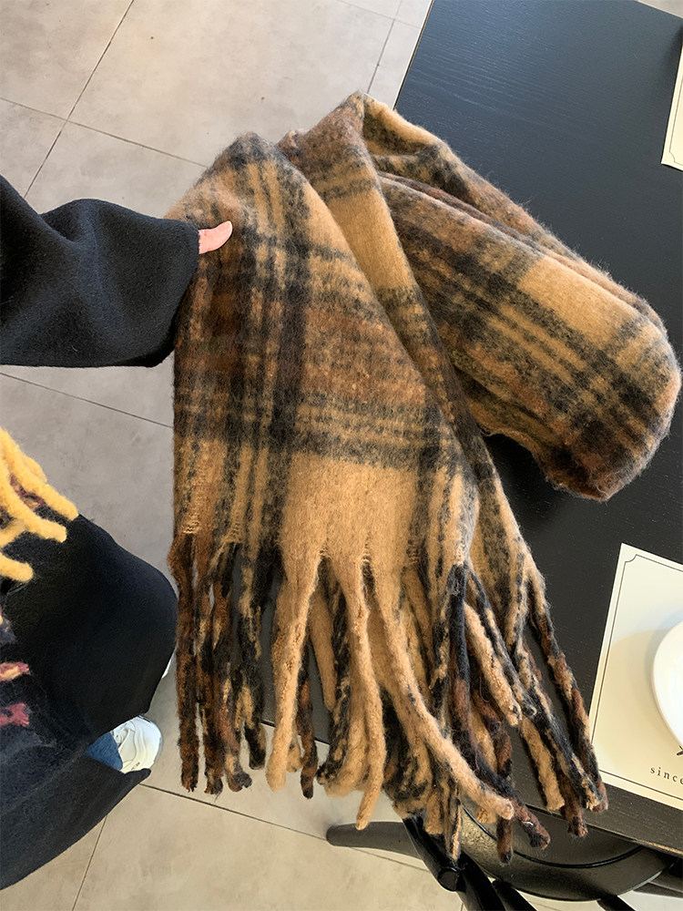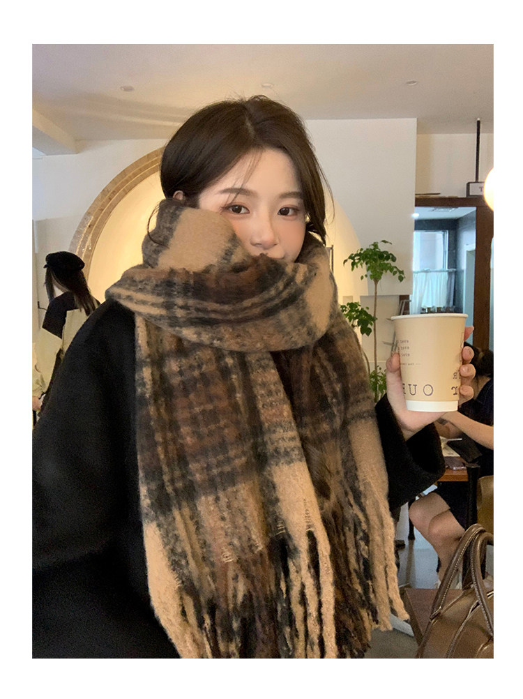 따뜻한 카페 Maillard ~ 고급 격자 무늬 스카프 여성의 가을과 겨울 복고풍 조커 두꺼운 따뜻한 목도리 스카프 패션스토어 가기