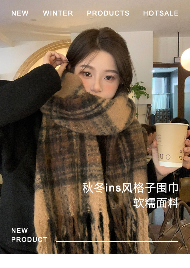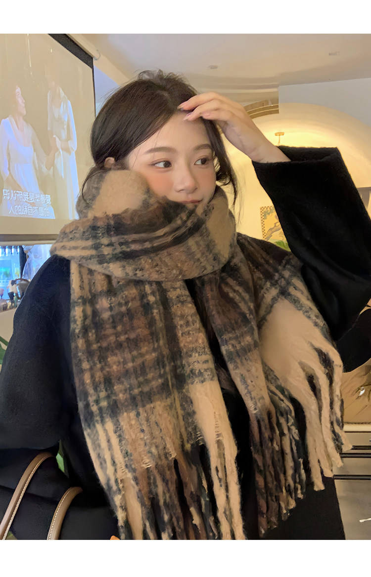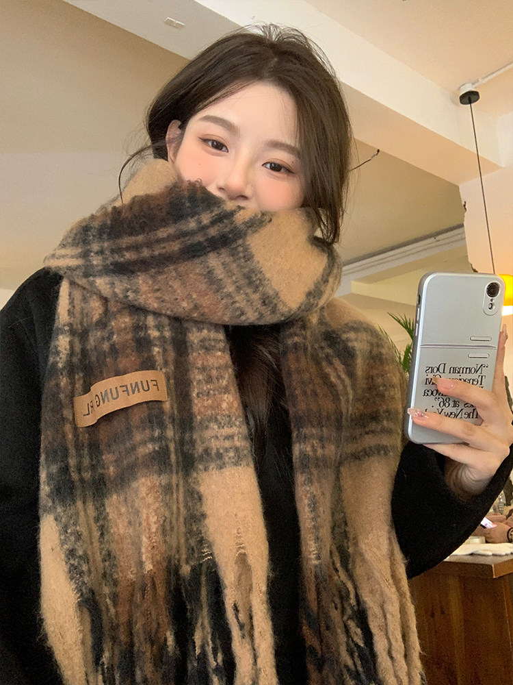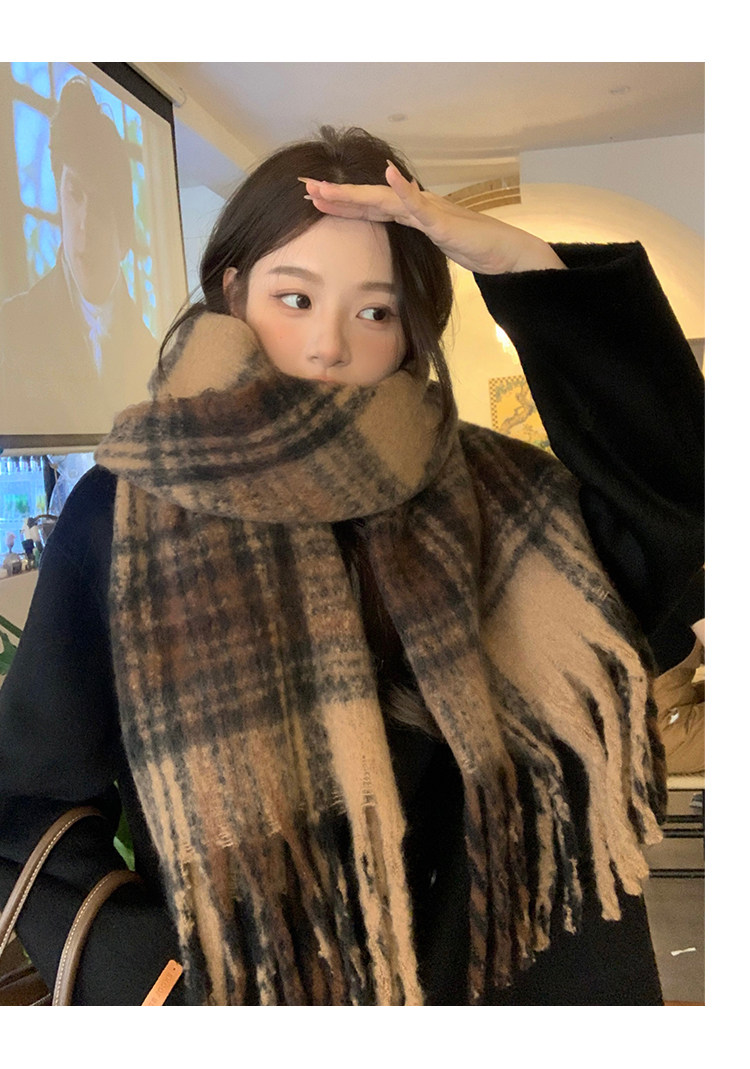 따뜻한 카페 Maillard ~ 고급 격자 무늬 스카프 여성의 가을과 겨울 복고풍 조커 두꺼운 따뜻한 목도리 스카프 패션스토어 가기