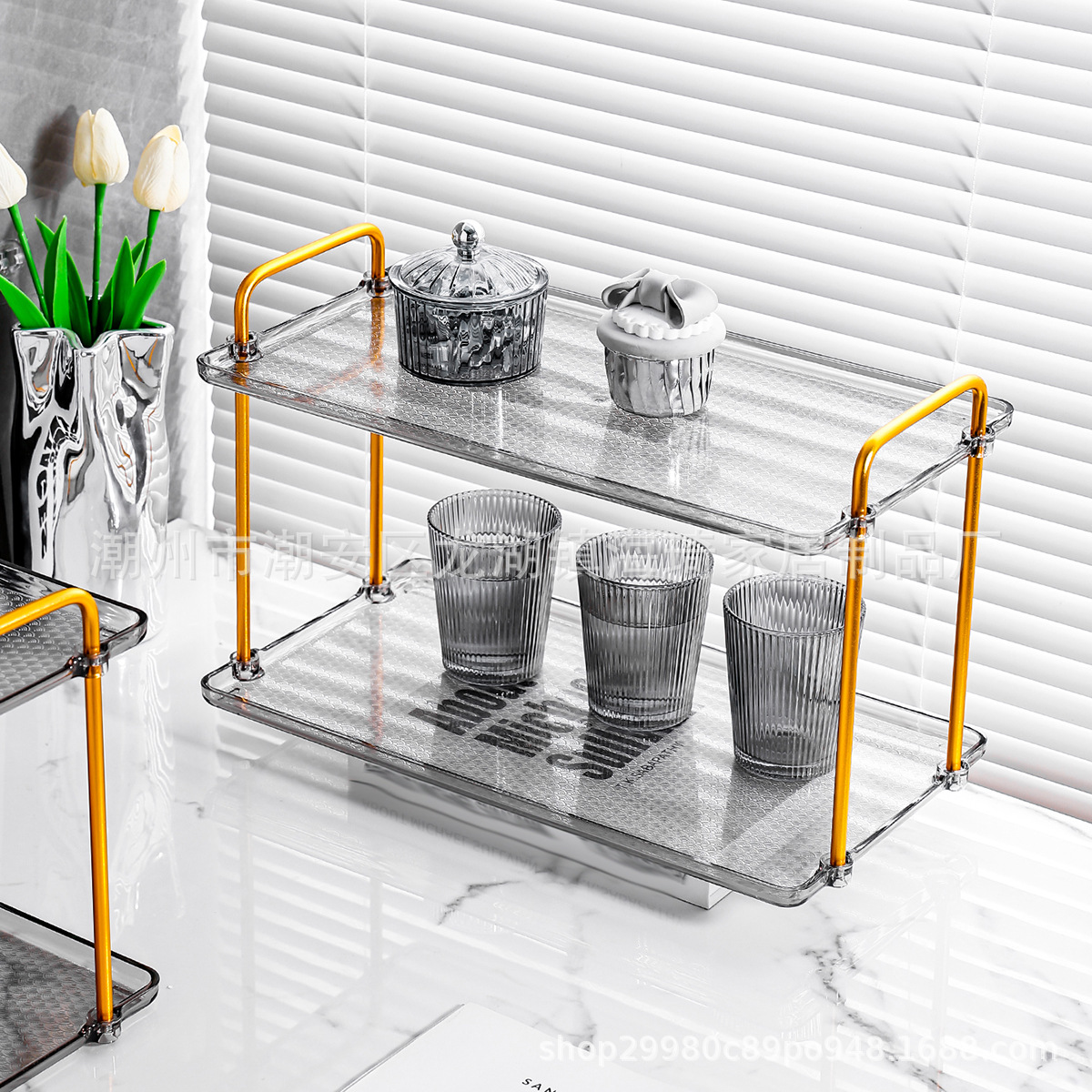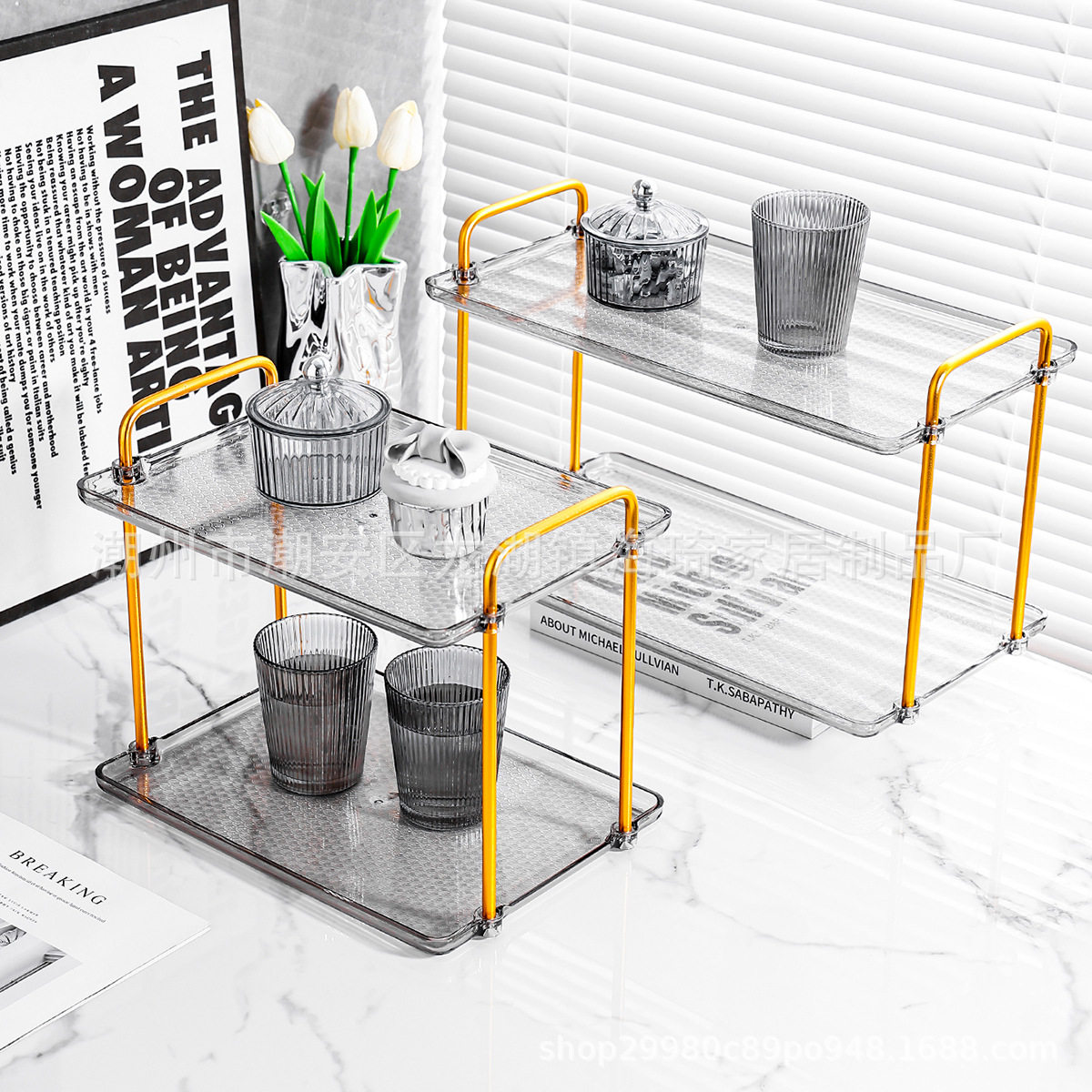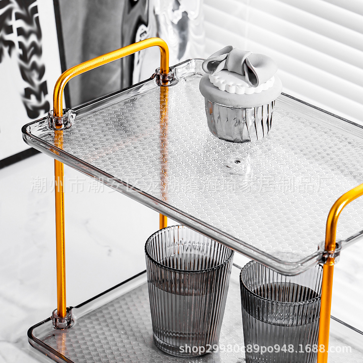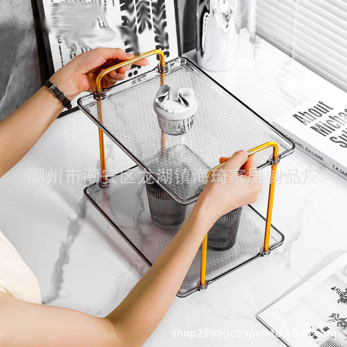 높은 가치의 가벼운 럭셔리 트레이 가정용 거실 커피 테이블 차 세트 컵 티 트레이 직사각형 더블 레이어 과일 저장 트레이스토어 가기