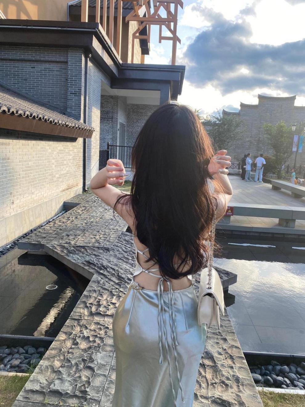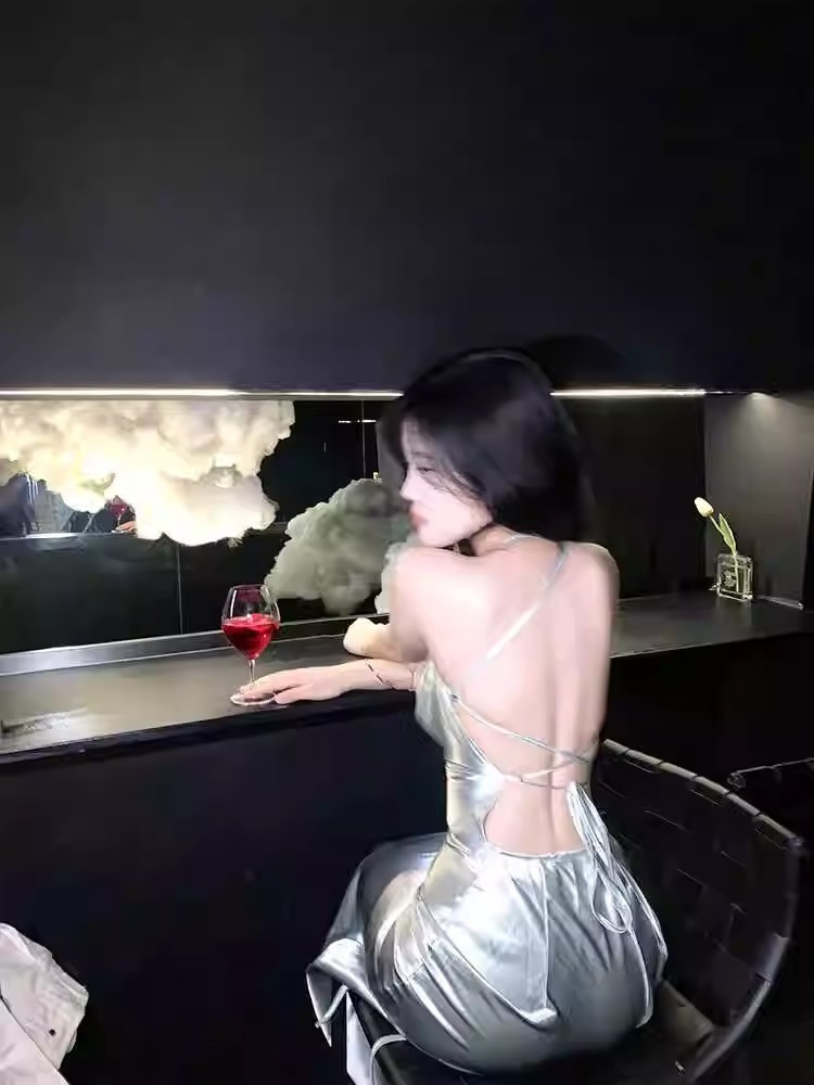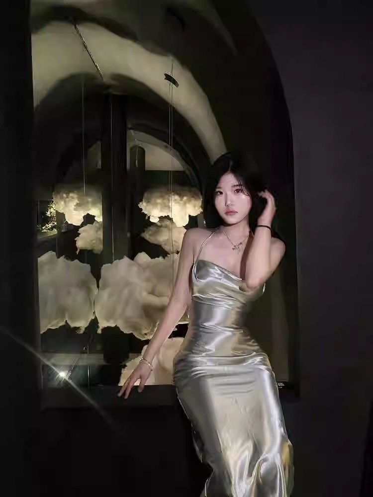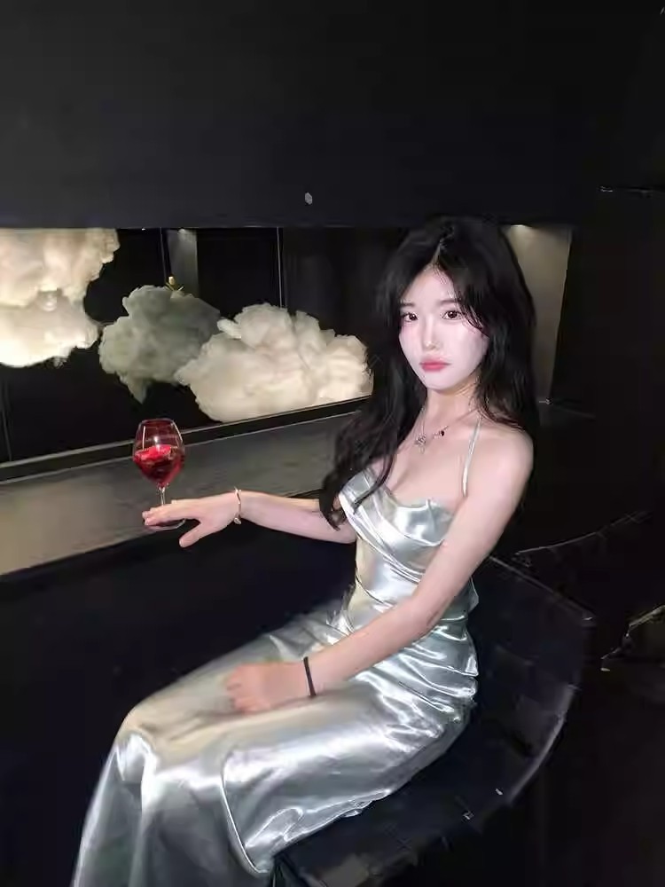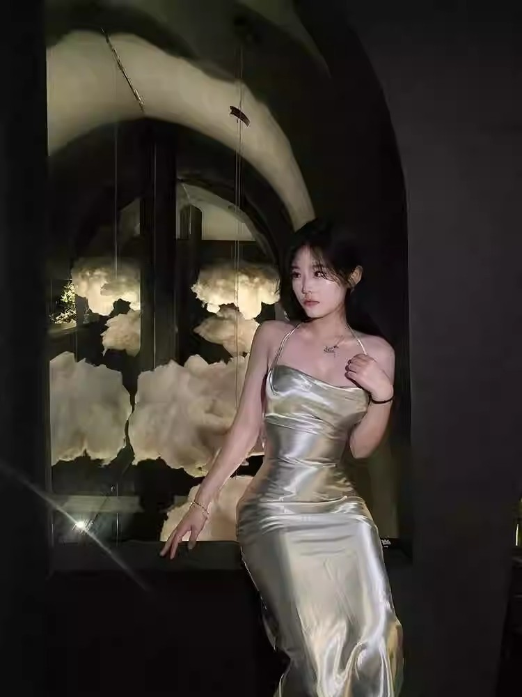 프랑스 스타일 로얄 자매 스타일 민트 그린 우아한 슬링 원피스 여성 여름 새로운 백리스 스트랩 허리 슬리밍 긴 원피스스토어 가기