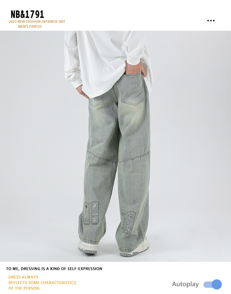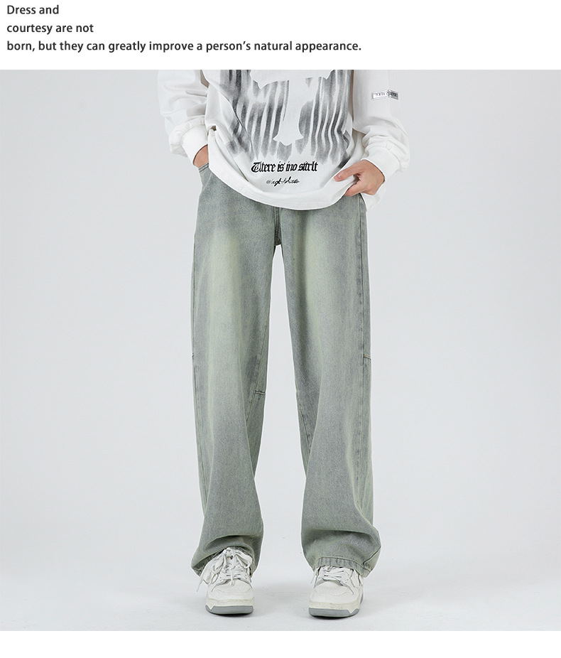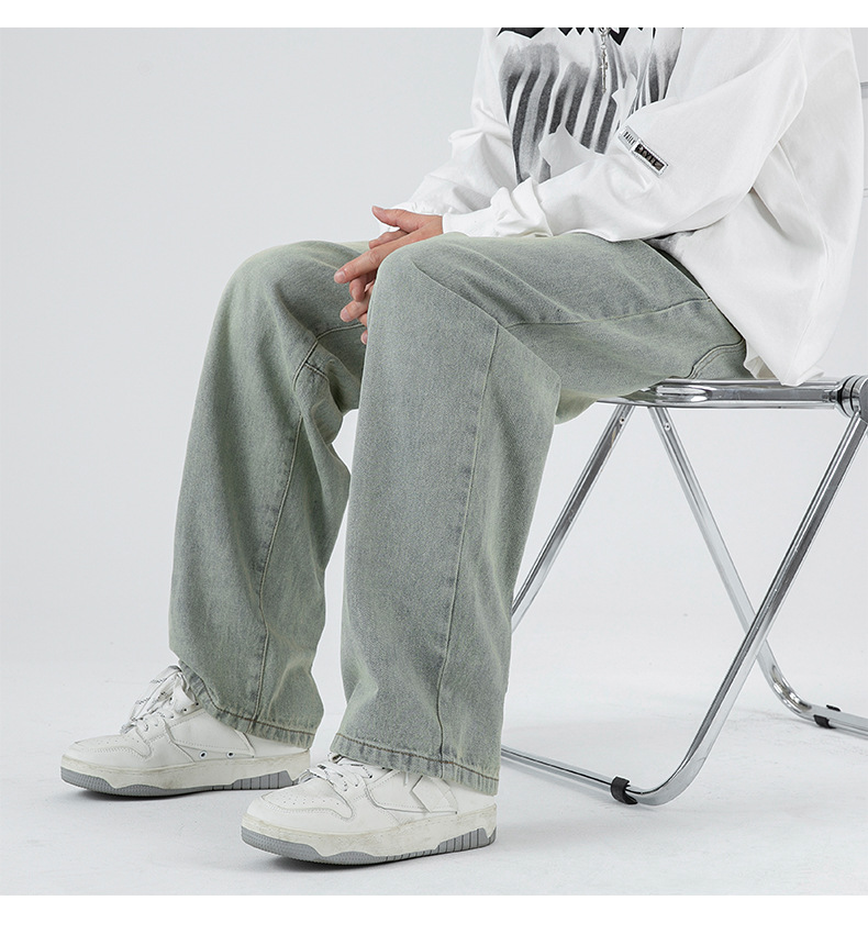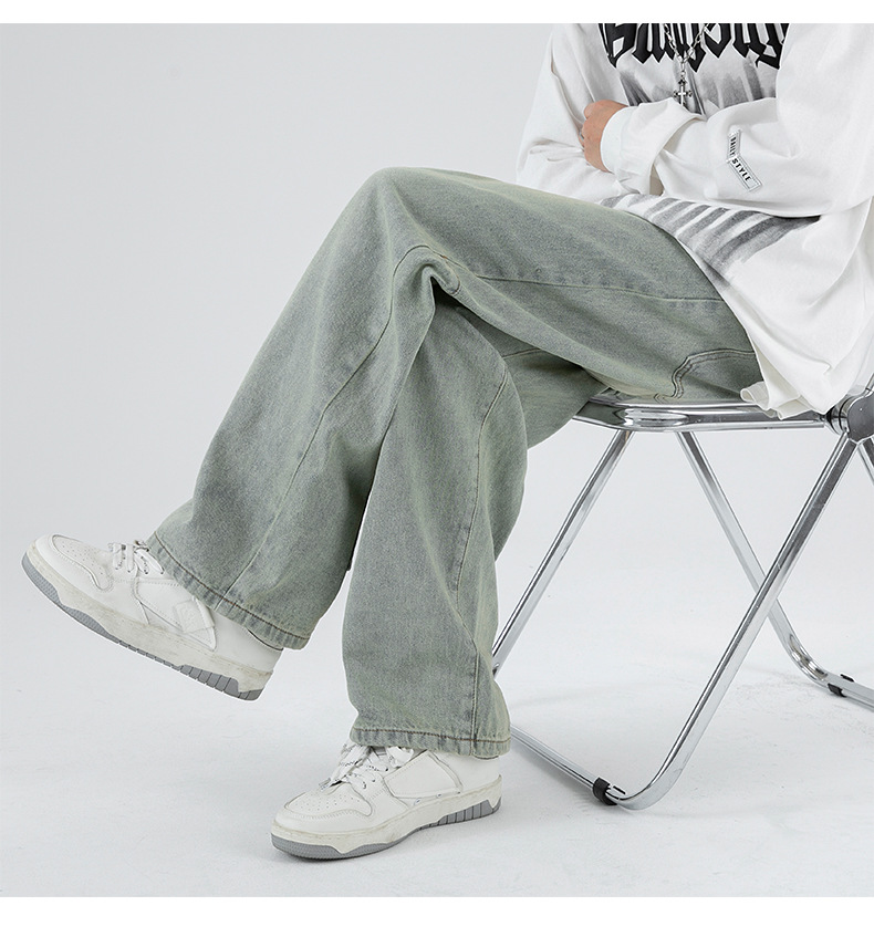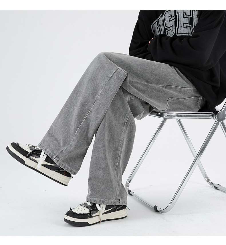 남성용 느슨한 청바지 유행 브랜드 미국 스타일 하이 스트리트 바이브 봄과 가을 넓은 다리 스트레이트 바지스토어 가기