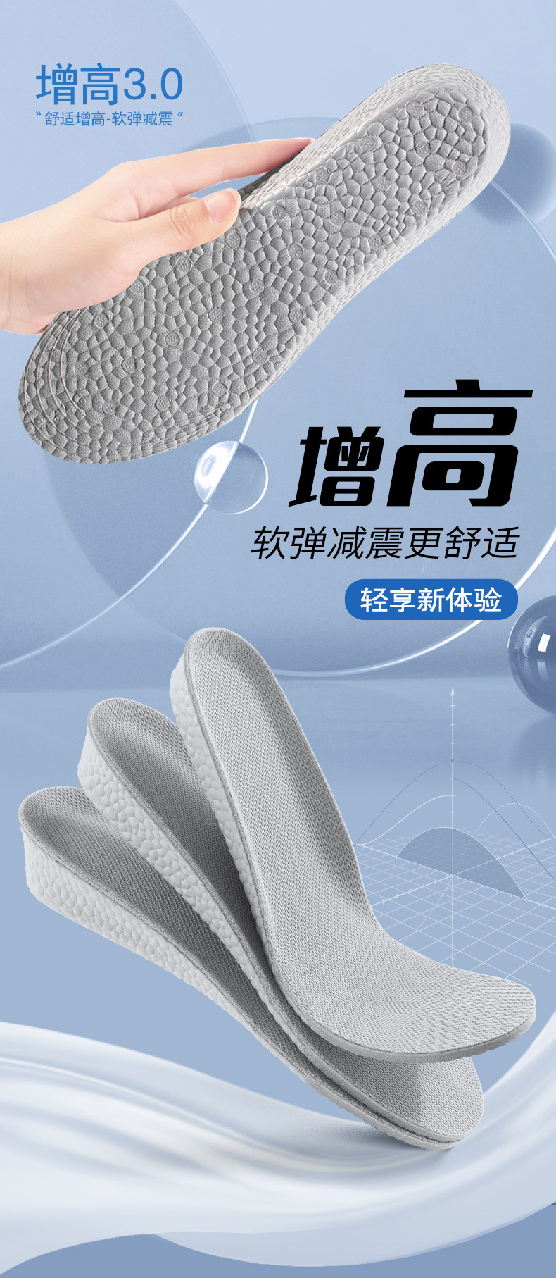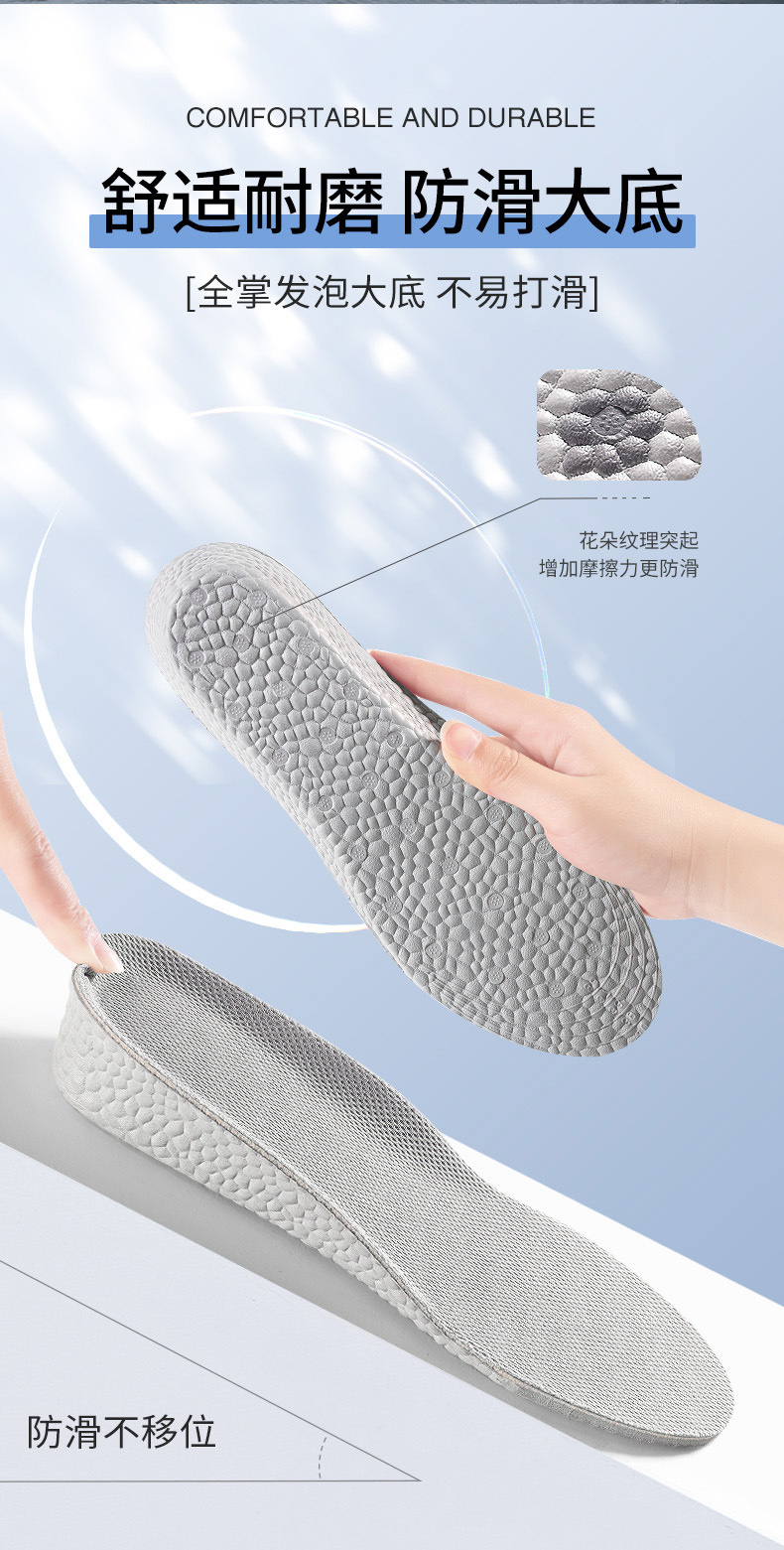땀을 흡수하는 남성과 여성을 위한 스포츠 풀팜 인텐스 키높이 깔창, 가을과 겨울을 위한 aj 통기성 충격 흡수 소프트 솔 보이지 않는 키높이 패드스토어 가기