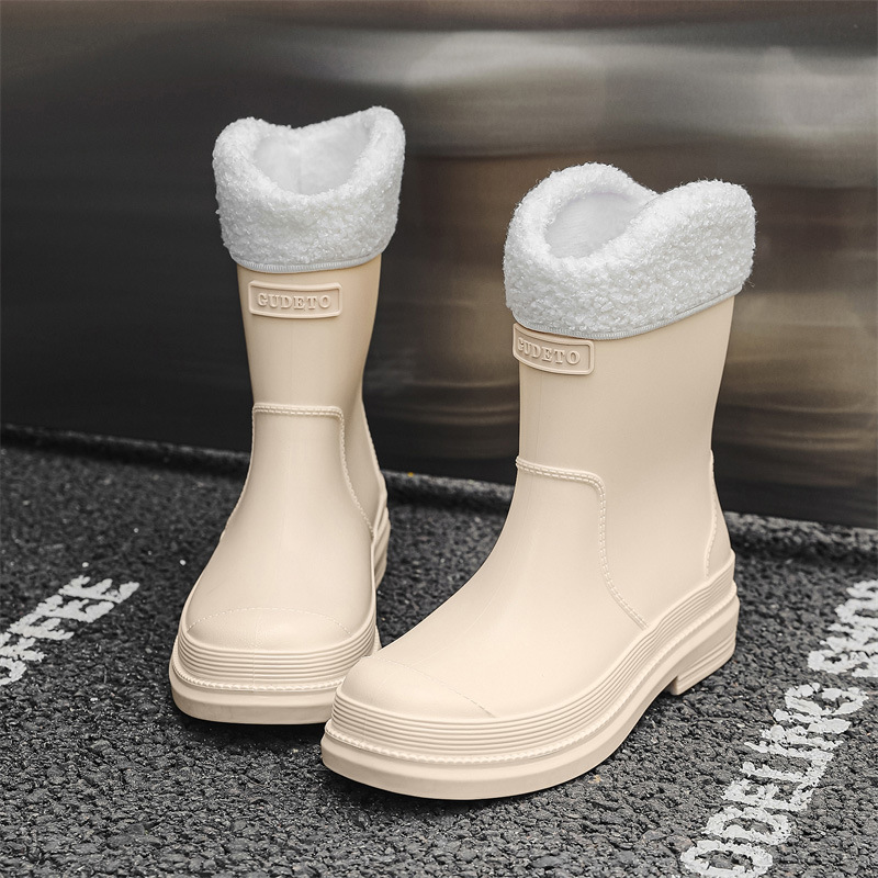 크로스 레벨 2024 한국 패션 장화의 새로운 버전 여성 짧은 튜브 여성용 장화 두꺼운 방수 미끄럼 방지 기모 보호스토어 가기