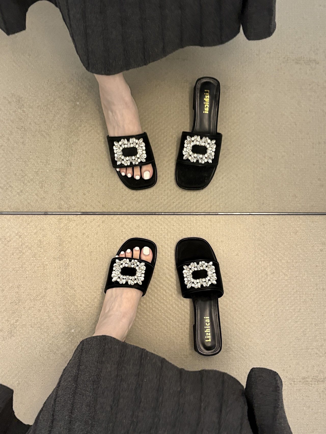 올 매치 샌들 스퀘어 버클 우아한 두꺼운 힐 여름 여성 슬리퍼 여성의 아름다운 라인스톤 슬리퍼 오픈 발가락 샌들