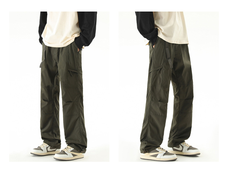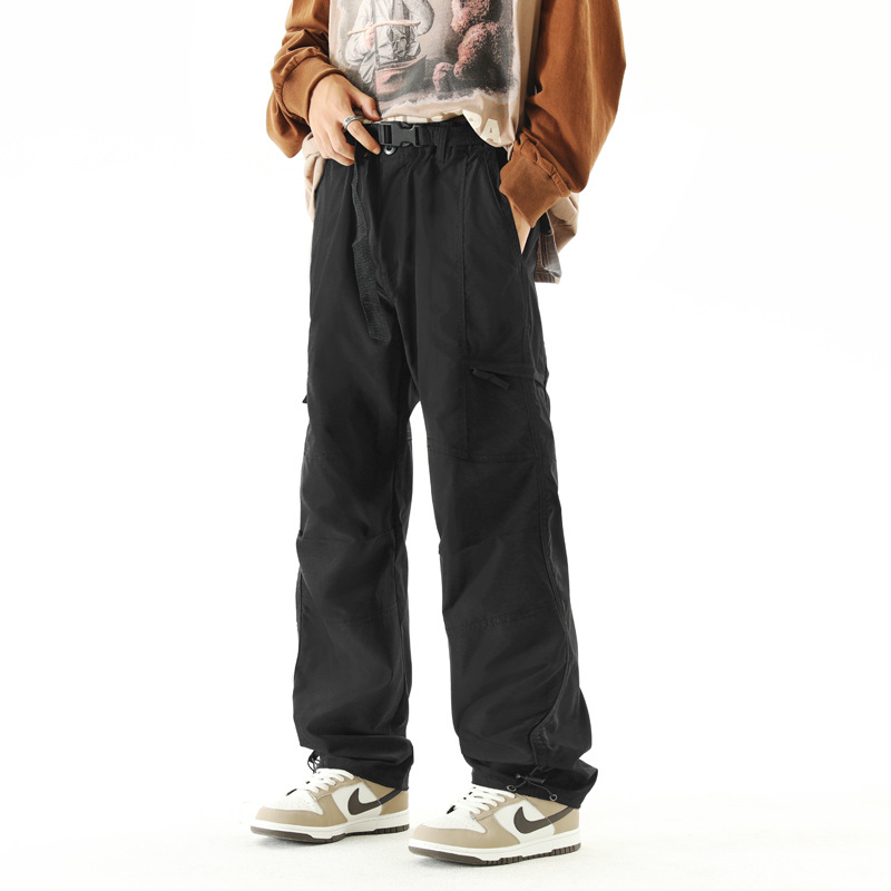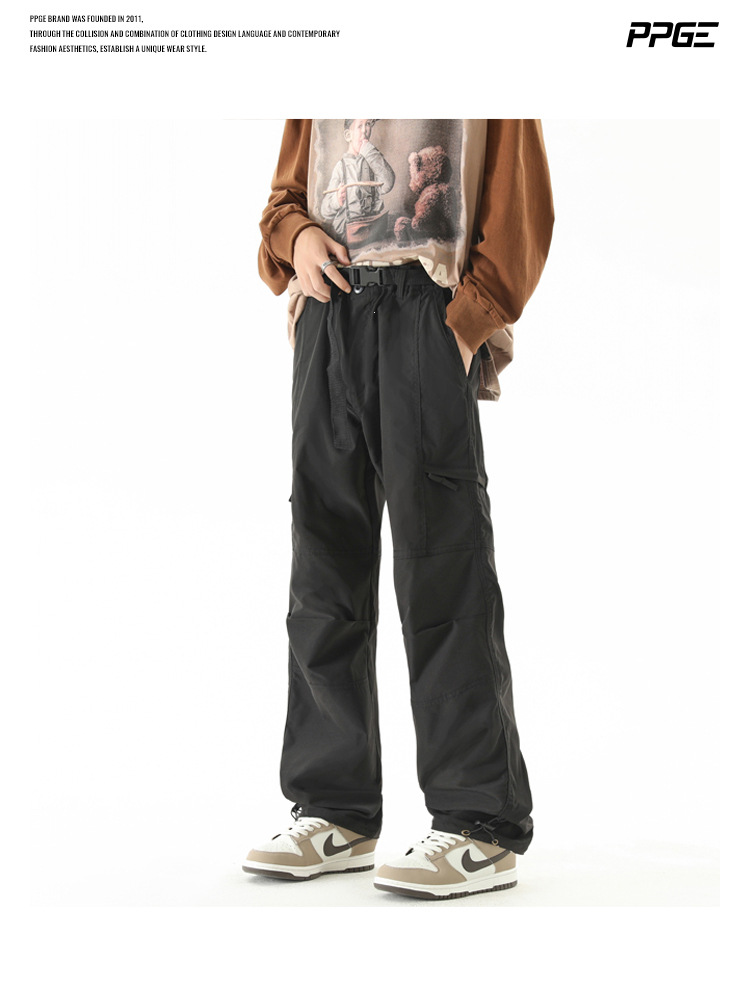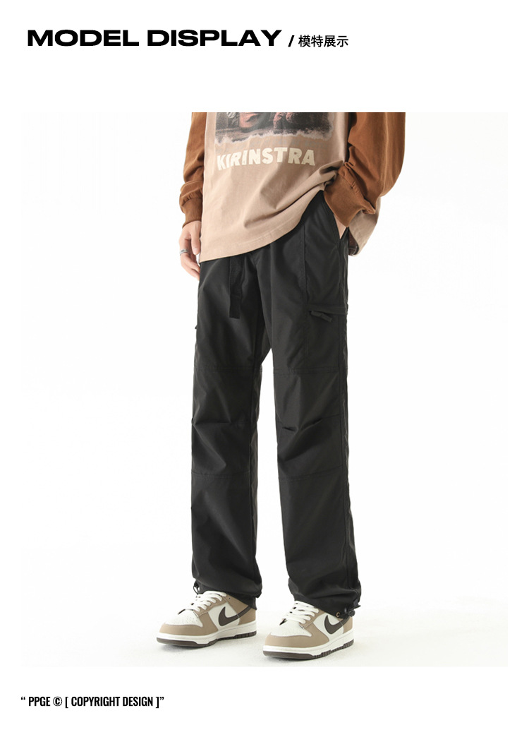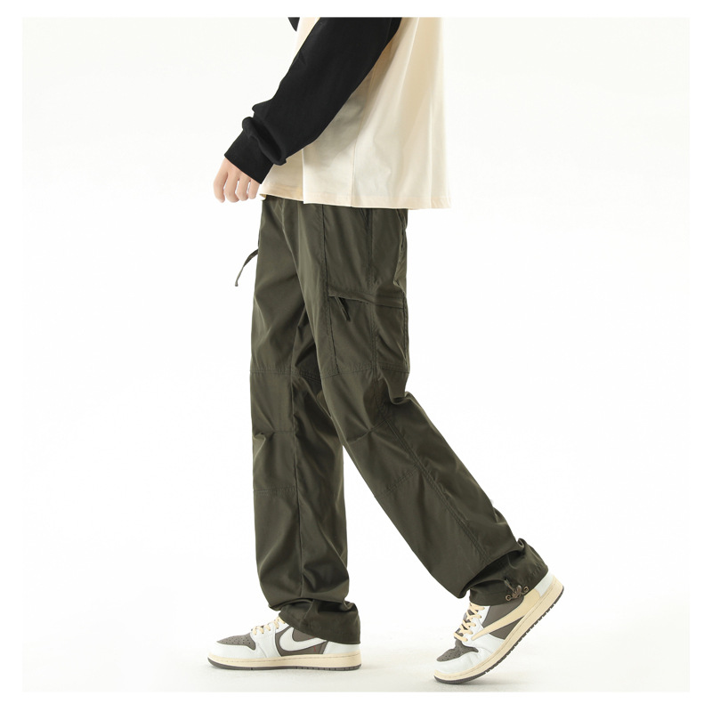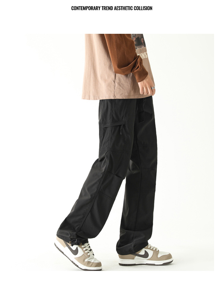 NASA 등산 바지 남자 봄 가을과 겨울 기모 미국식 크록 바지 유행 브랜드 스트레이트 낙하산 캐주얼 긴 바지