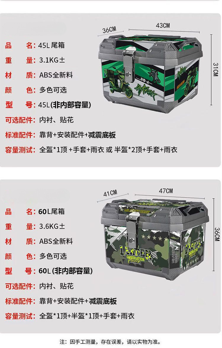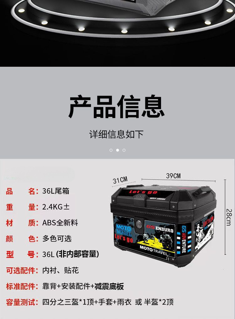 전기 자동차 테일 박스 대용량 트렁크 스쿠터 박스 오토바이 트렁크 대형 유니버설 엑스트라 대형 테일 박스스토어 가기