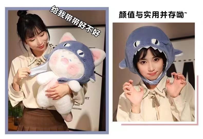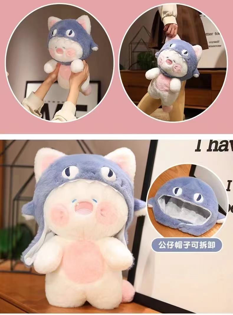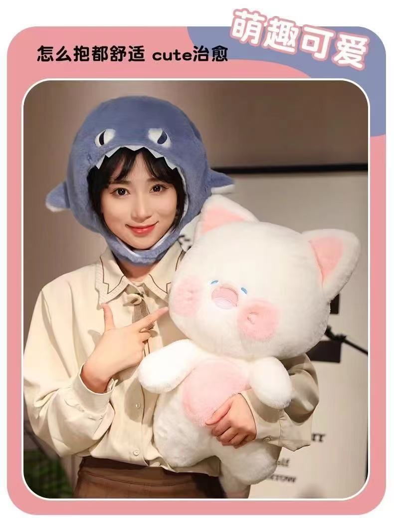 귀여운 상어 플러시 장난감 인형 고양이 투투 침대 인형 상어 고양이 기숙사 소녀를위한 생일 선물스토어 가기