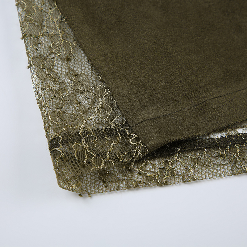 사랑의 옷감은 오즈 빈티지 그린 레이스 바느질 낮은 허리 스커트 지퍼 A-라인 스커트의 마법사를 잊어 버립니다.