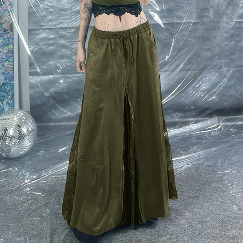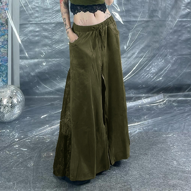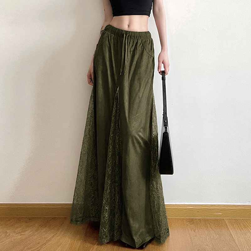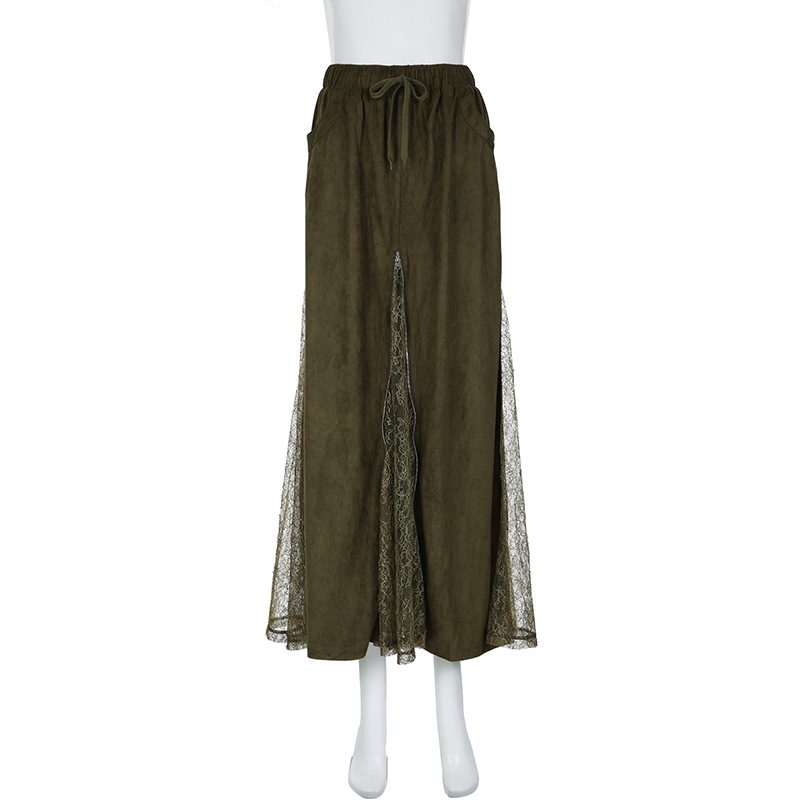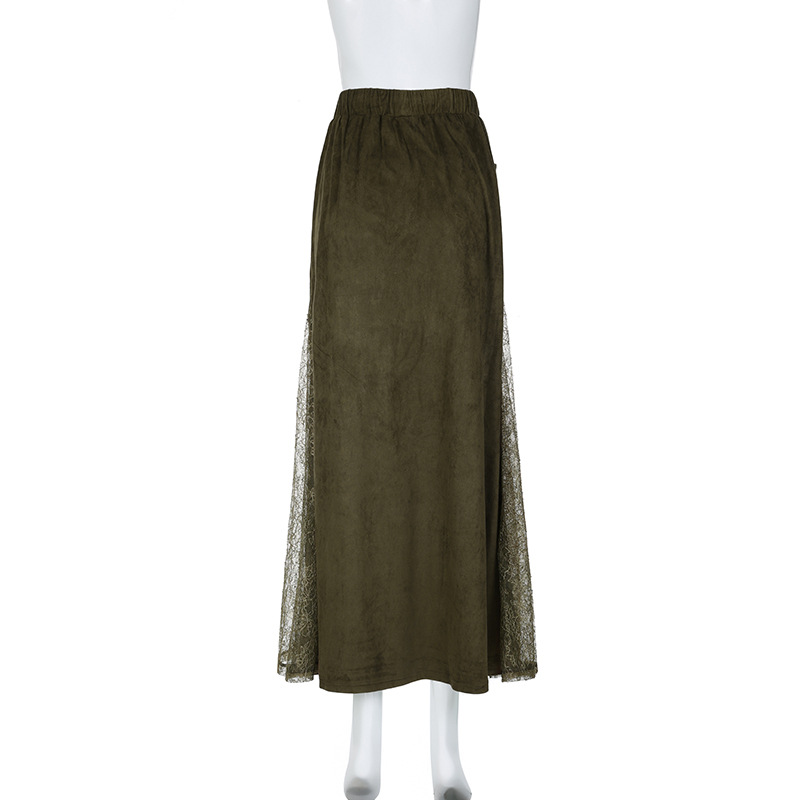 사랑의 옷감은 오즈 빈티지 그린 레이스 바느질 낮은 허리 스커트 지퍼 A-라인 스커트의 마법사를 잊어 버립니다.스토어 가기