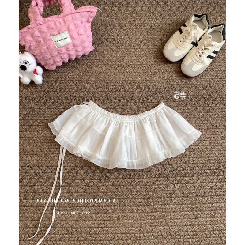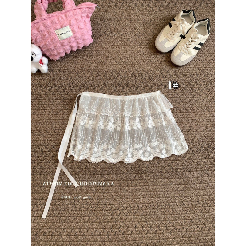 봄과 여름 2025 새로운 발레 스타일 레이스 방귀 원피스 레이스 레이스 레이스 작은 방귀 커튼 여성용 분위기 원피스 짧은 커튼
