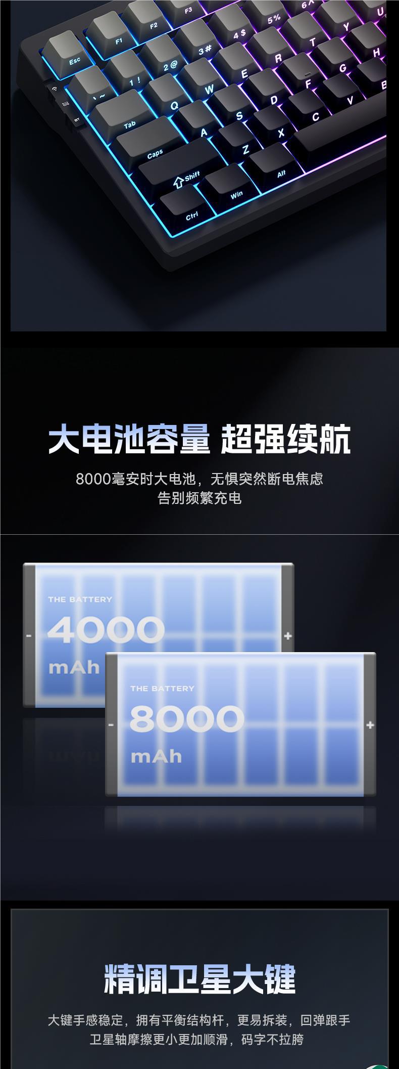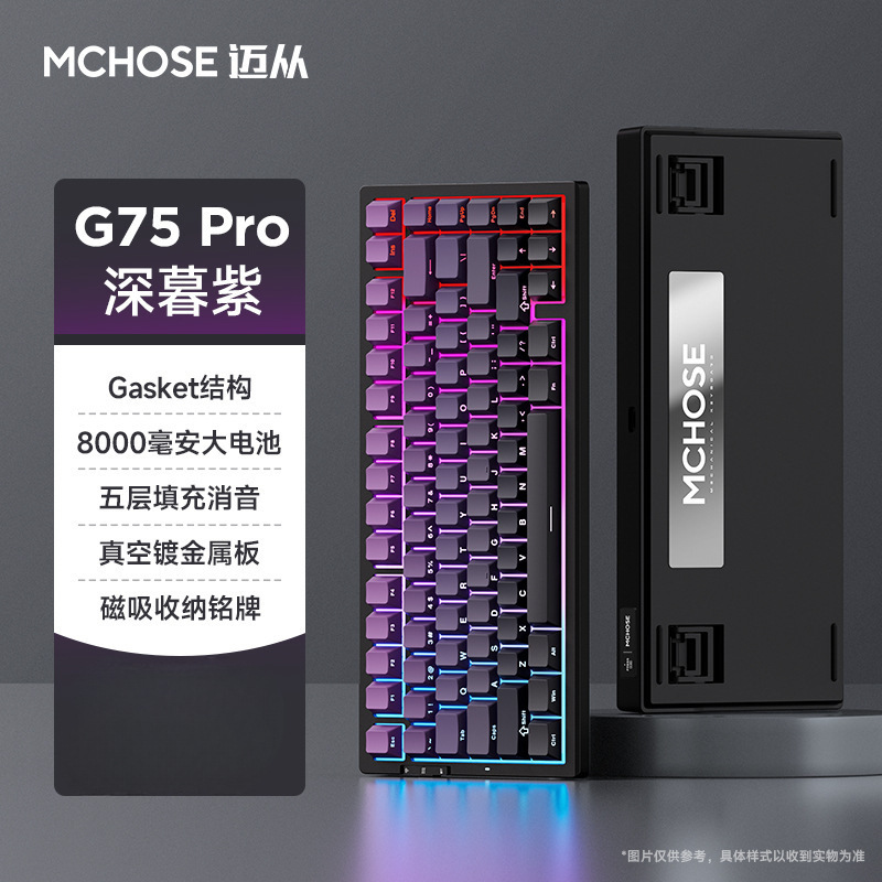 MCHOSE G75 Pro 맞춤형 3 모드 기계 키보드 무선 블루투스 게임 전자 스포츠 측면 새겨진 키 캡