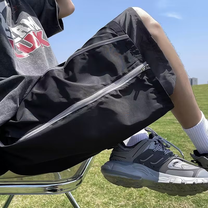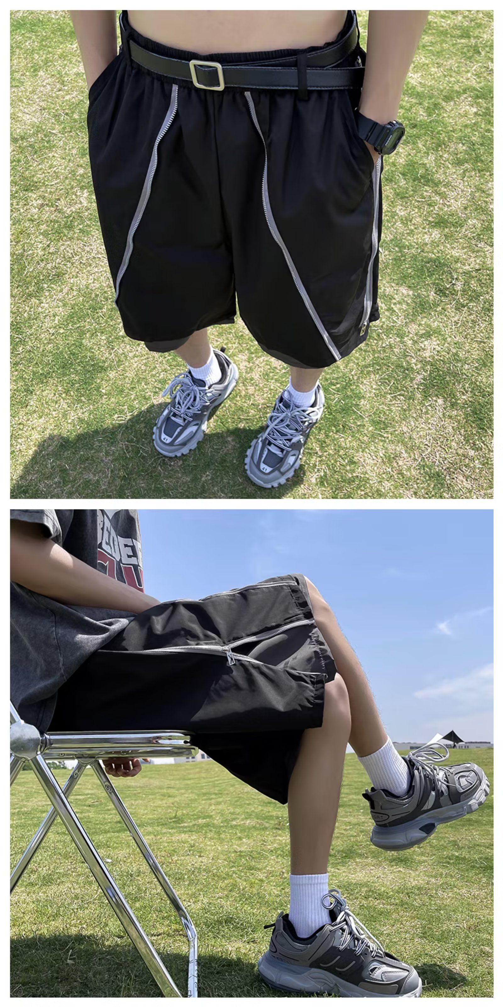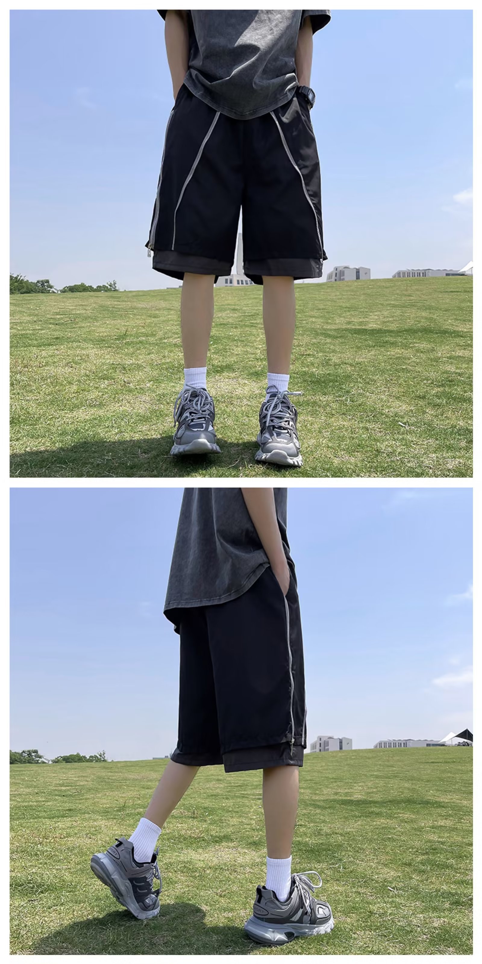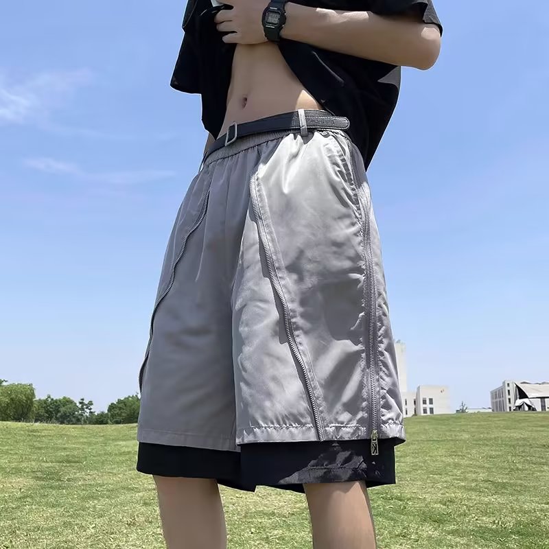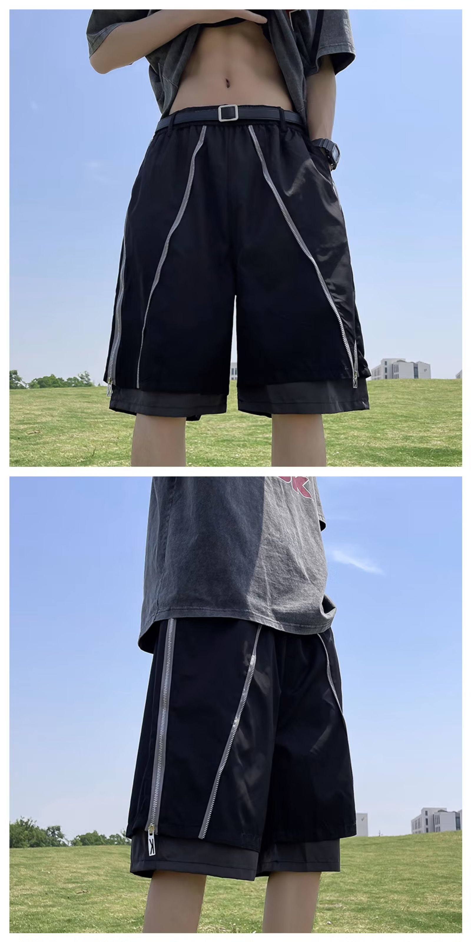 아메리칸 스타일 기능성 반바지 남성 여름 디자인 페이크 투피스 지퍼 자켓 루즈한 대형 캐주얼 5부 팬츠