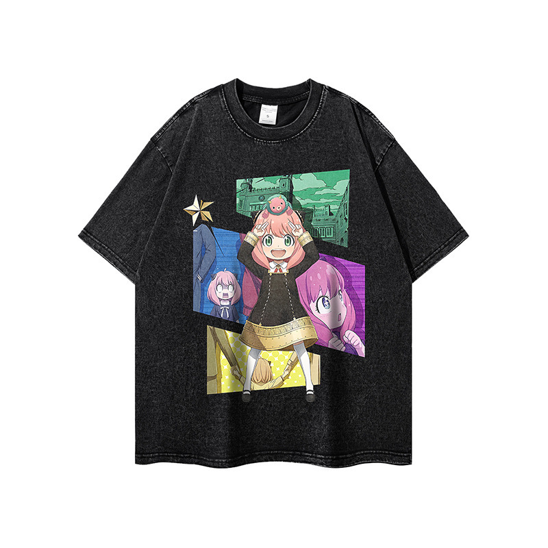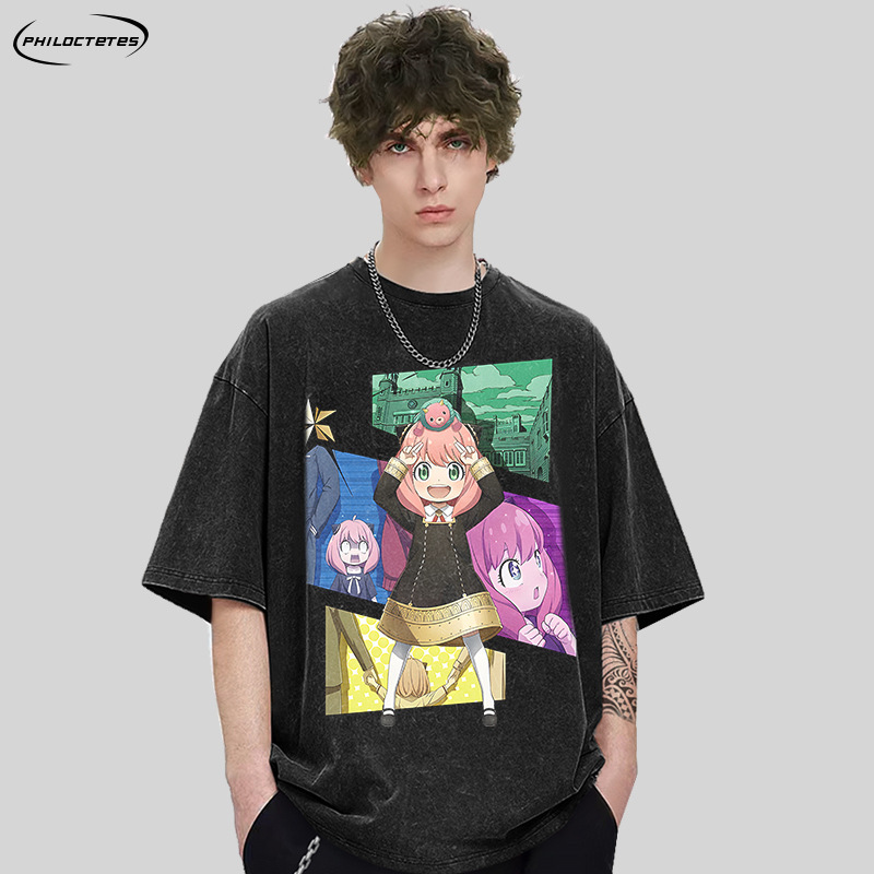 미국 거리 만화 인쇄 오버 사이즈 헤비 트러스트 워시 워터 반팔 티셔츠 남성과 여성의 전국 패션 분위기 스타일 절반