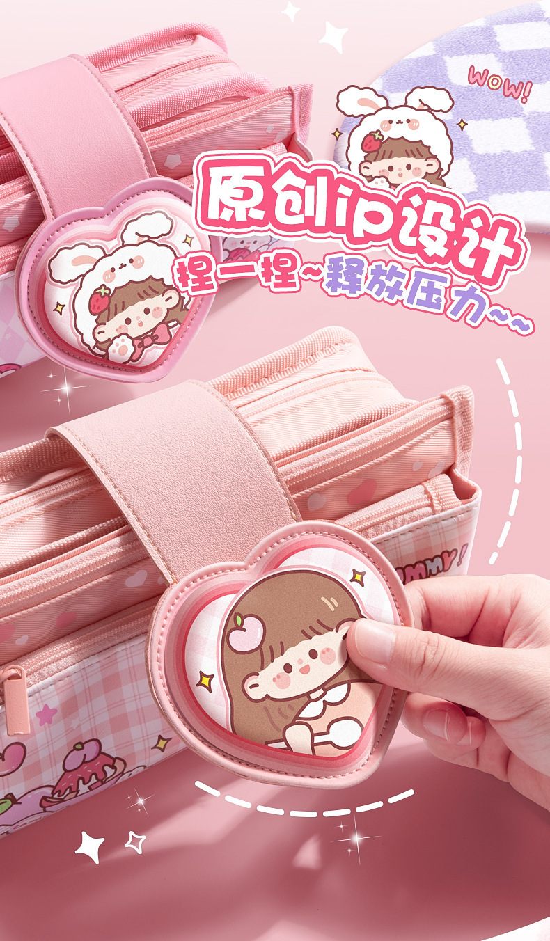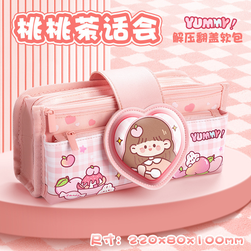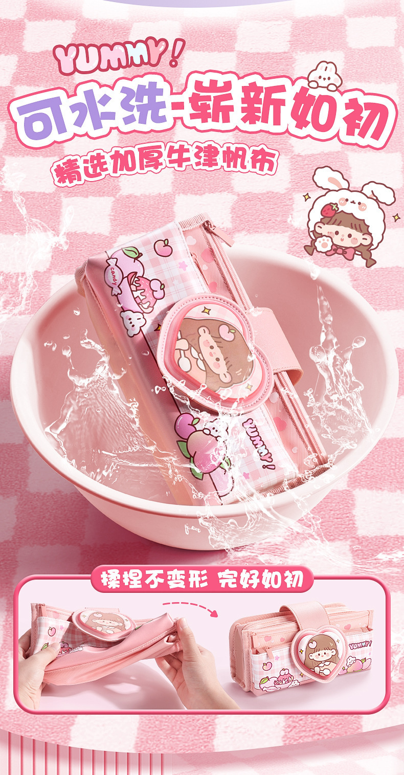 여자 초등학생을위한 카바 베어 대용량 연필 케이스 문구 상자 소녀와 소녀를위한 다층 압축 높은 가치 다기능