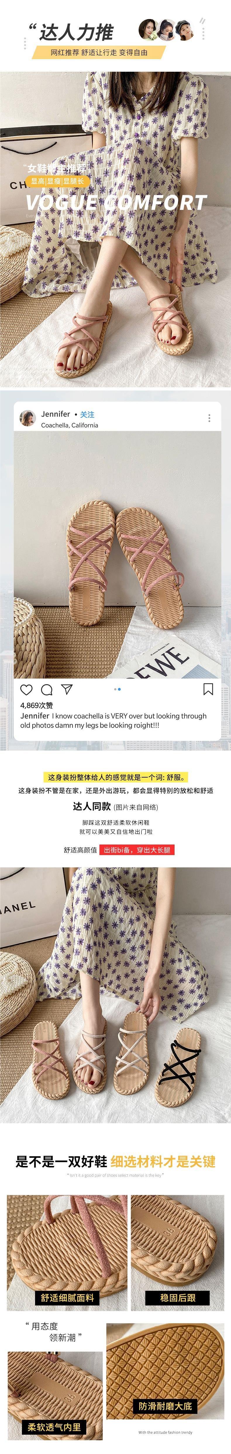 로마 샌들 페어리 스타일 플랫 외부 비치 신발 해변 2025 여름 새로운 올 매치 슬리퍼