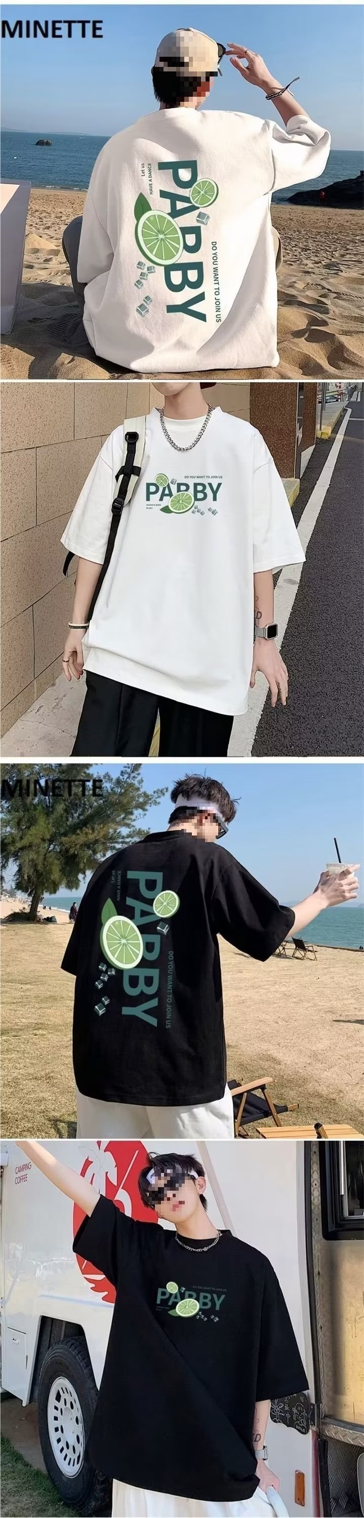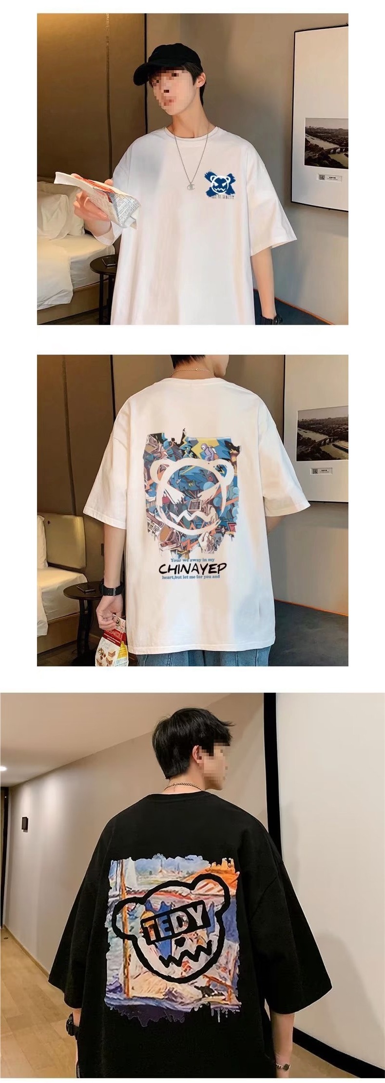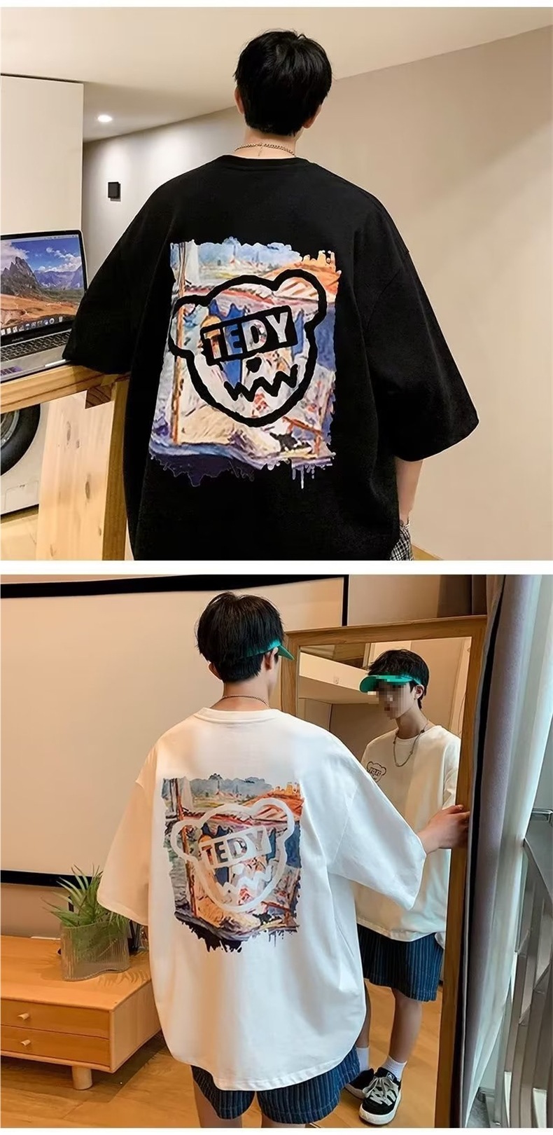 남자 플러스 사이즈 반팔 티셔츠 여름 새로운 미국 스타일 하이 스트리트 십대 패션 브랜드 캐주얼 루즈 라운드 넥 탑스토어 가기