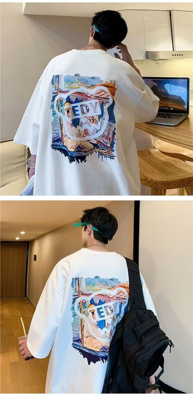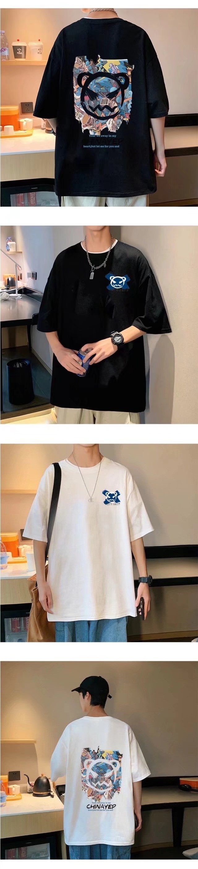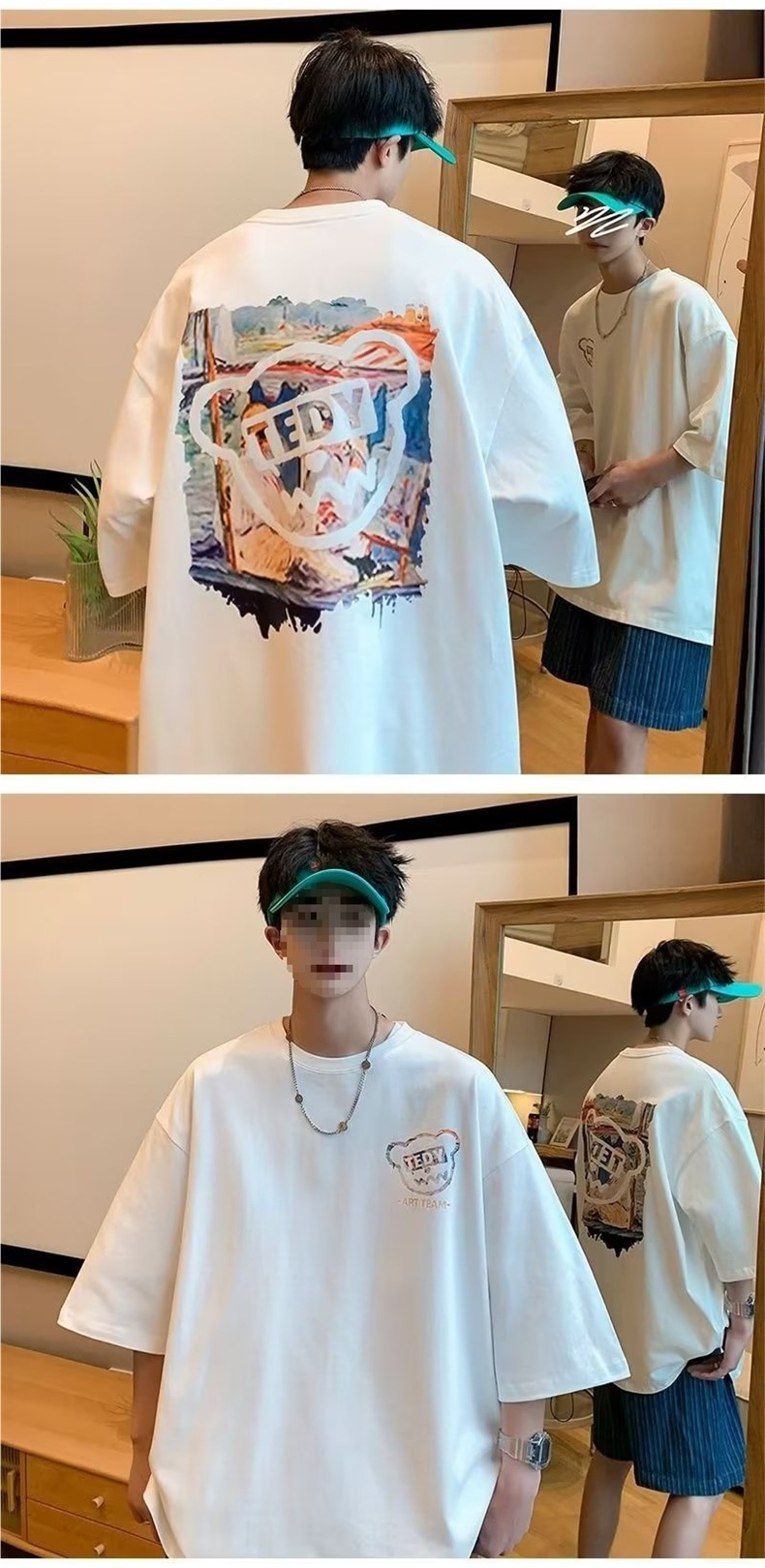 남자 플러스 사이즈 반팔 티셔츠 여름 새로운 미국 스타일 하이 스트리트 십대 패션 브랜드 캐주얼 루즈 라운드 넥 탑스토어 가기