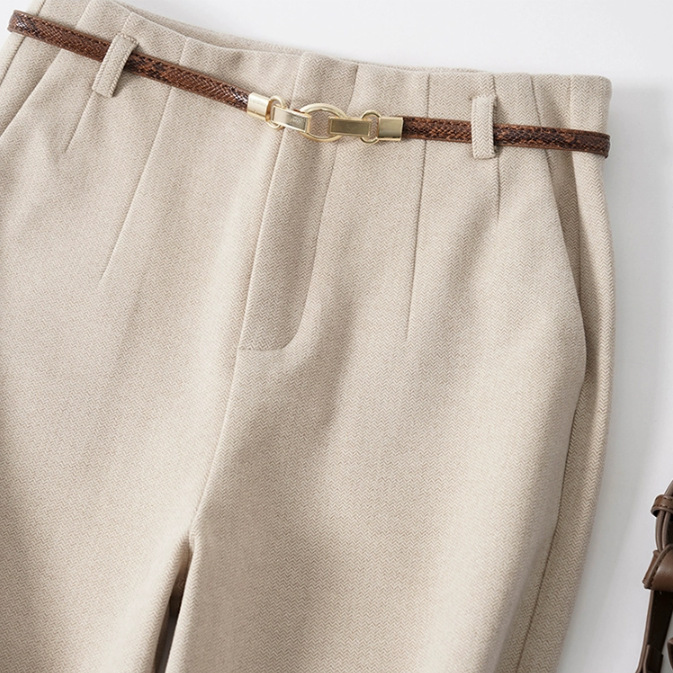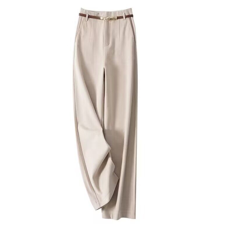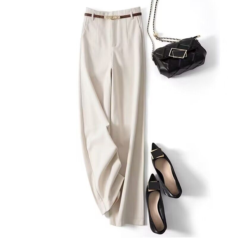 配腰带气质通勤亲肤新款高腰宽松阔腿裤女慵懒直筒裤毛呢休闲长裤