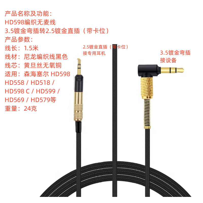 HD598/599 / HD558 / HD518 / HD599 / HD569 / HD579 헤드폰 케이블에 적합