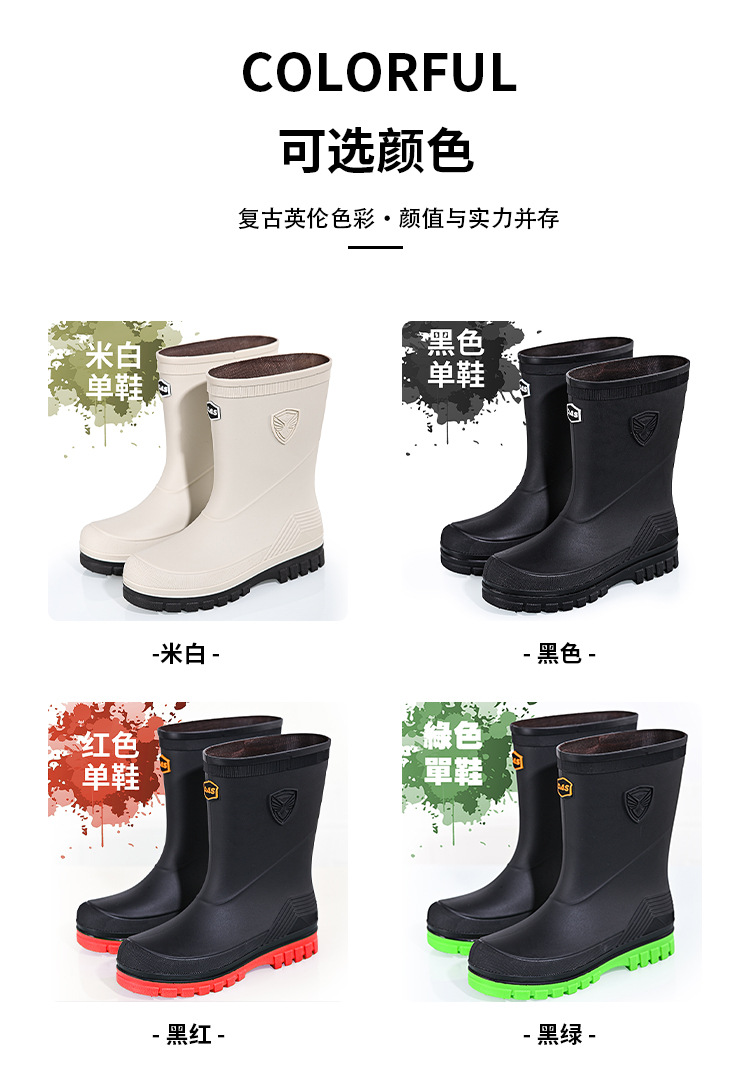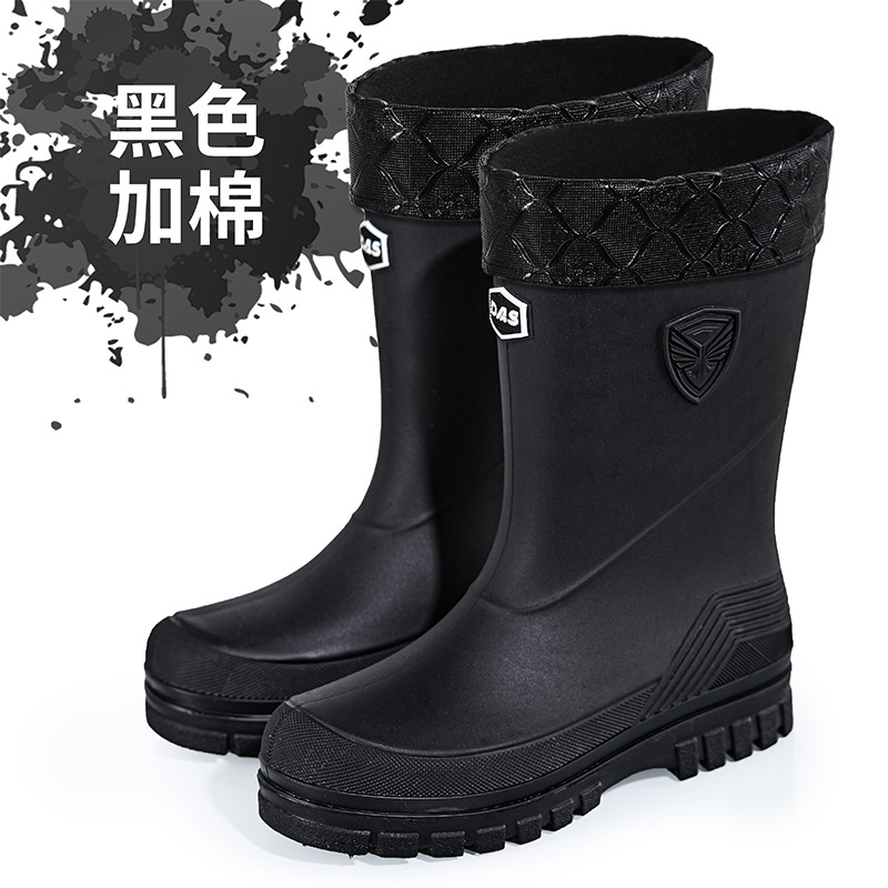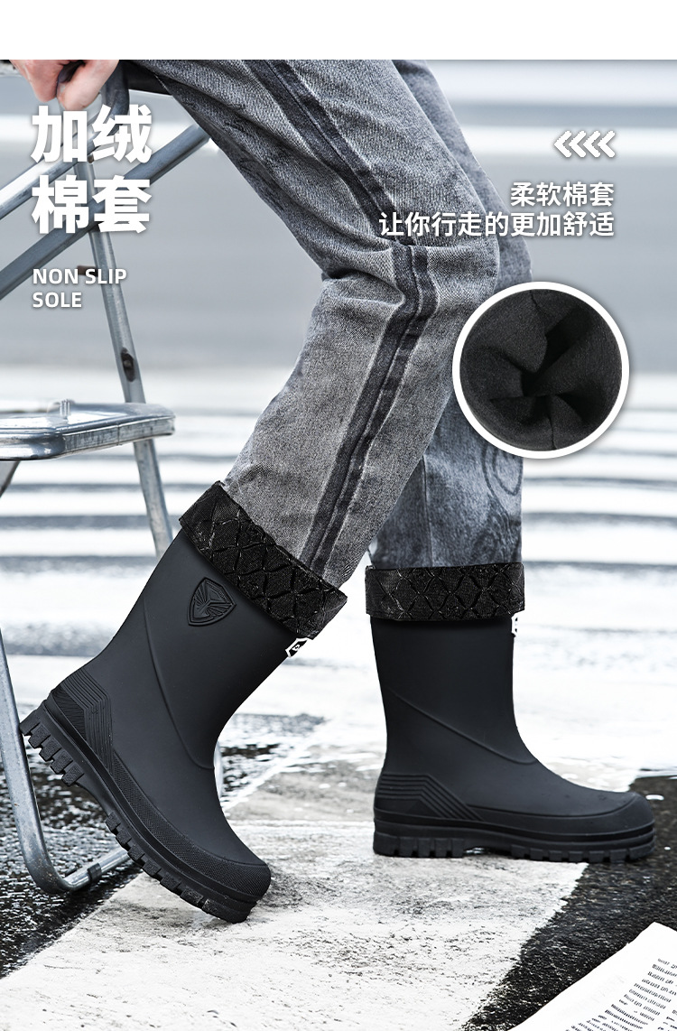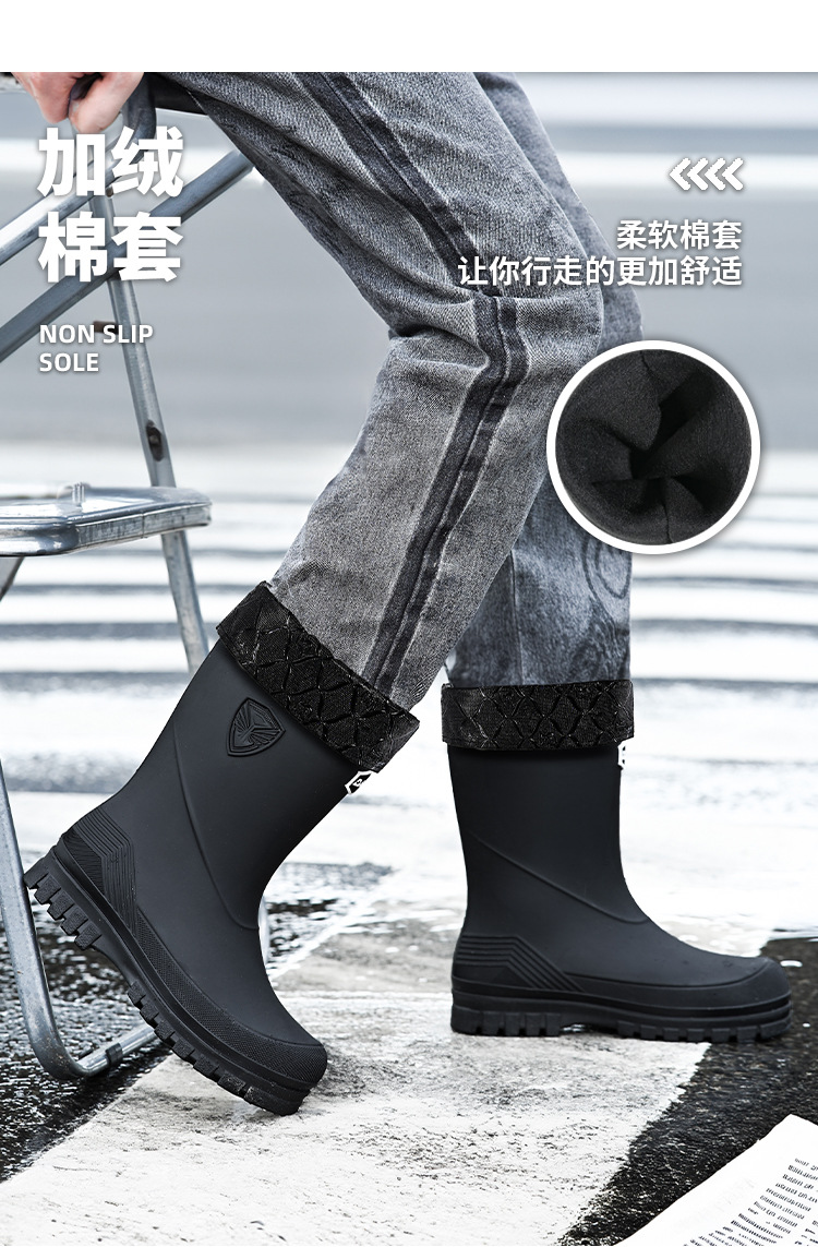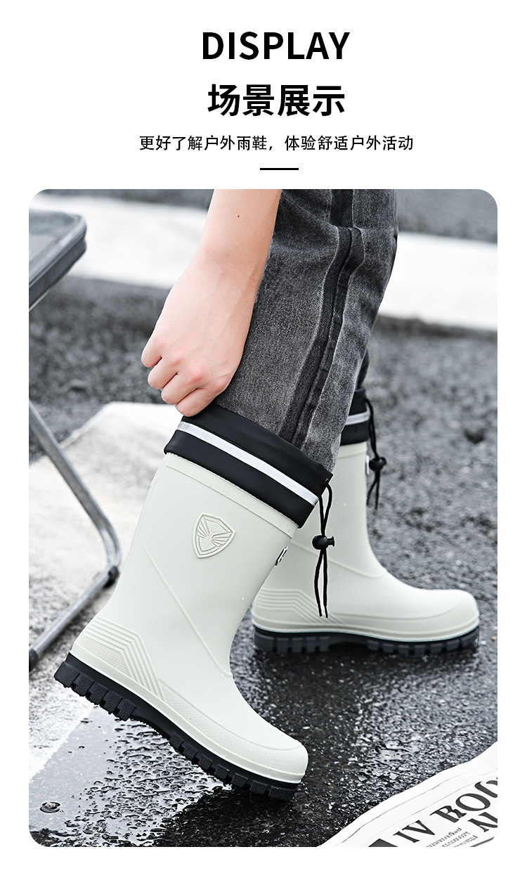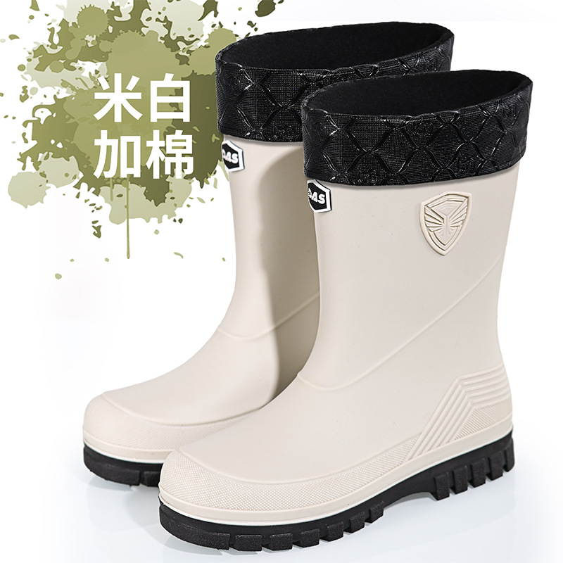 새로운 레인 부츠 중간 배럴 남성 성인 여성용 방수 부츠 장화 비 슬립 방지 고무 신발 기모 패션 주방 워터 부츠스토어 가기