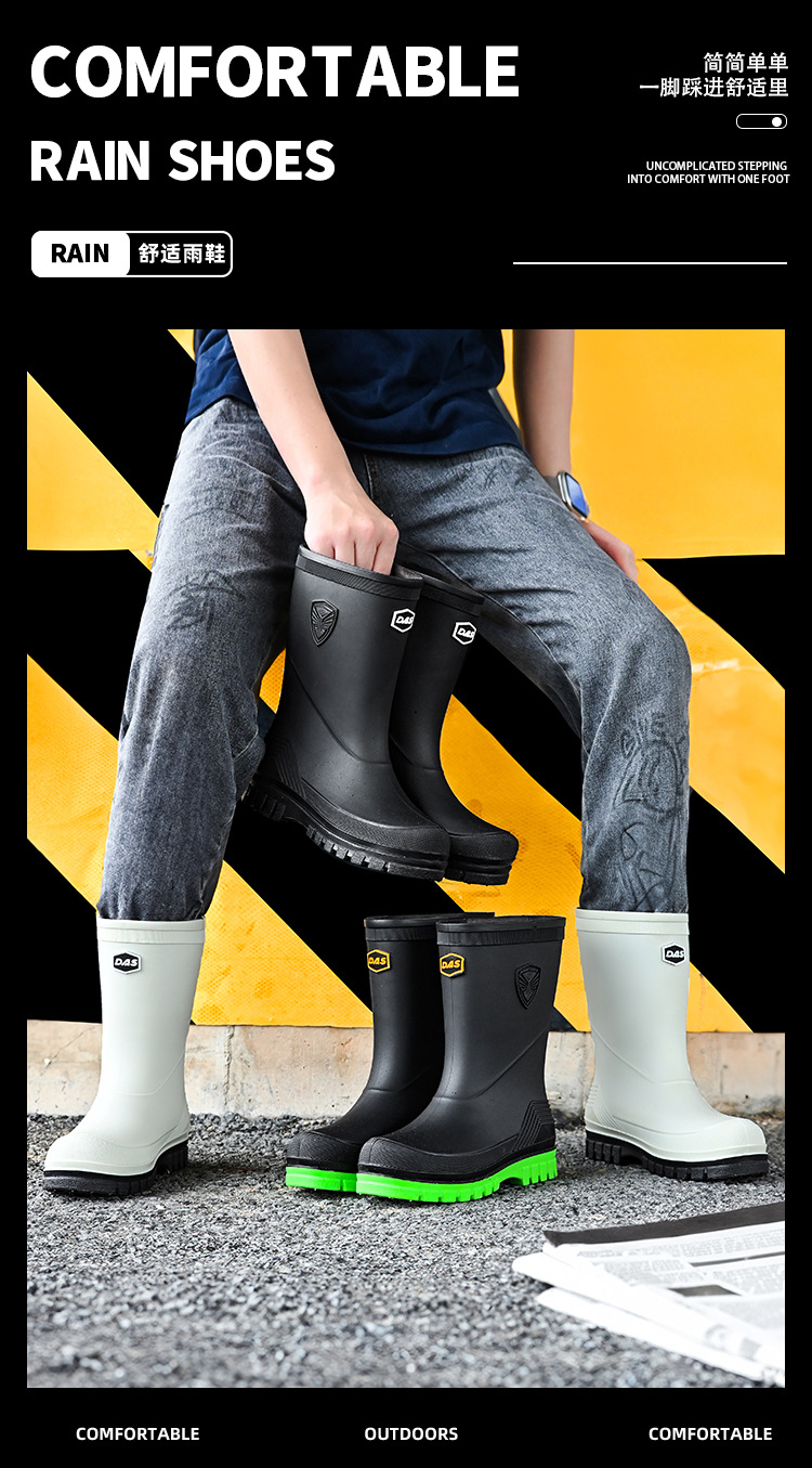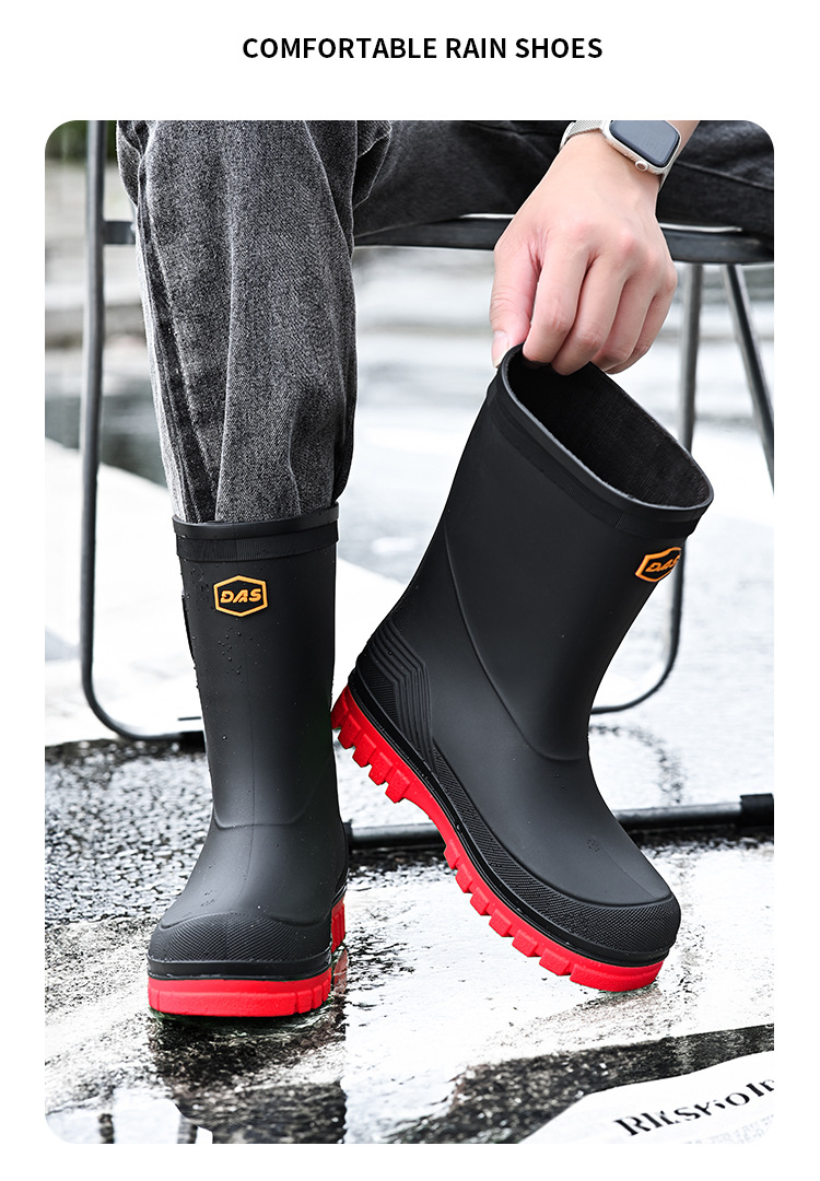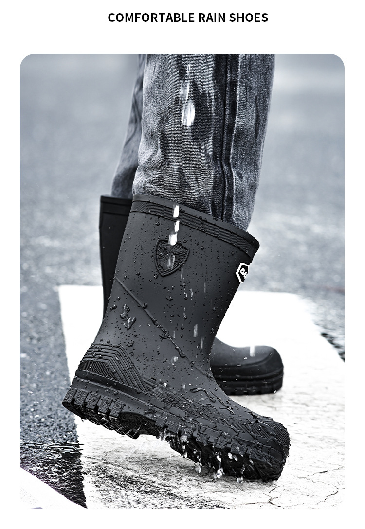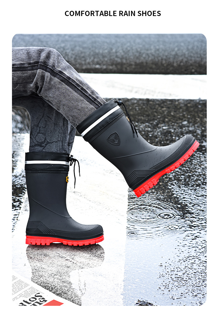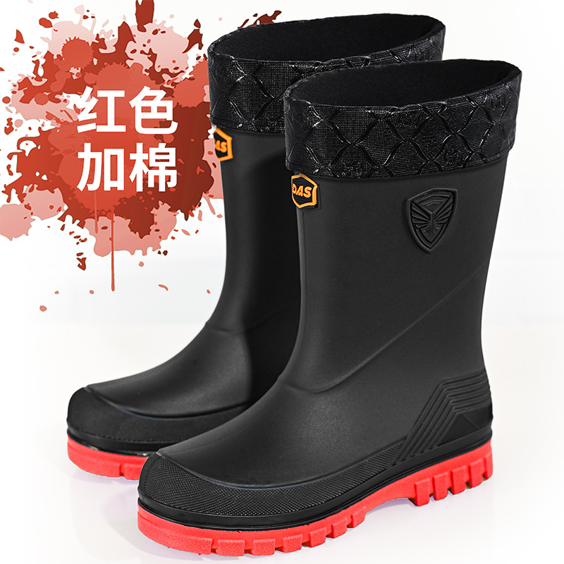 새로운 레인 부츠 중간 배럴 남성 성인 여성용 방수 부츠 장화 비 슬립 방지 고무 신발 기모 패션 주방 워터 부츠스토어 가기