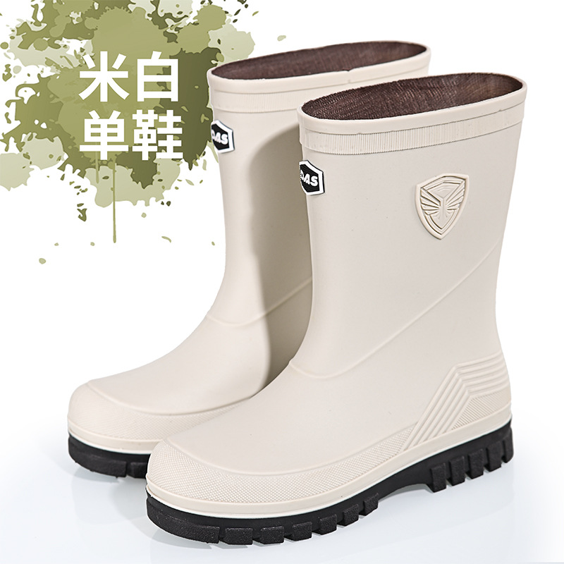 새로운 레인 부츠 중간 배럴 남성 성인 여성용 방수 부츠 장화 비 슬립 방지 고무 신발 기모 패션 주방 워터 부츠