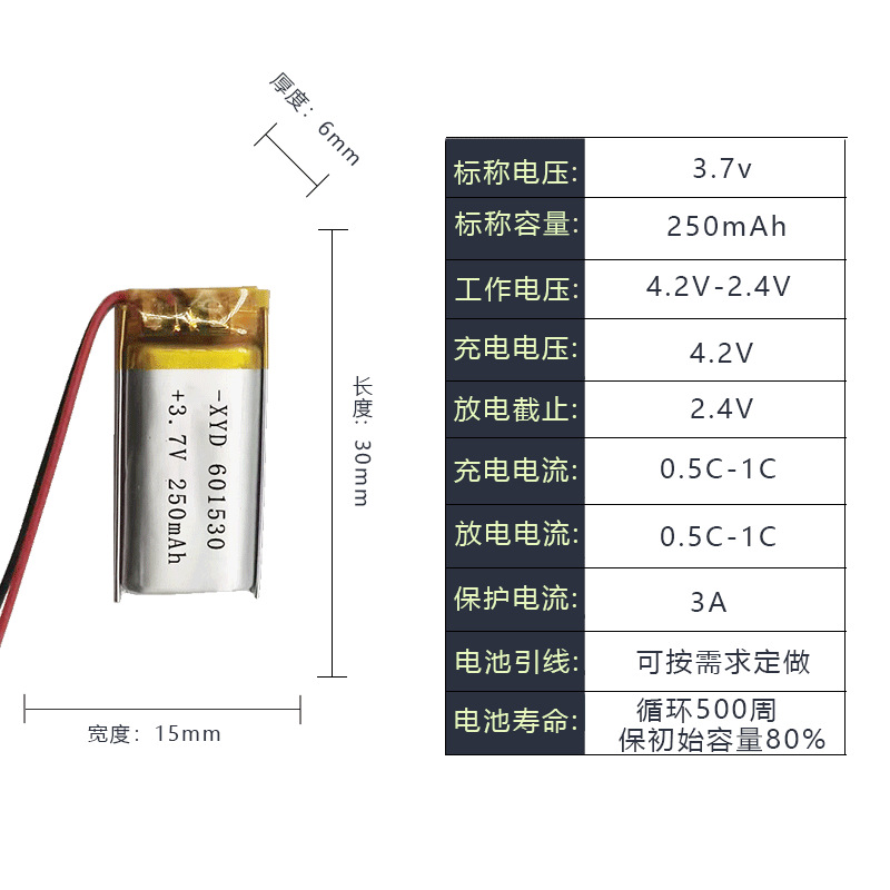 리튬 배터리 601530 폴리머 리튬 배터리 250mAh 블루투스 헤드셋 충전식 배터리 3.7V 공장스토어 가기