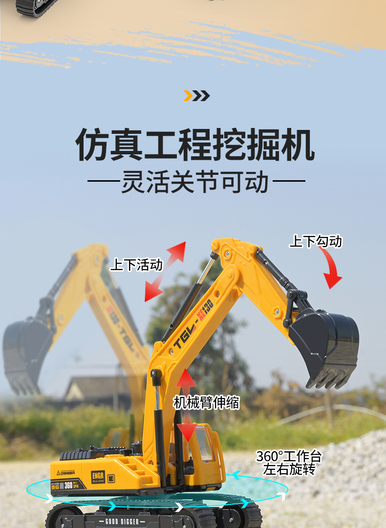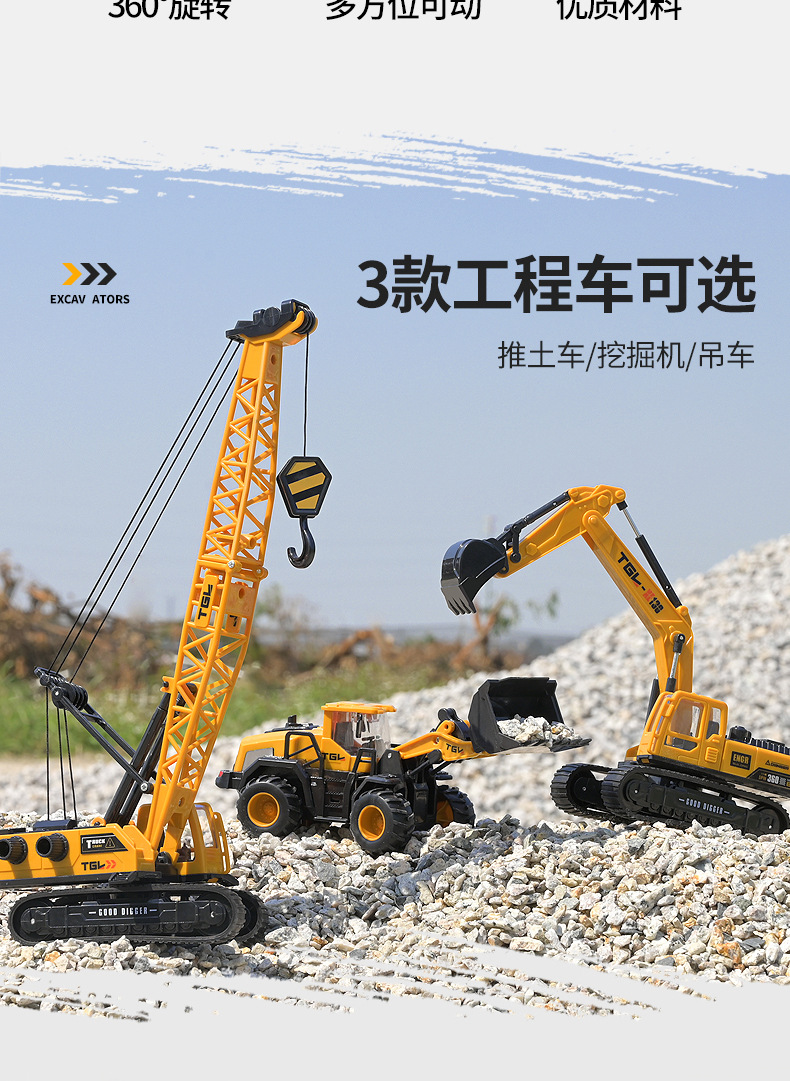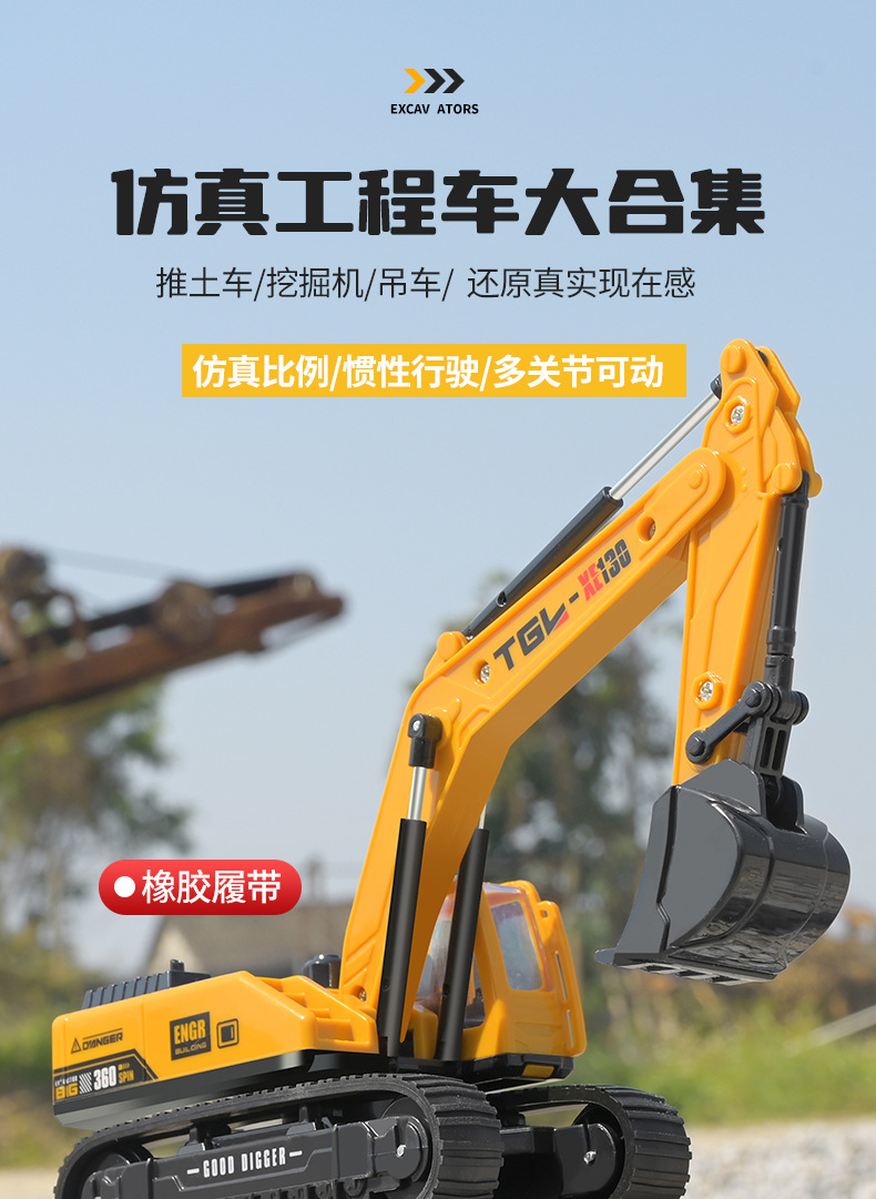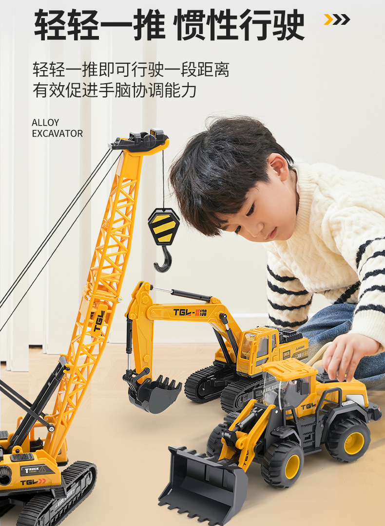 국경 간 폭발 어린이 엔지니어링 자동차 굴삭기 장난감 자동차 소년 자동차 크레인 아기 푸시 굴삭기 도매스토어 가기